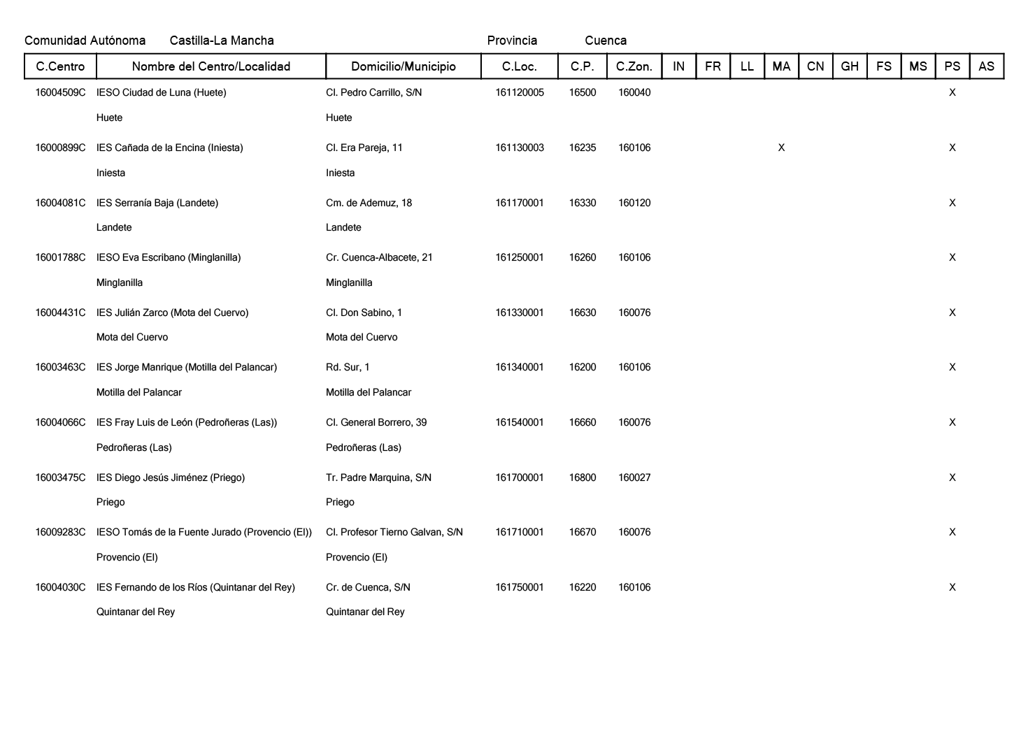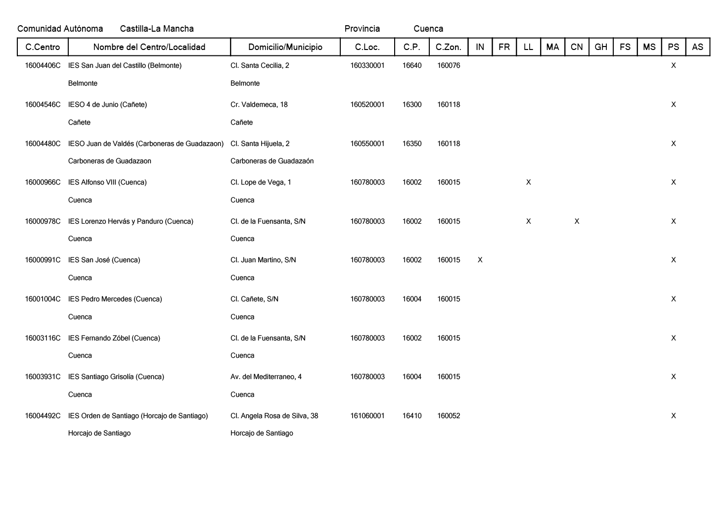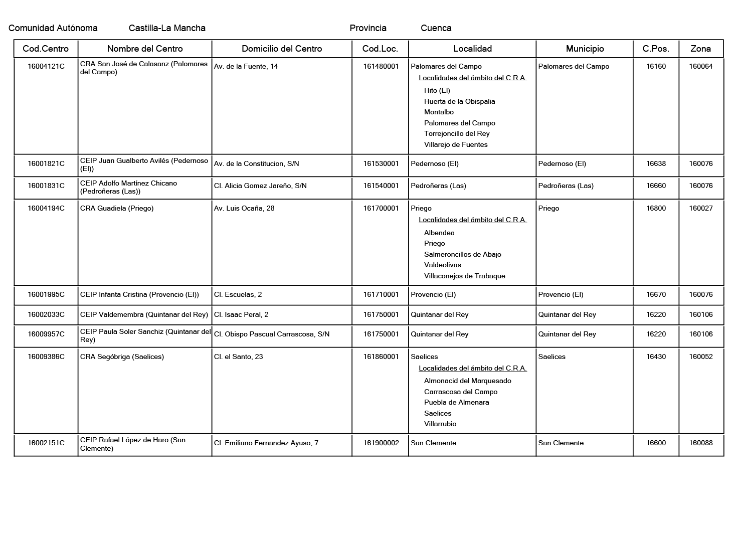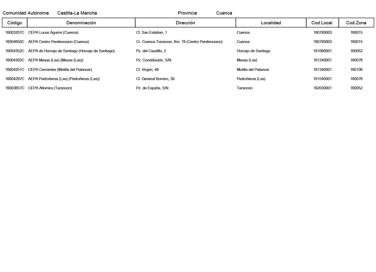 - Cuenca: Glorieta González Palencia, s/n - 16071 - Cuenca.