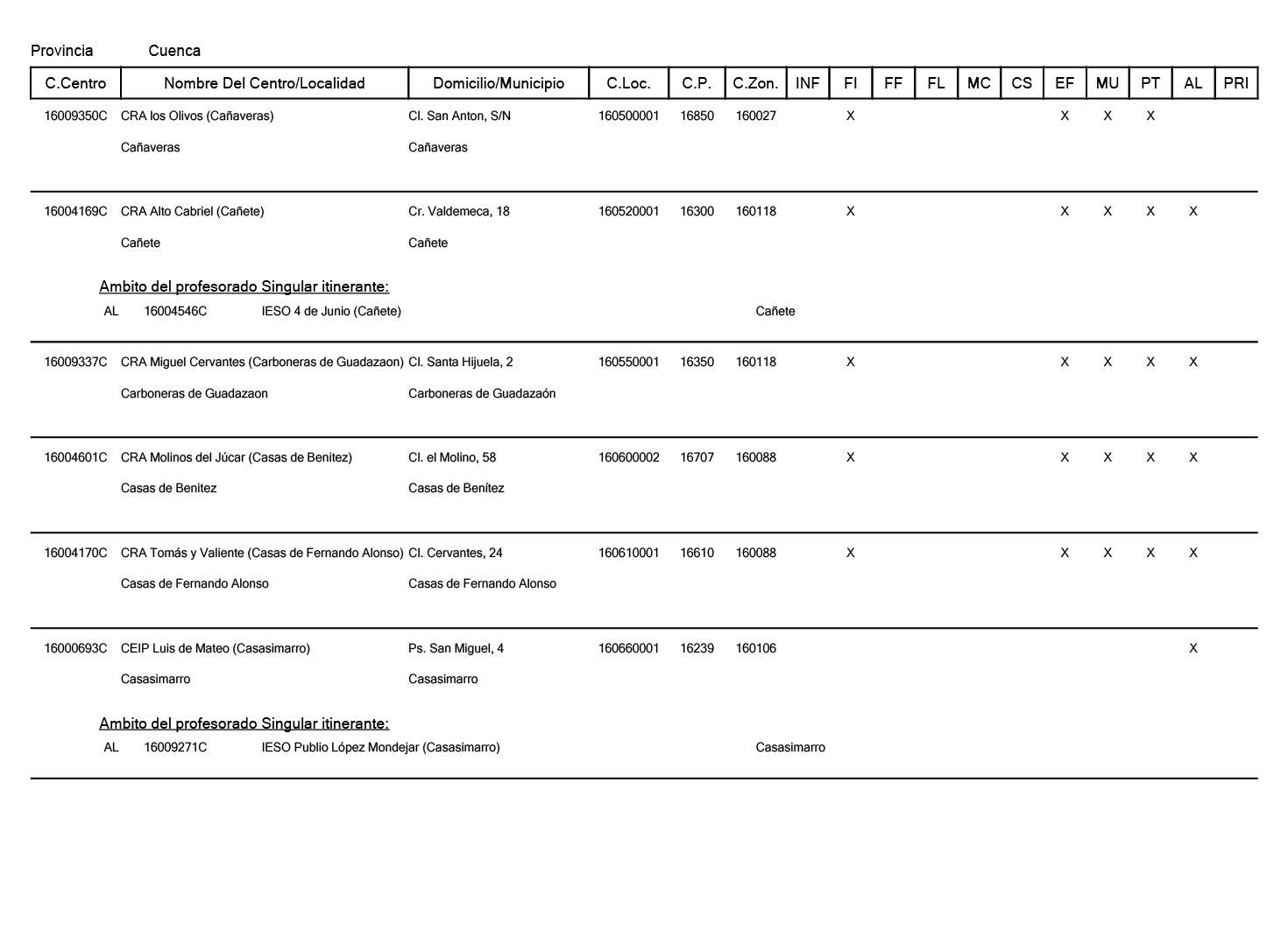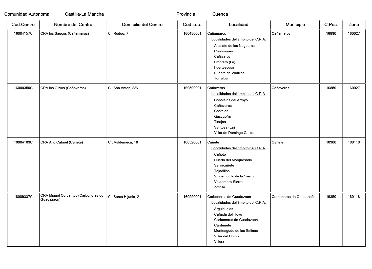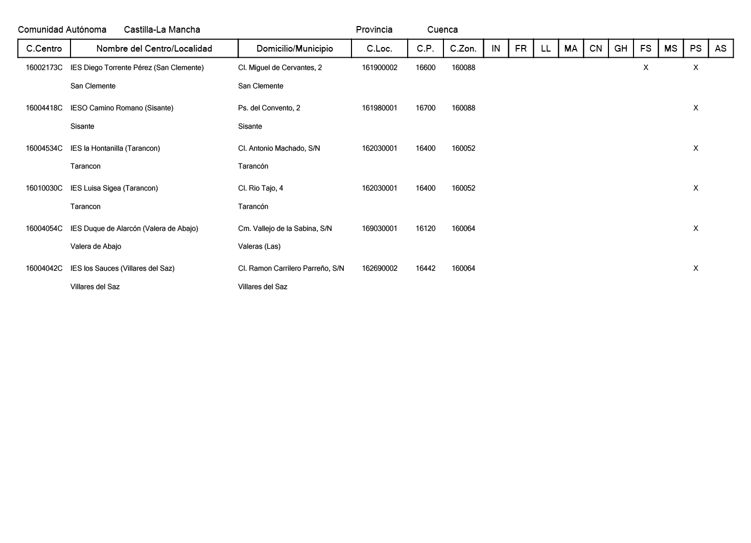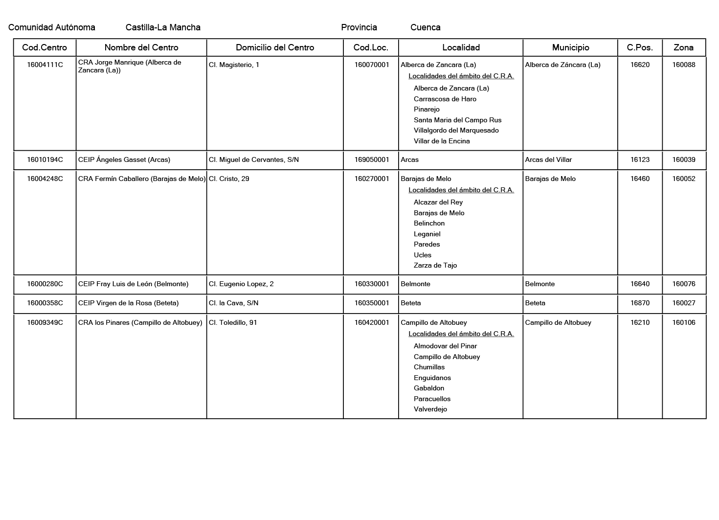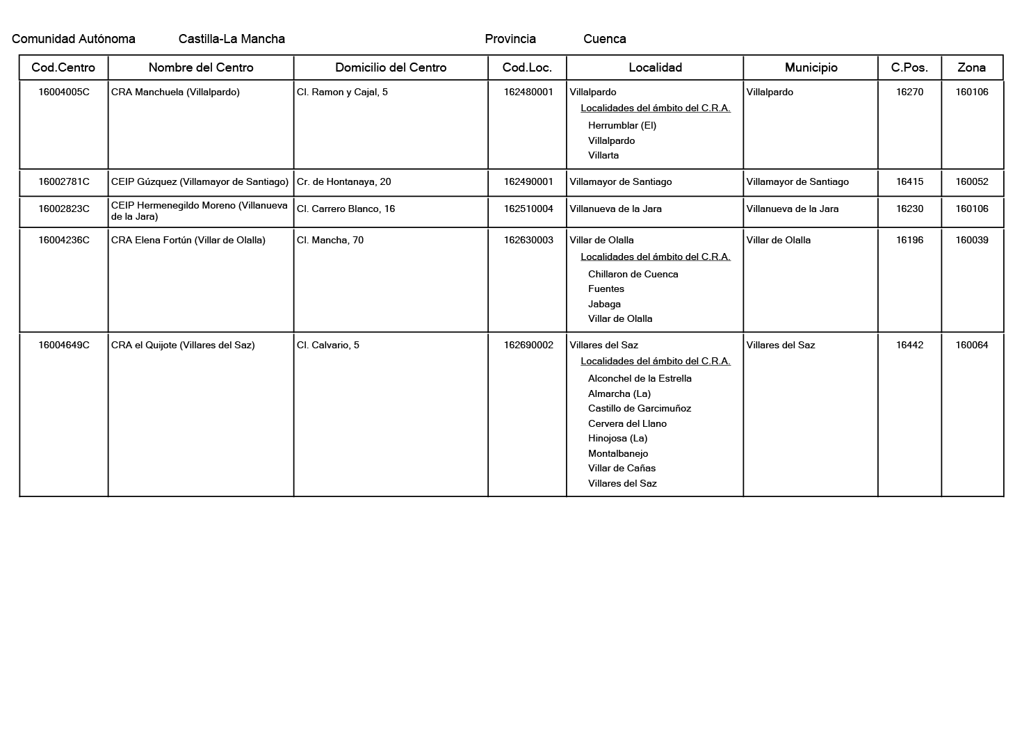 - Cuenca: Glorieta González Palencia, s/n - 16071 - Cuenca.