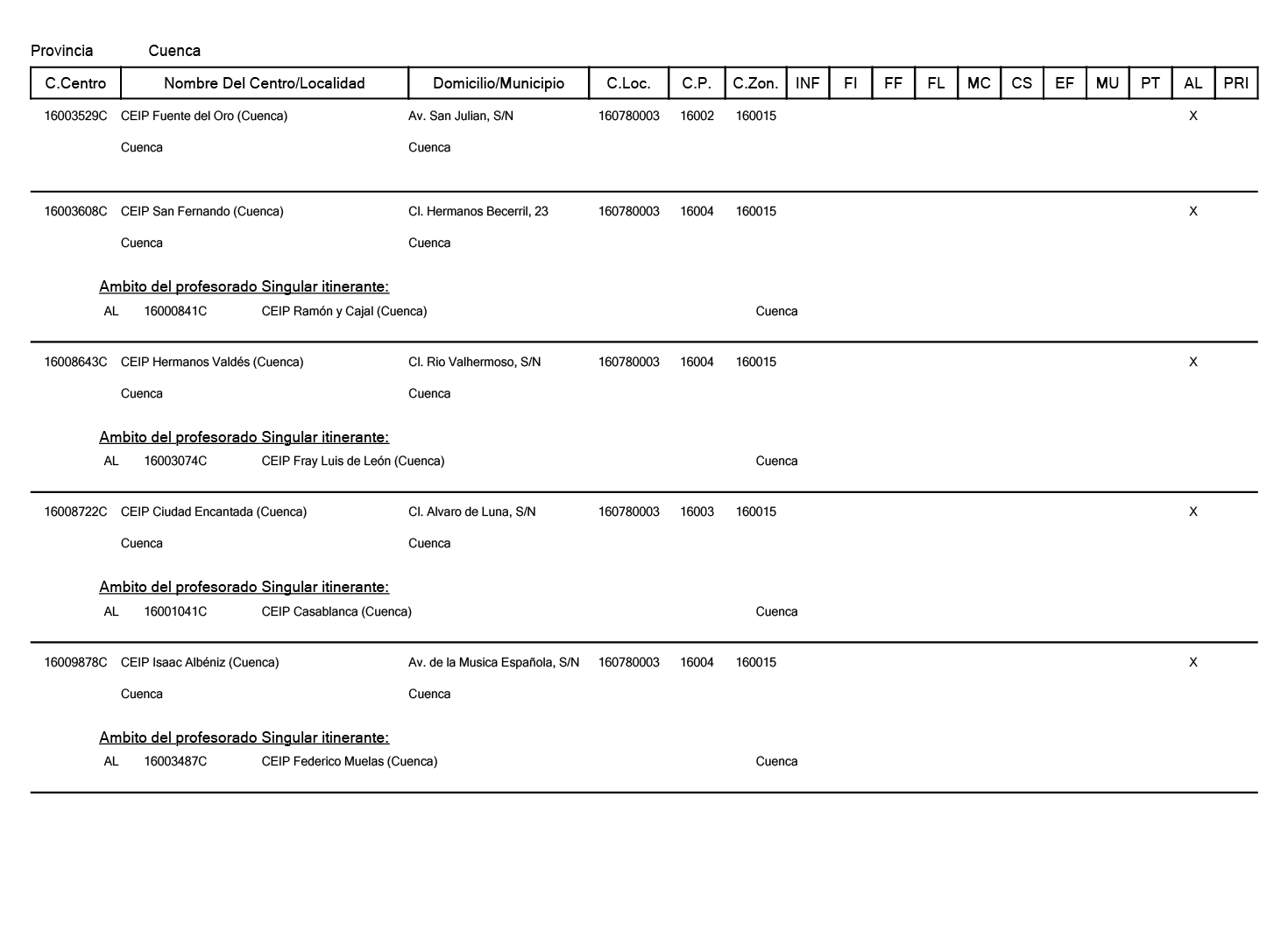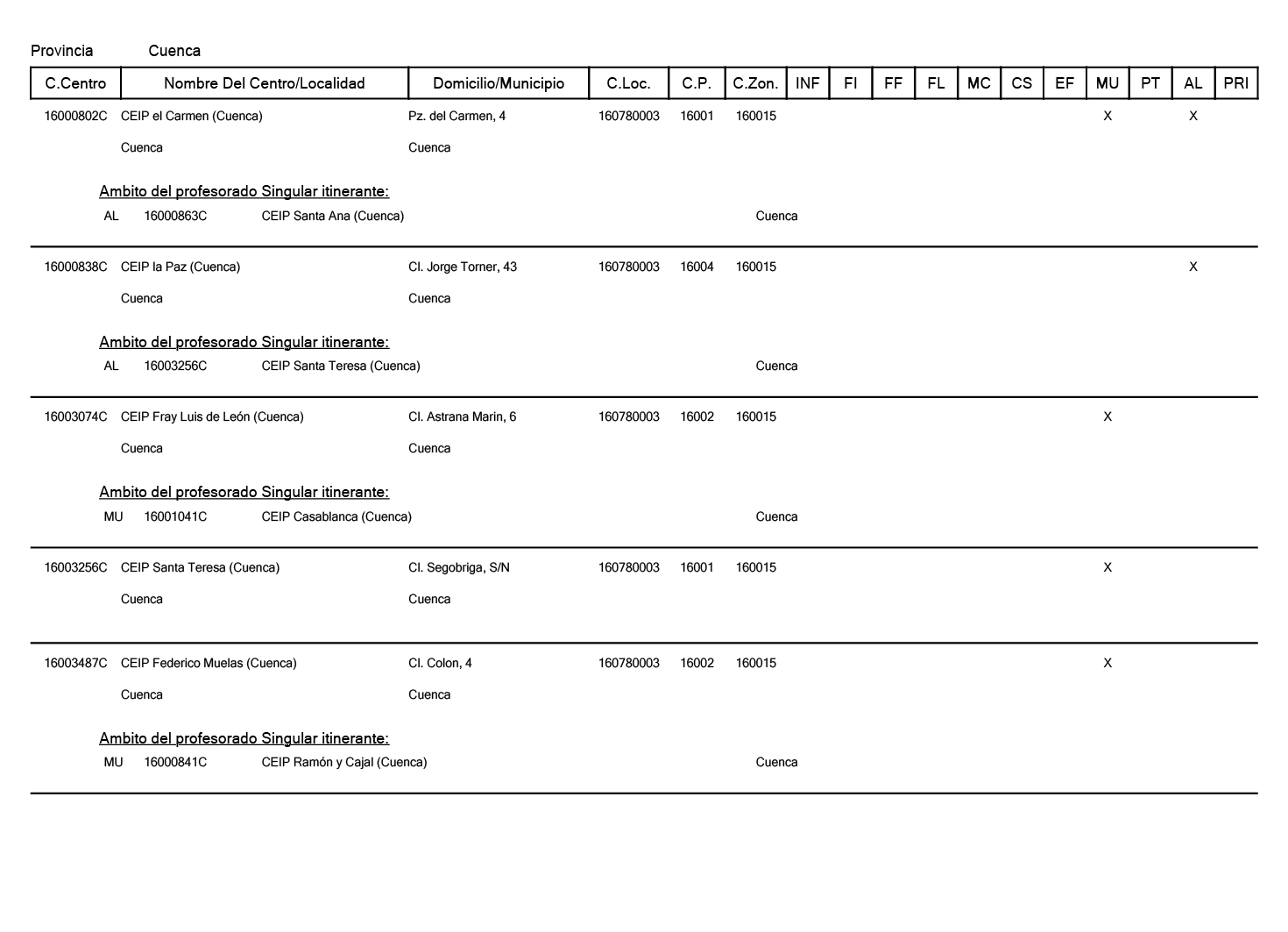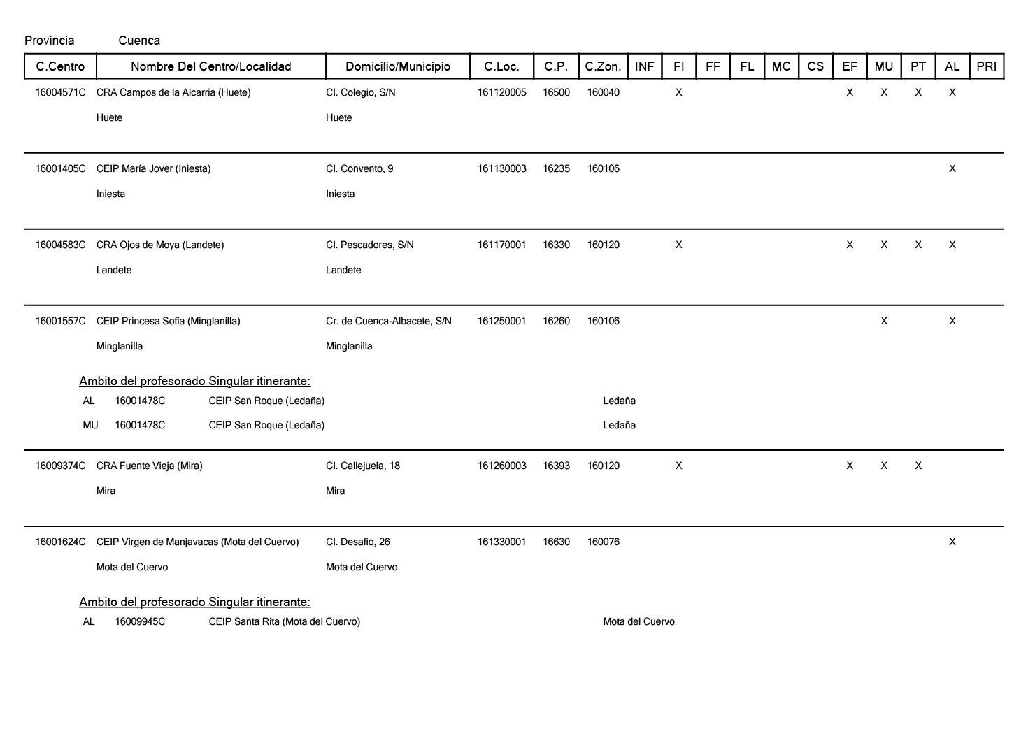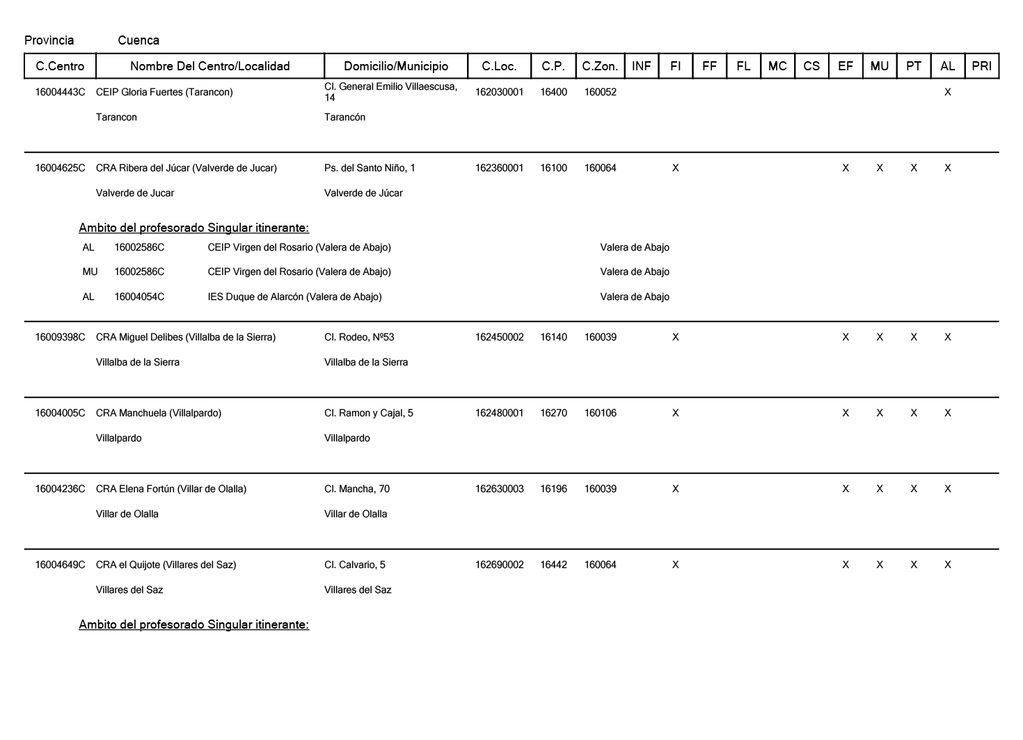 - Cuenca: Glorieta González Palencia, s/n - 16071 - Cuenca.