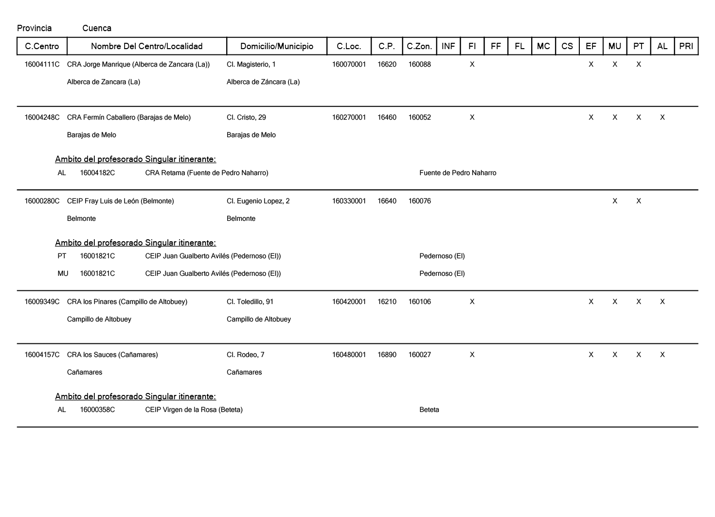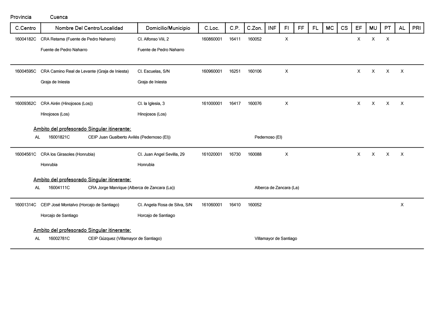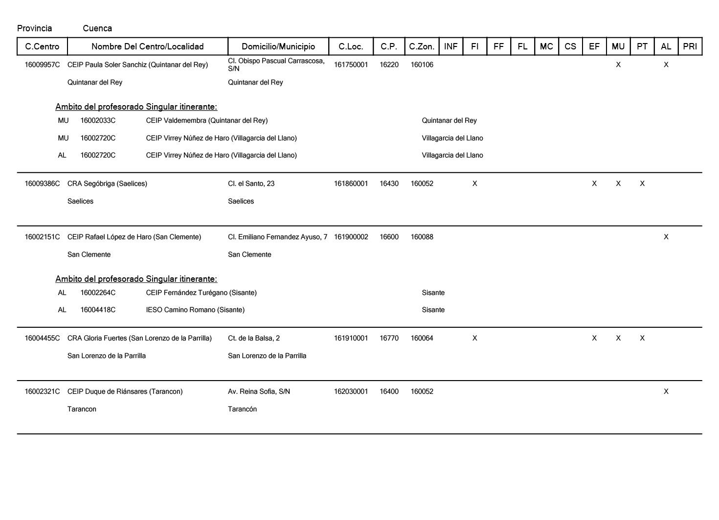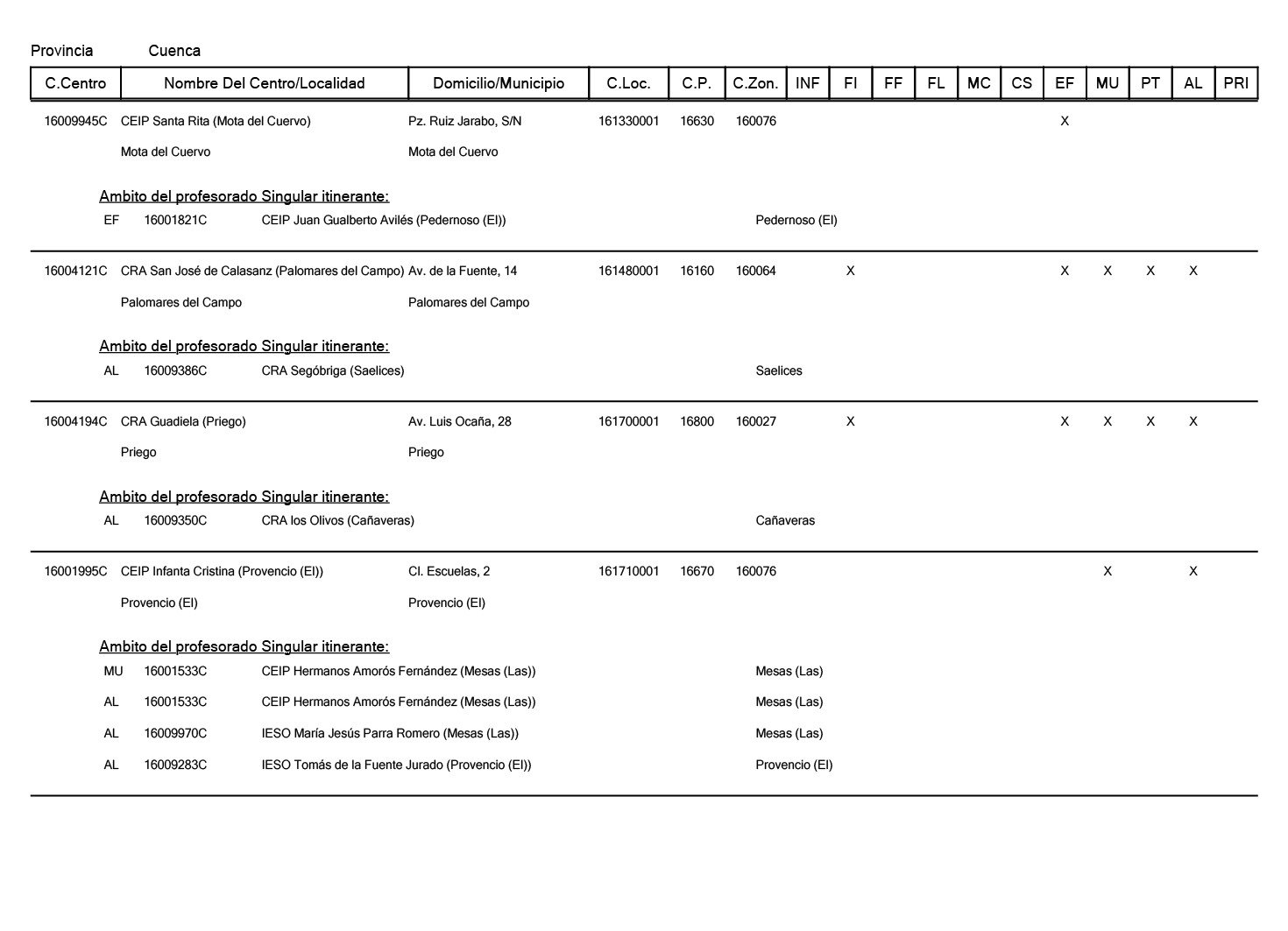 - Cuenca: Glorieta González Palencia, s/n - 16071 - Cuenca.
