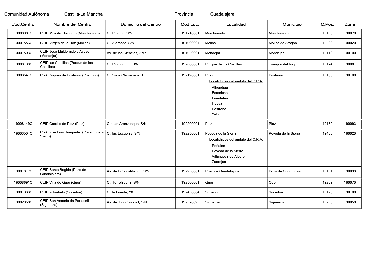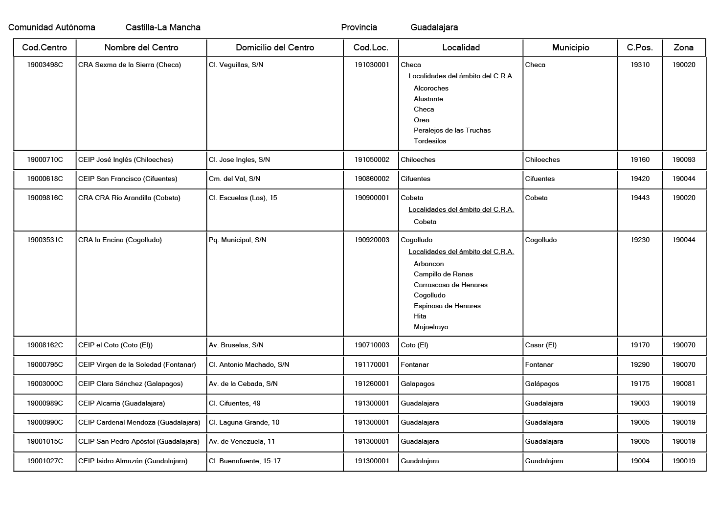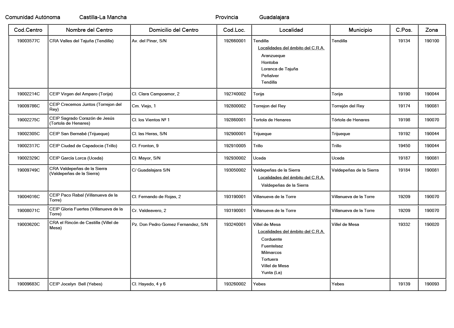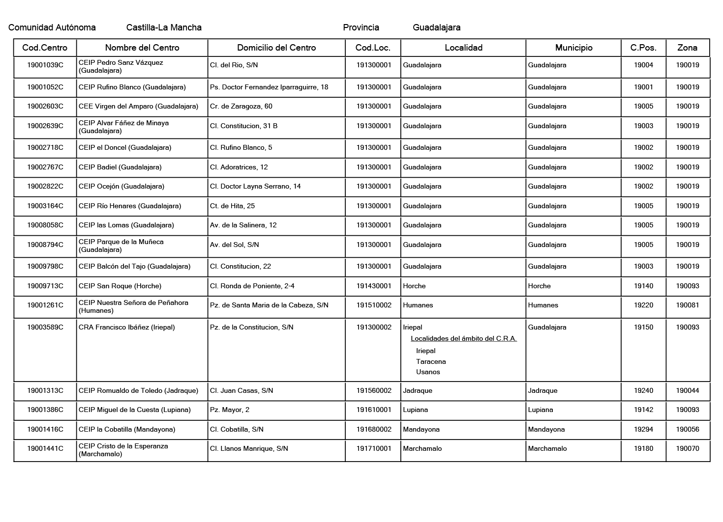 - Guadalajara: Calle Juan Bautista Topete, 1 - 19071 - Guadalajara.