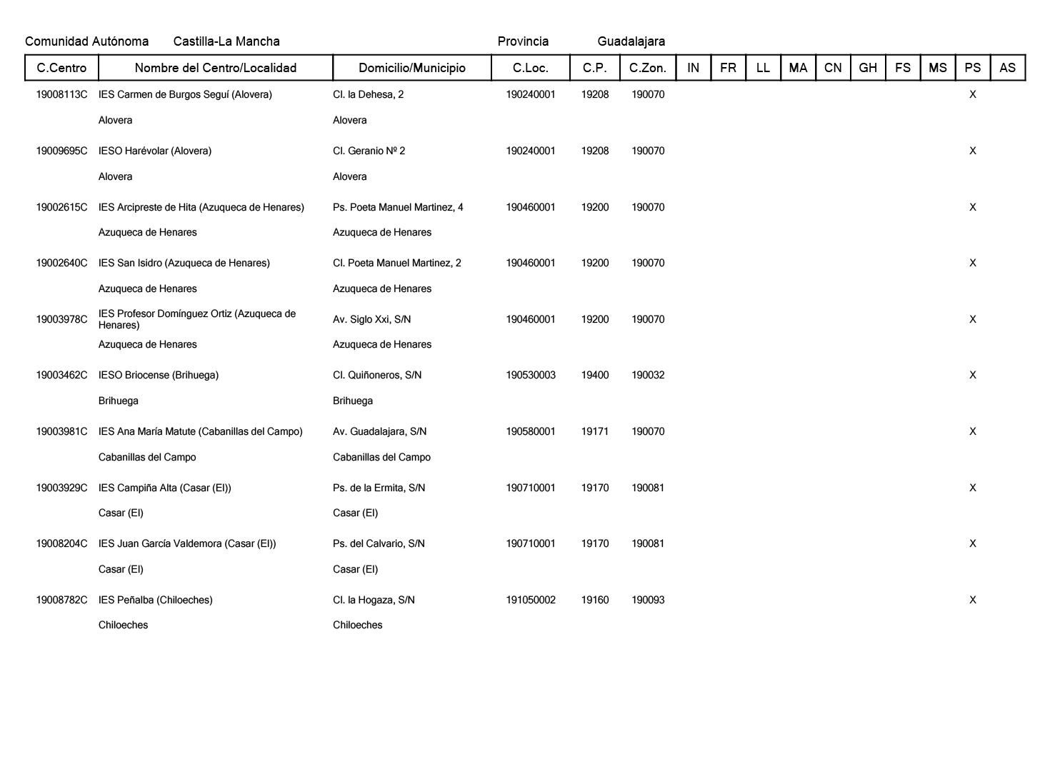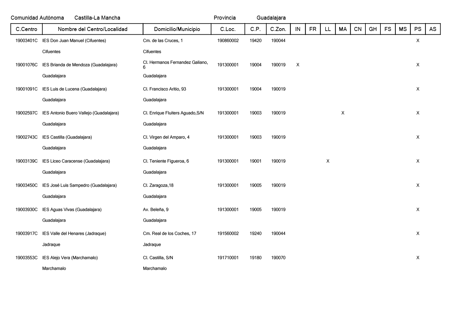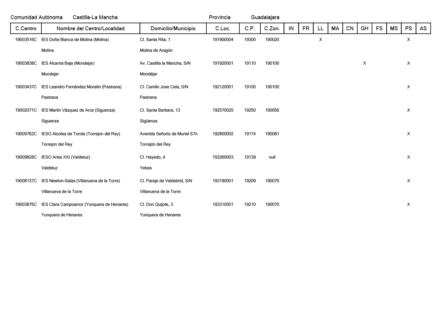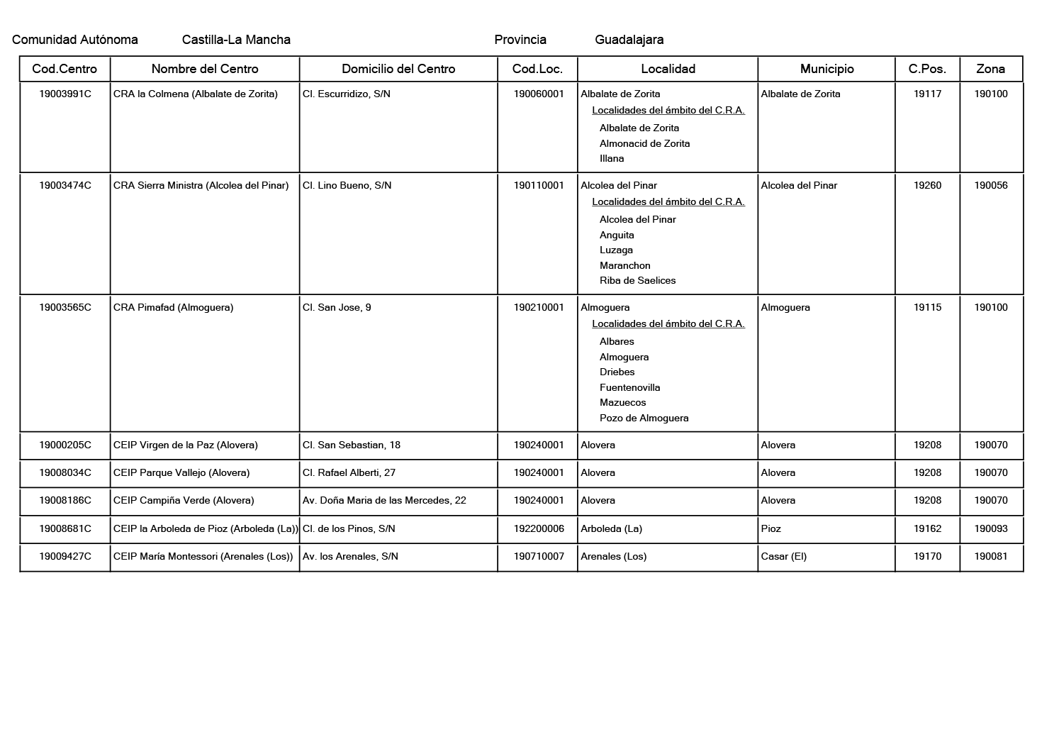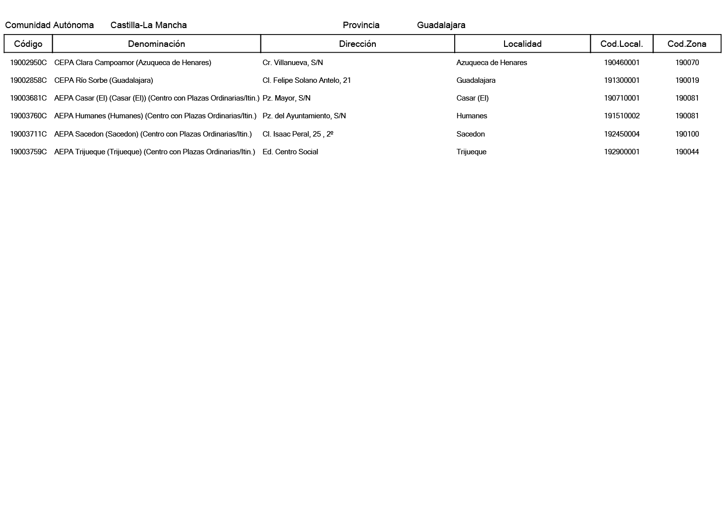 - Guadalajara: Calle Juan Bautista Topete, 1 - 19071 - Guadalajara.