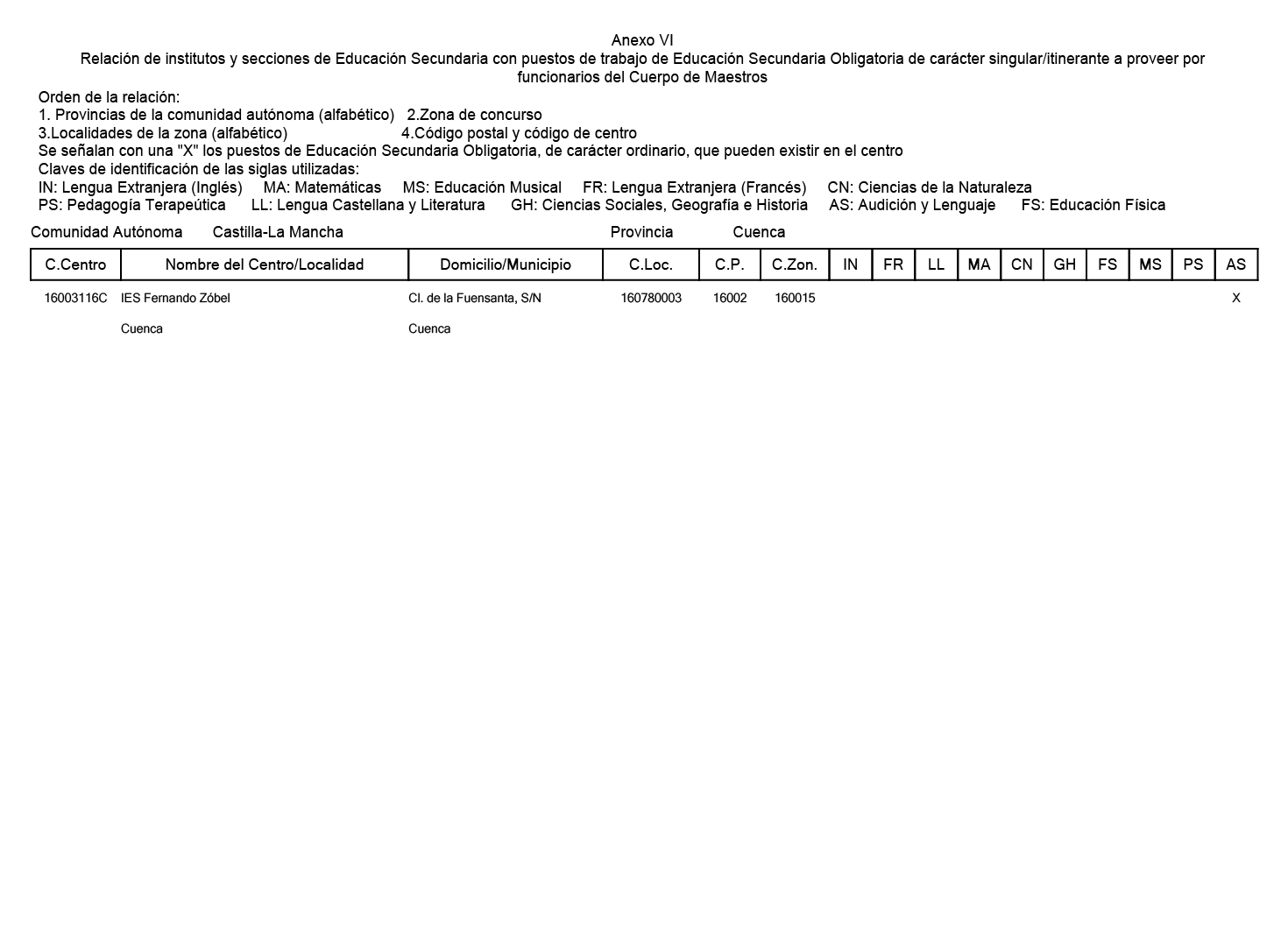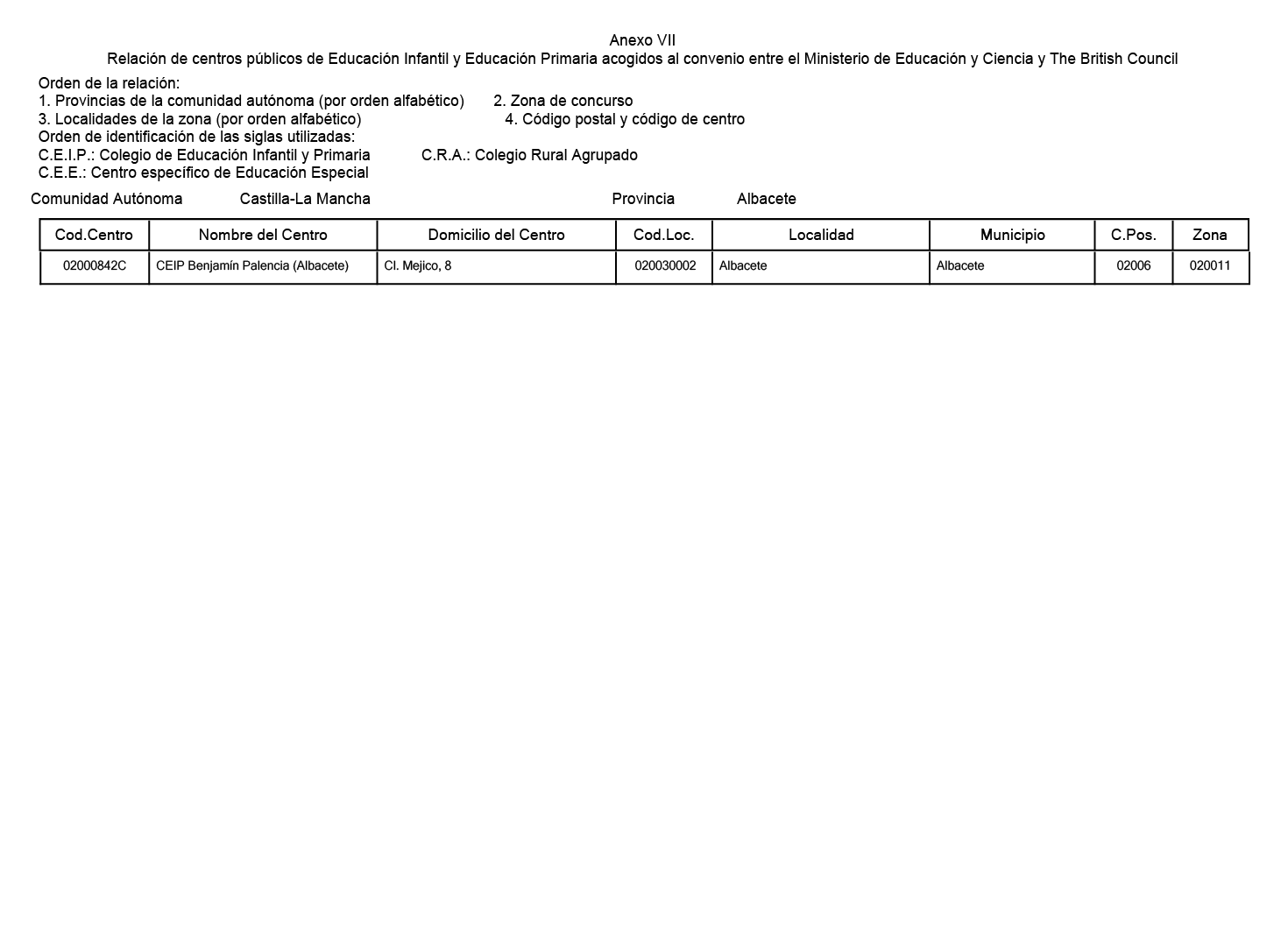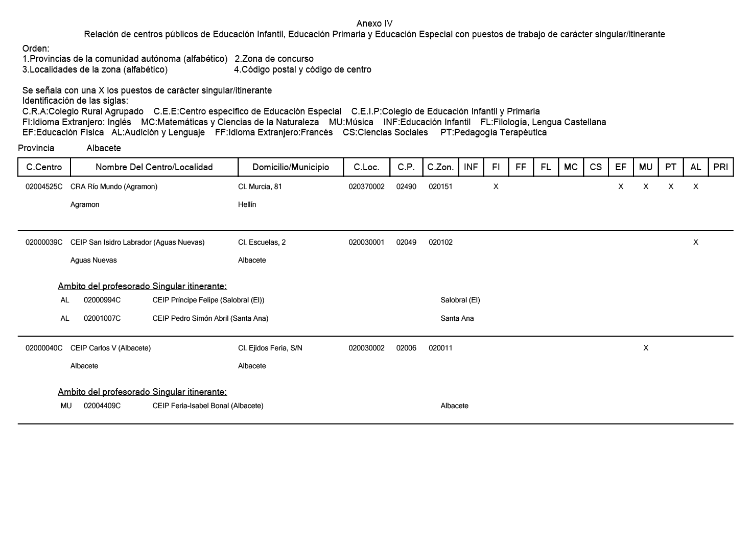 En el lugar correspondiente de la instancia, deberá consignarse el código de la localidad de la que dimana el derecho. En caso de pedir otra u otras localidades también habrá de consignarse el código de la zona en la que se solicita ejercer el derecho. Asimismo, quienes ejerzan este derecho preferente consignarán, por orden de preferencia, todas las especialidades para las que estén habilitados. Si solicitan reserva de plaza para especialidades que conlleven el carácter de itinerancia, lo harán constar en las casillas que, al efecto, figuran al lado de las de especialidades. De solicitar especialidades correspondientes a puestos de la Educación Secundaria Obligatoria a proveer por funcionarios y funcionarias del Cuerpo de Maestros, tanto ordinarias como itinerantes, o de Educación de Adultos, puestos de Ingles del The British Council o plazas bilingües, deberán reseñar las mismas consignando los códigos de especialidad correspondientes.