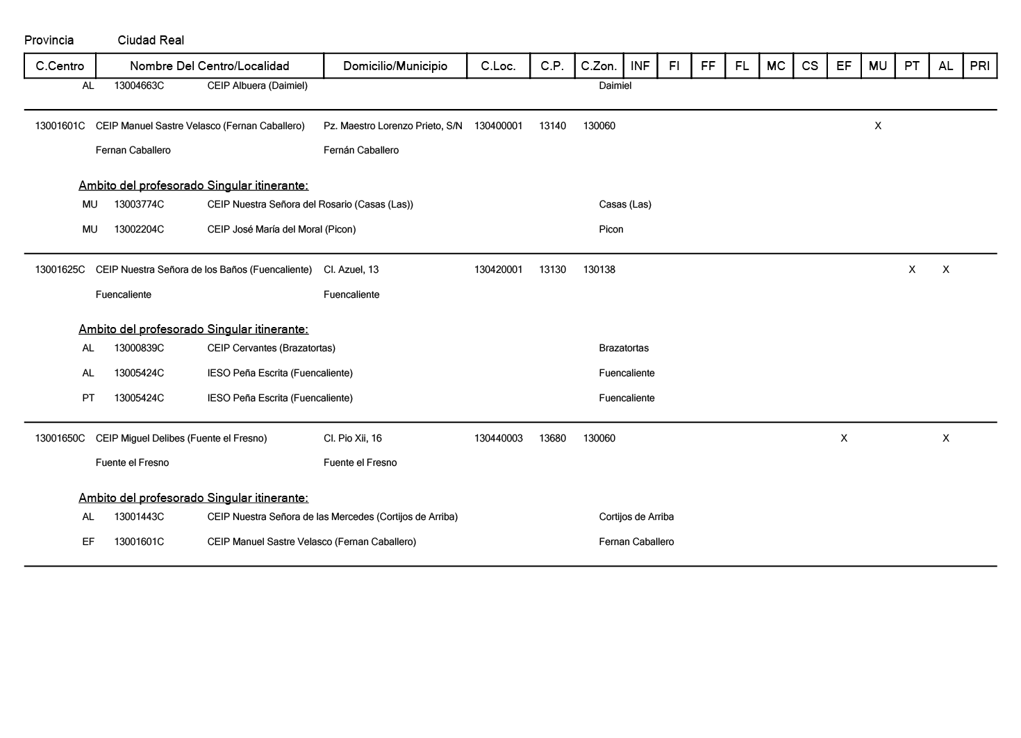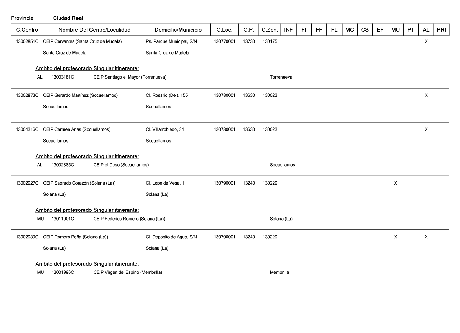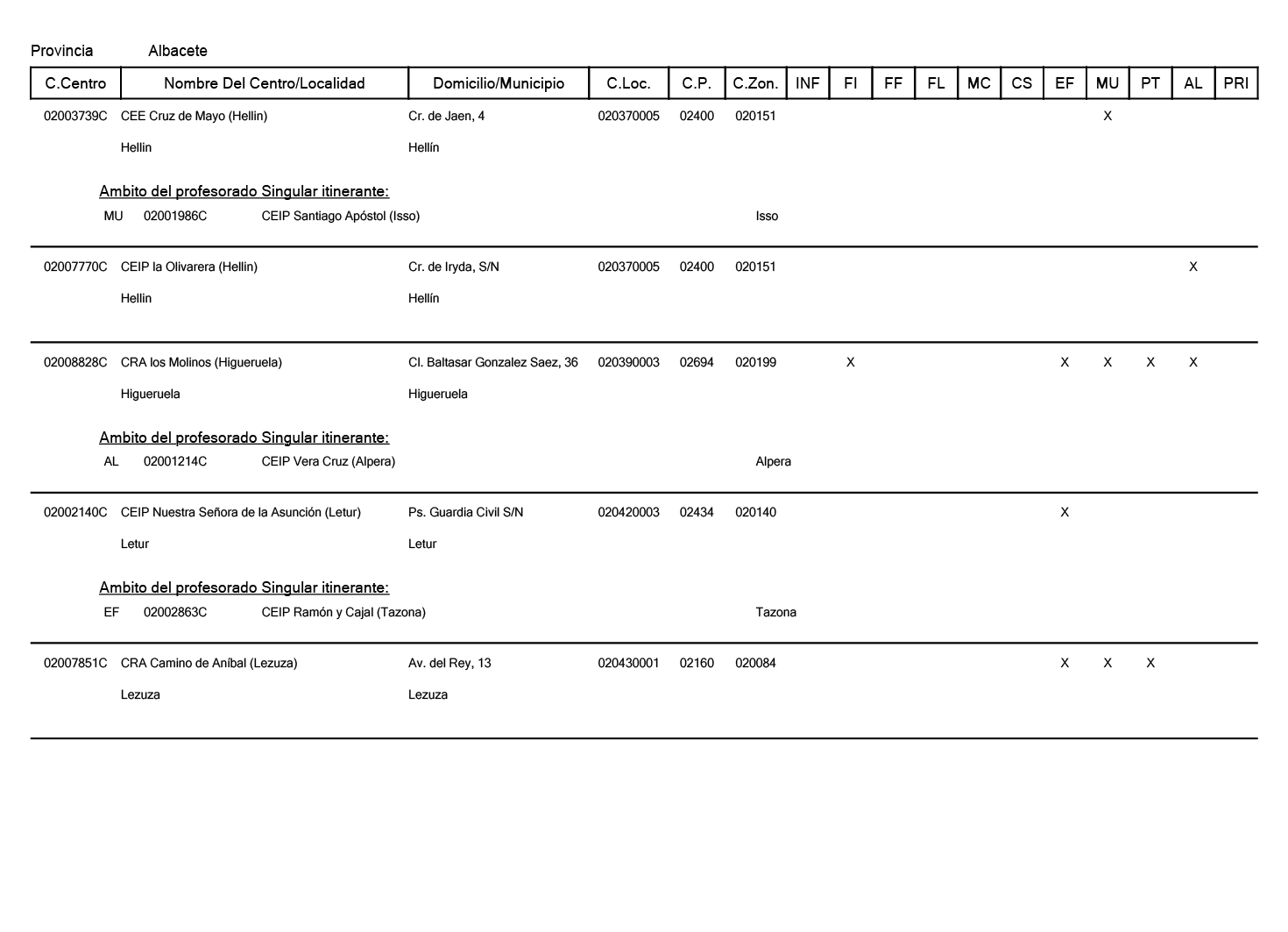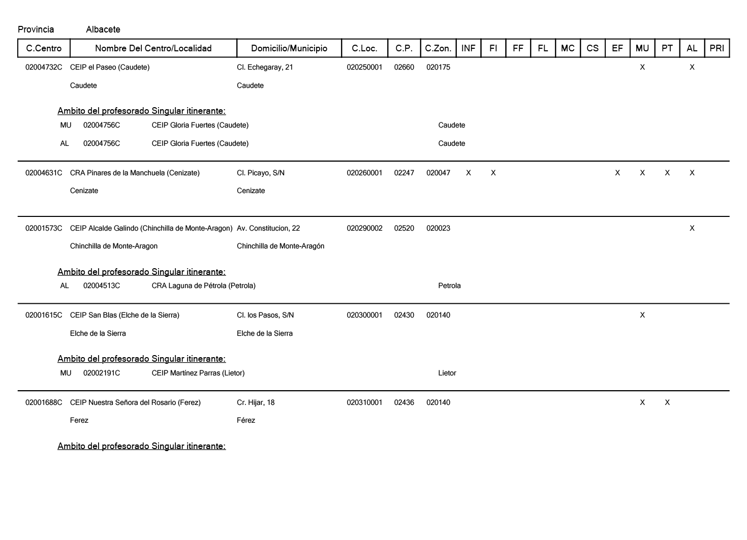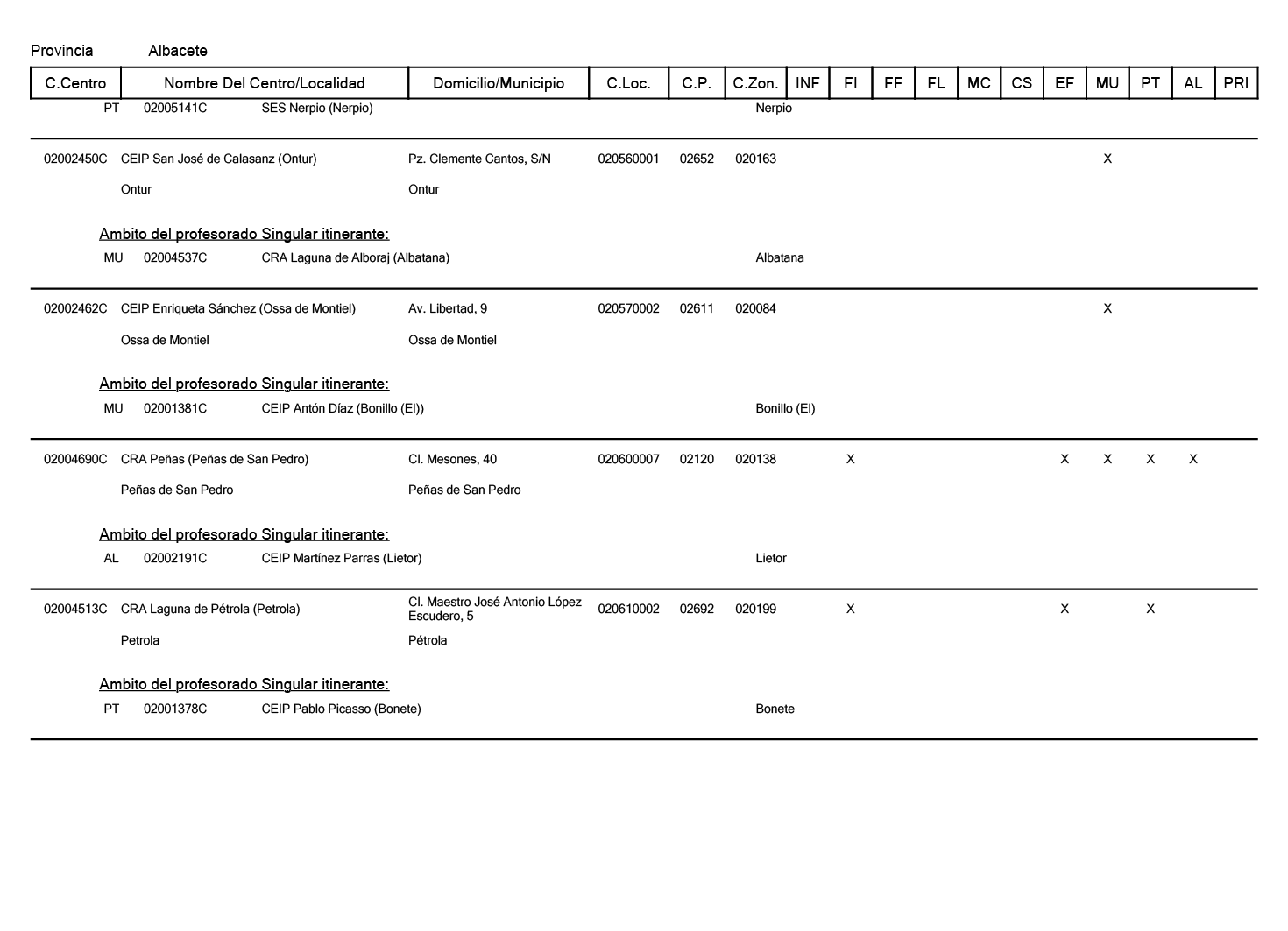 5.2.1. Las personas participantes incluirán en sus peticiones centros de una sola provincia, la misma para cada grupo de concurrencia.