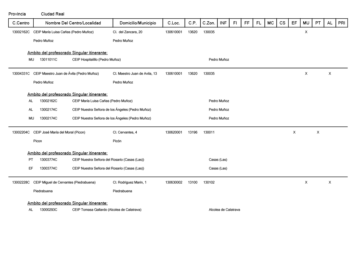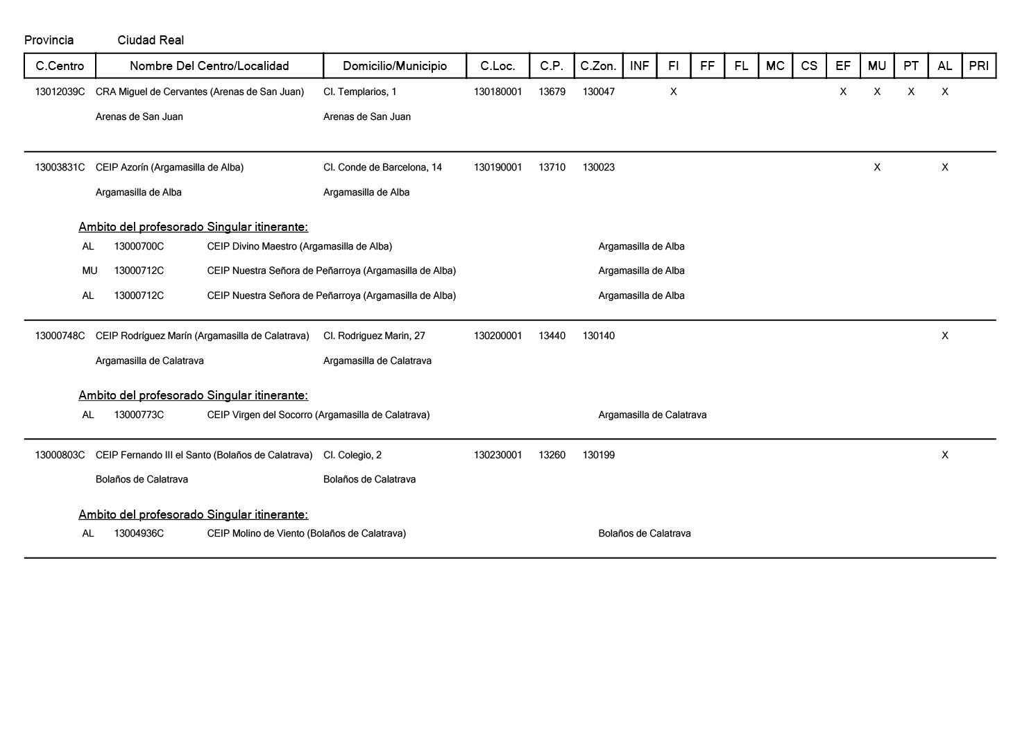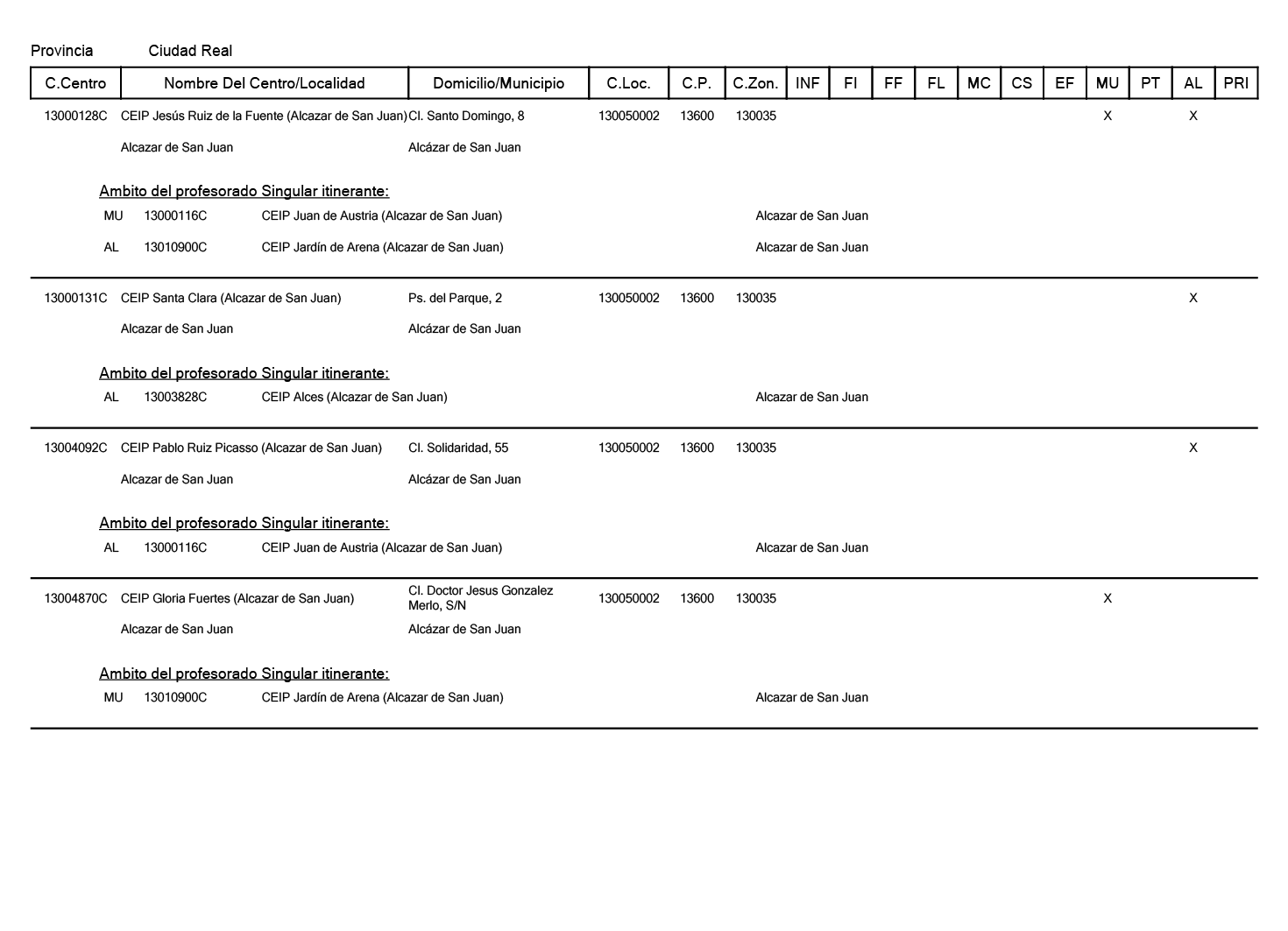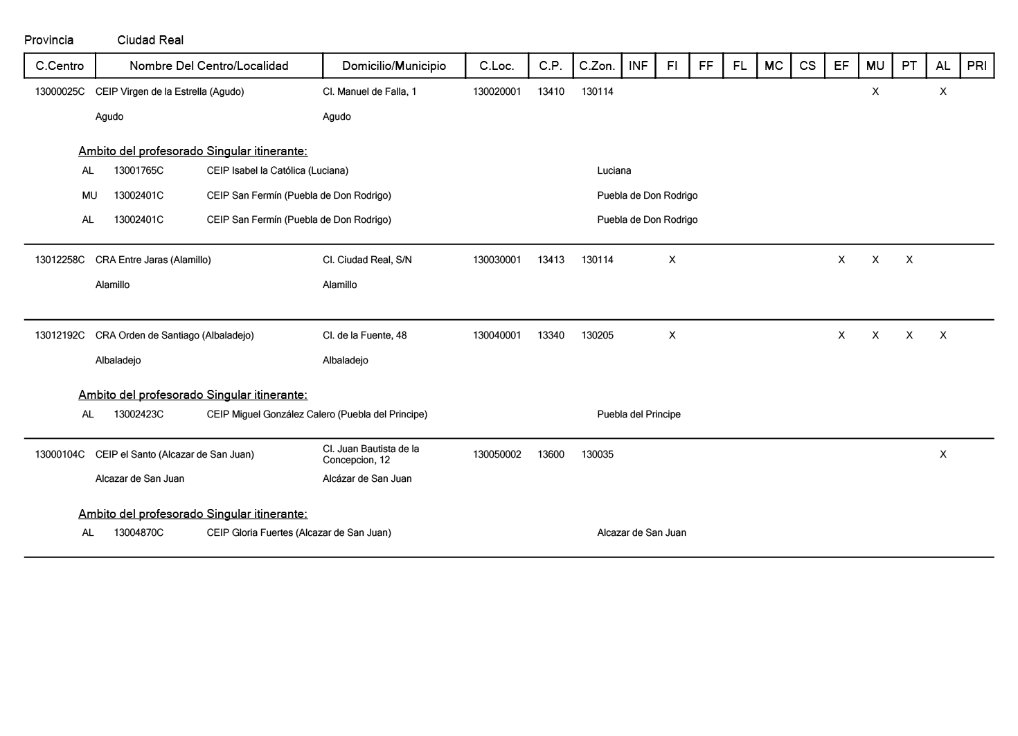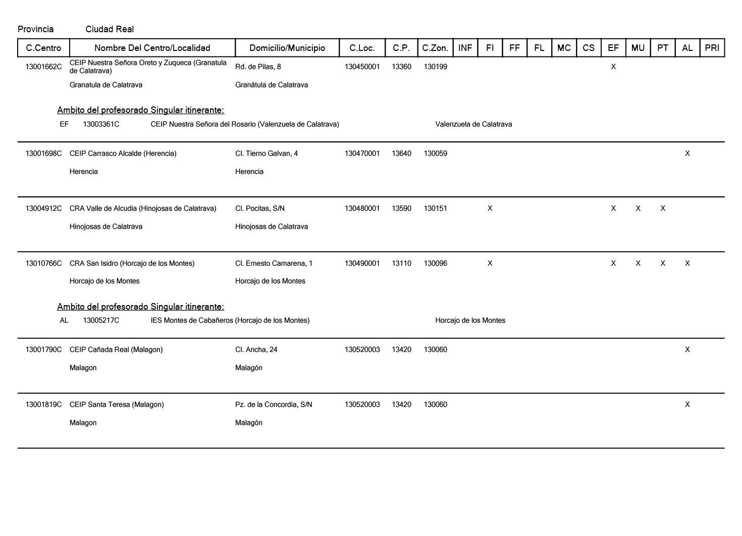 5.2.1. Las personas participantes incluirán en sus peticiones centros de una sola provincia, la misma para cada grupo de concurrencia.