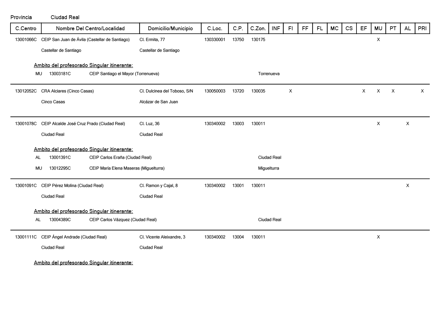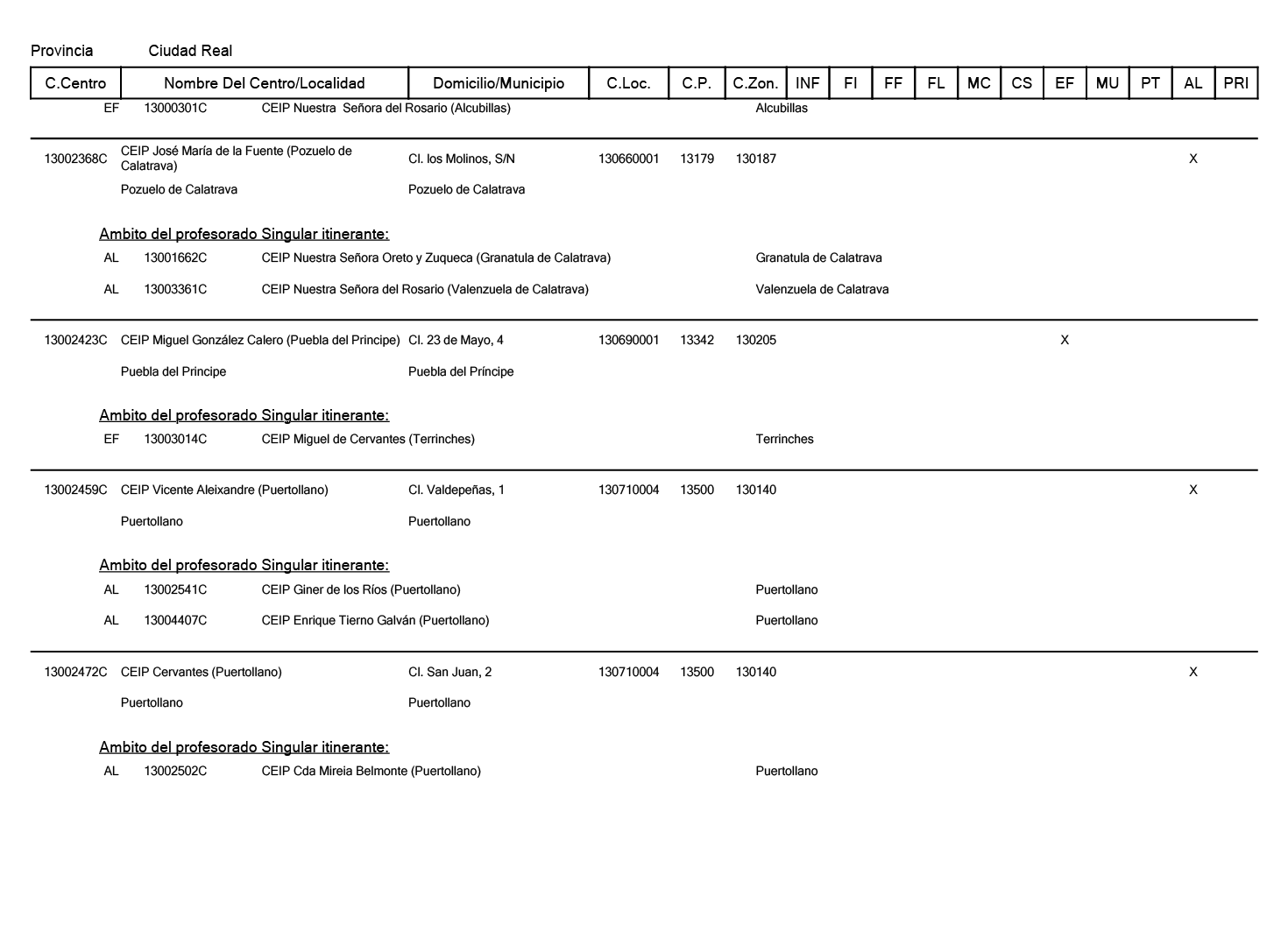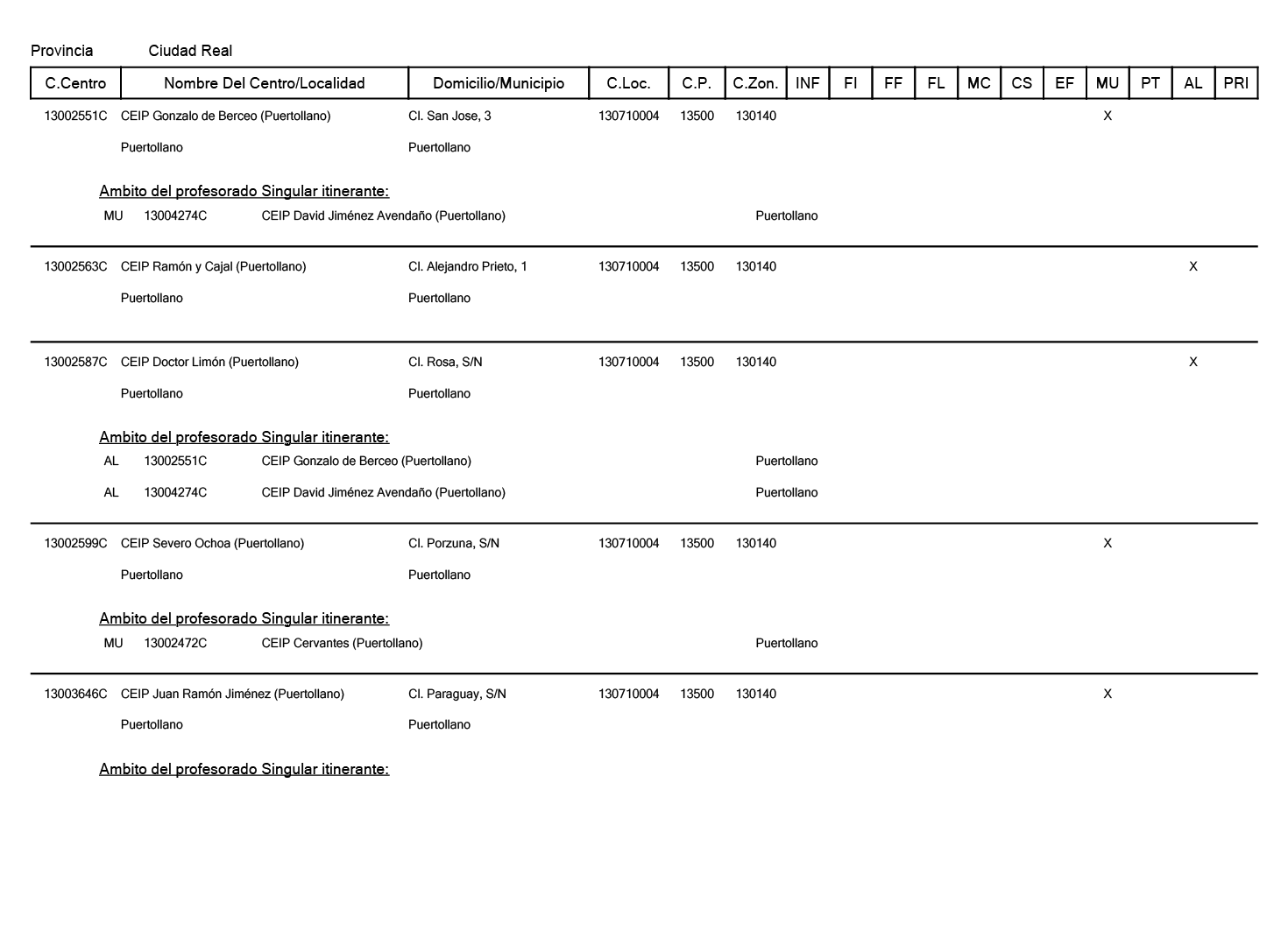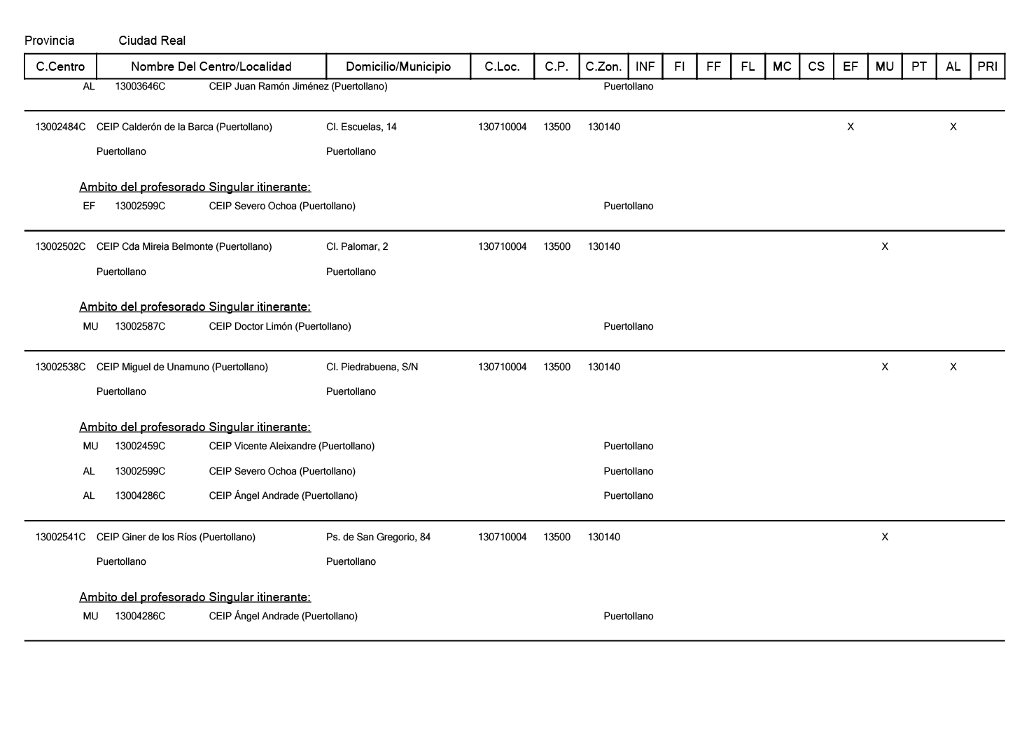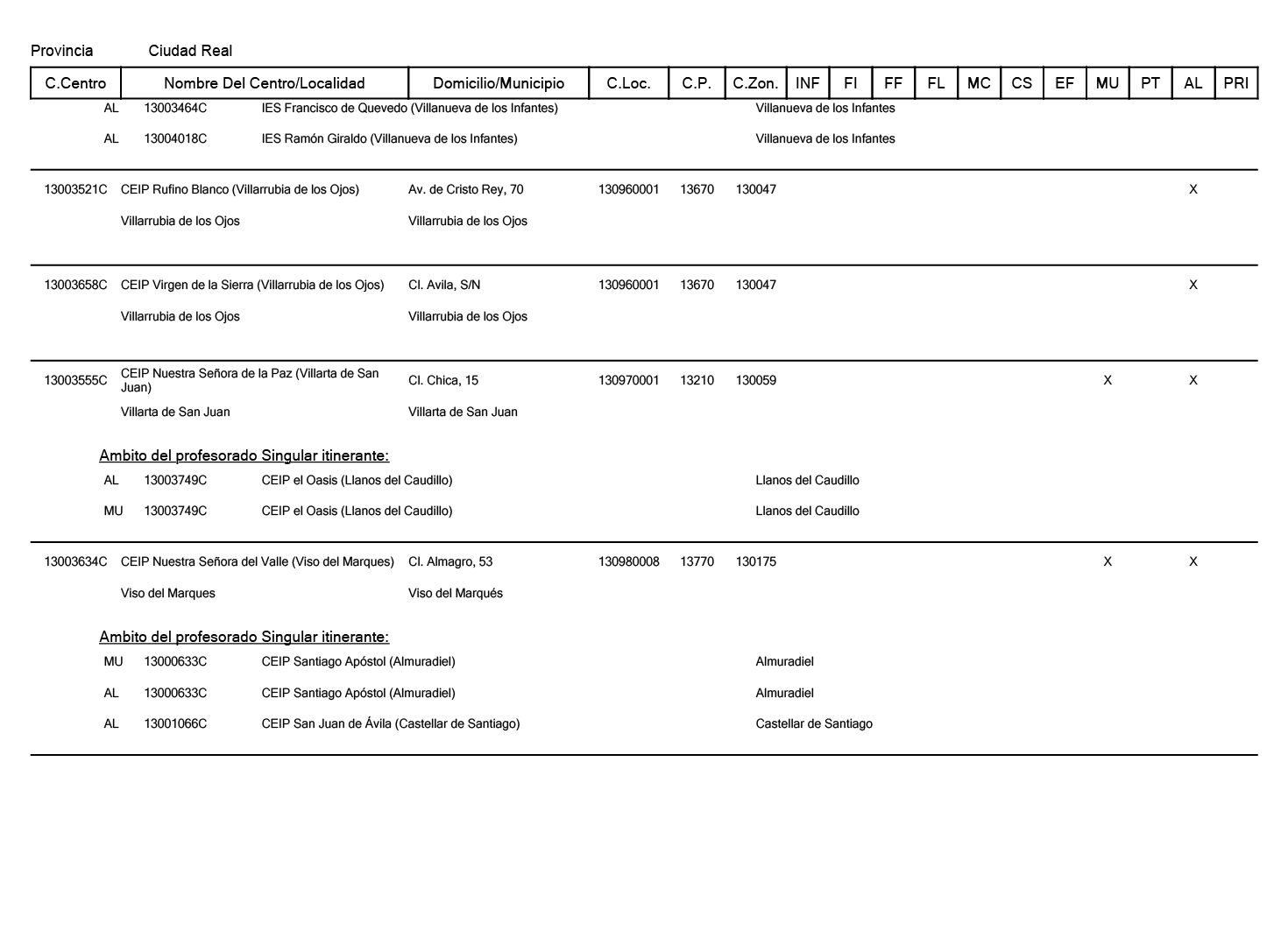 5.2.1. Las personas participantes incluirán en sus peticiones centros de una sola provincia, la misma para cada grupo de concurrencia.