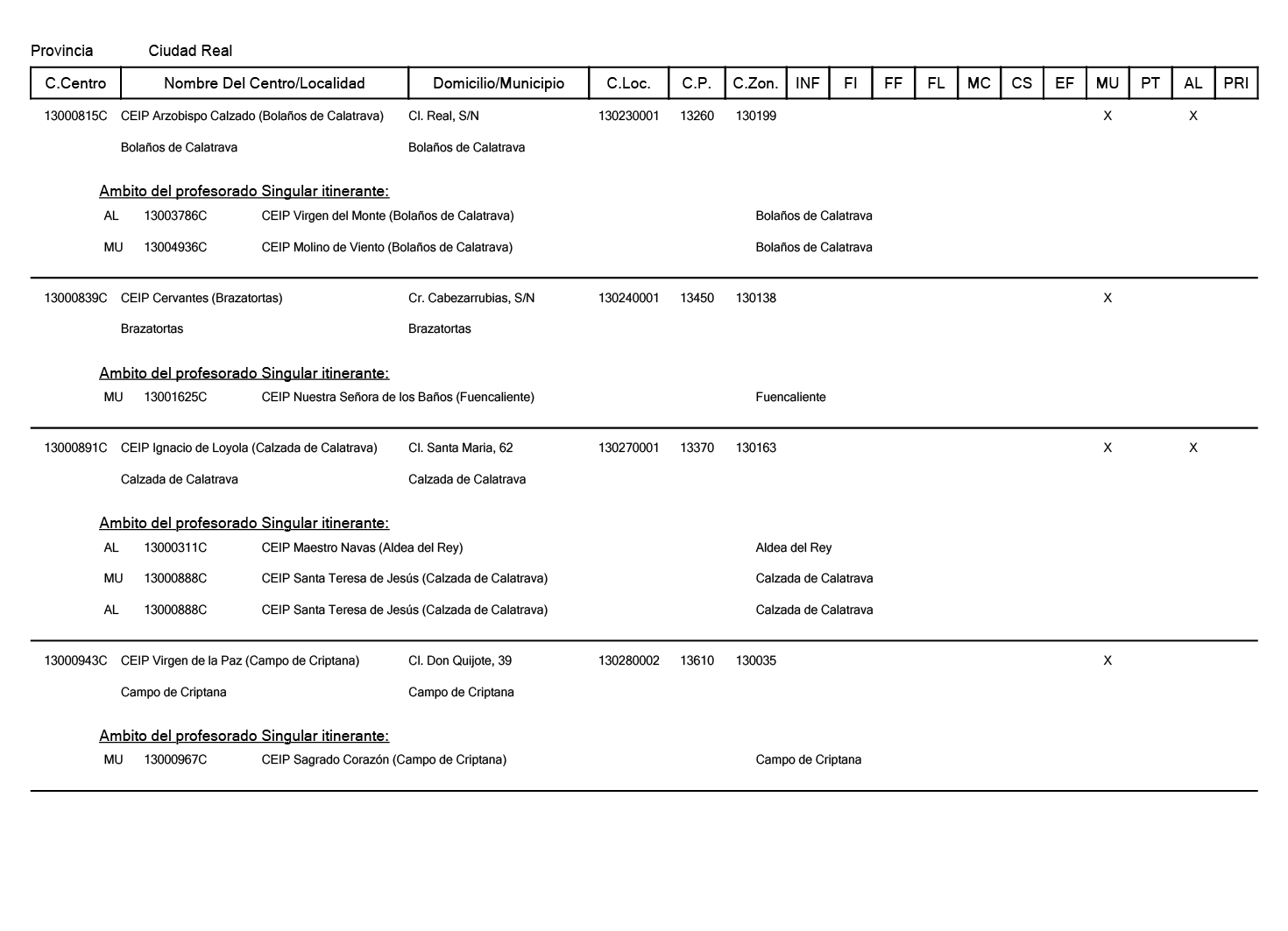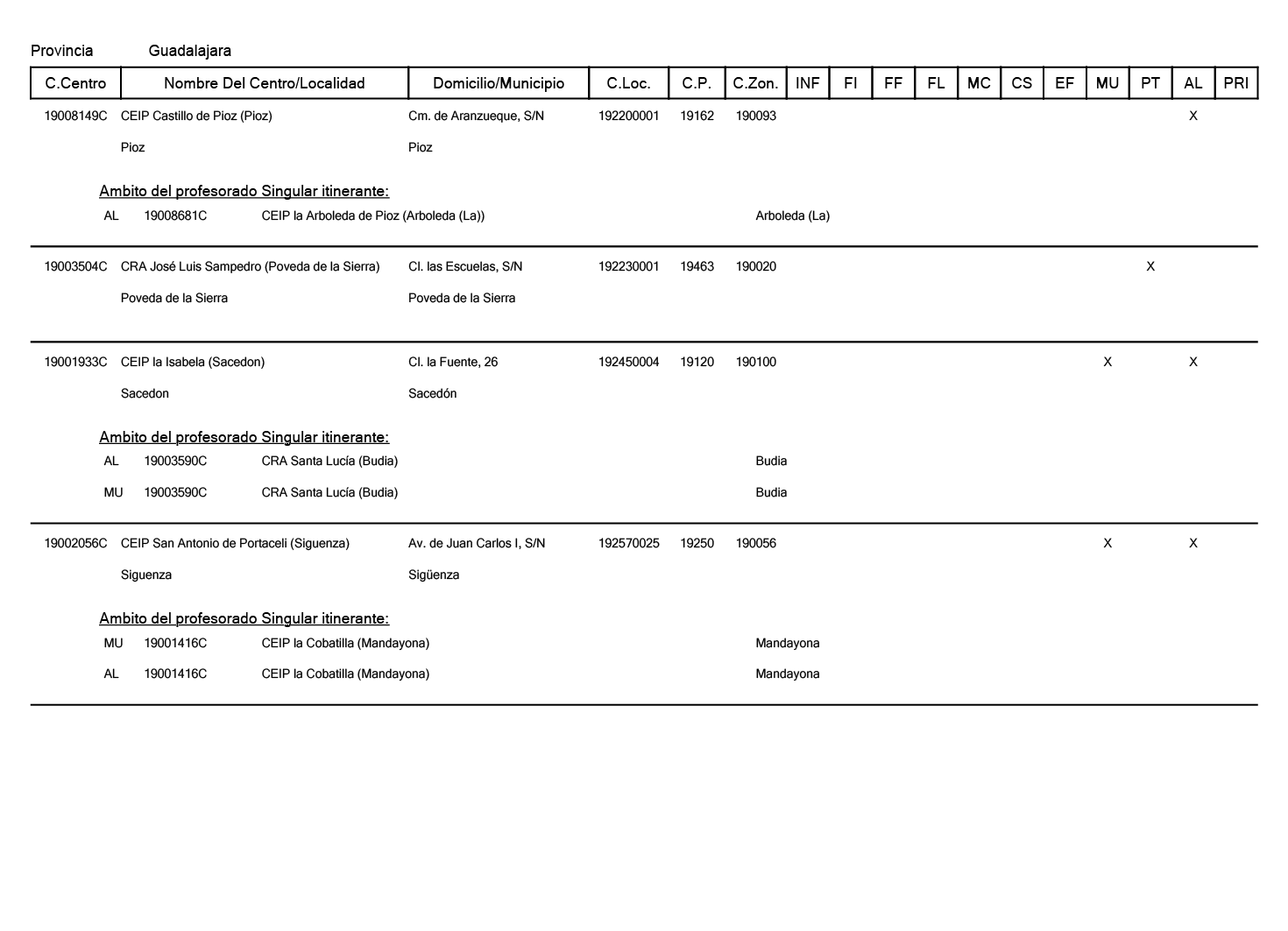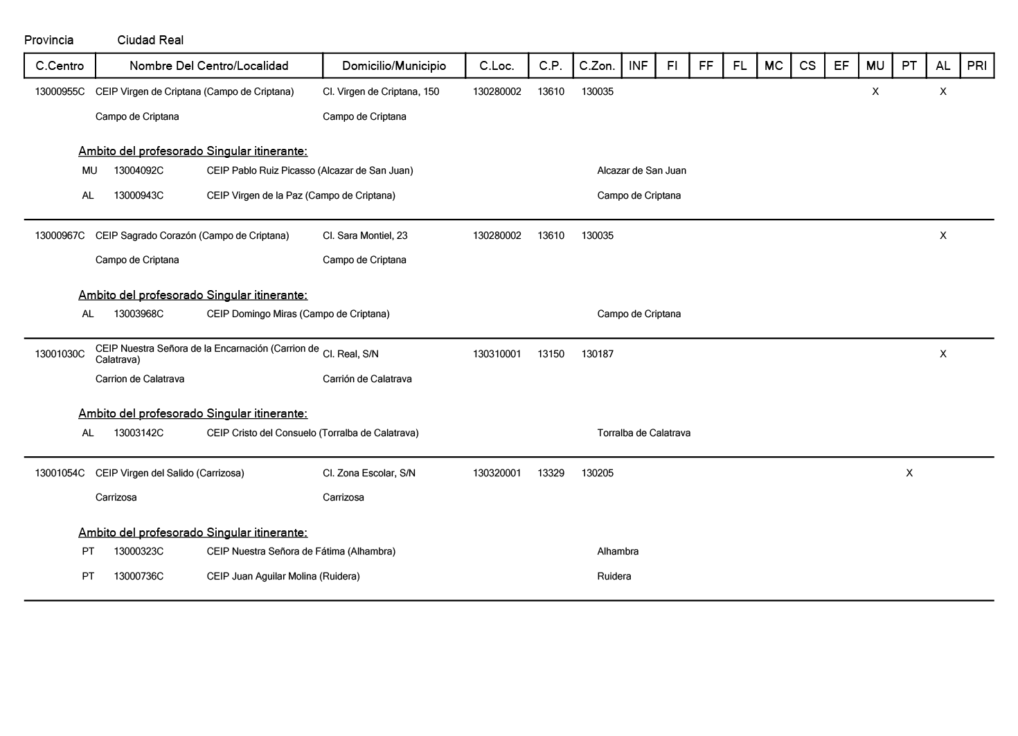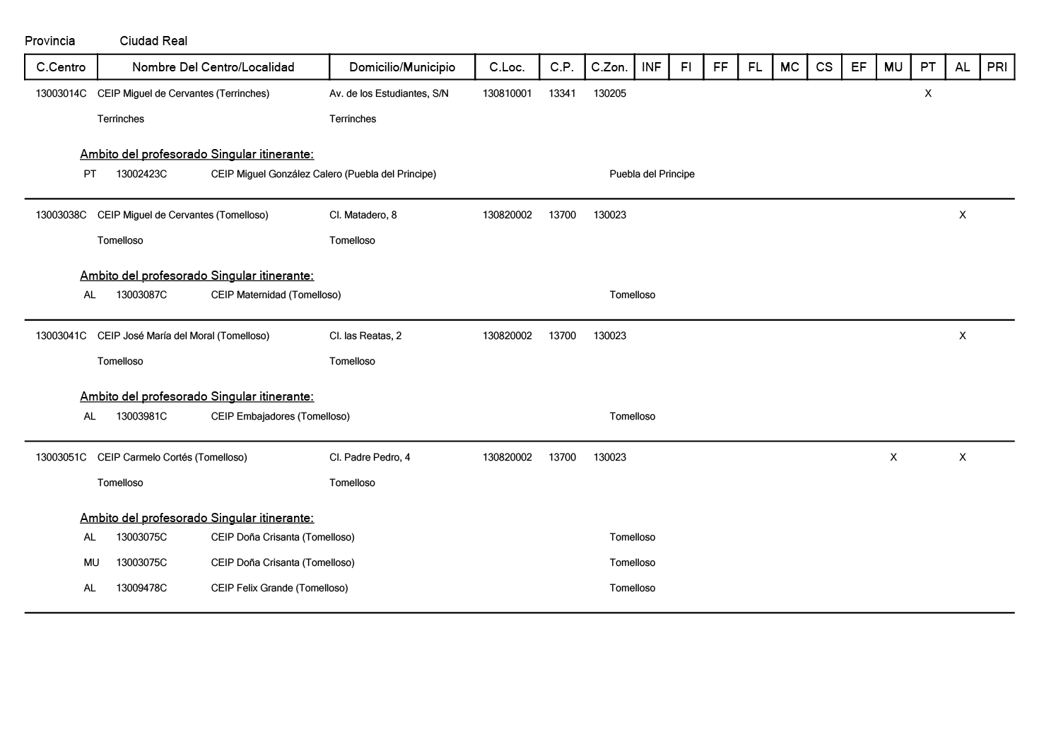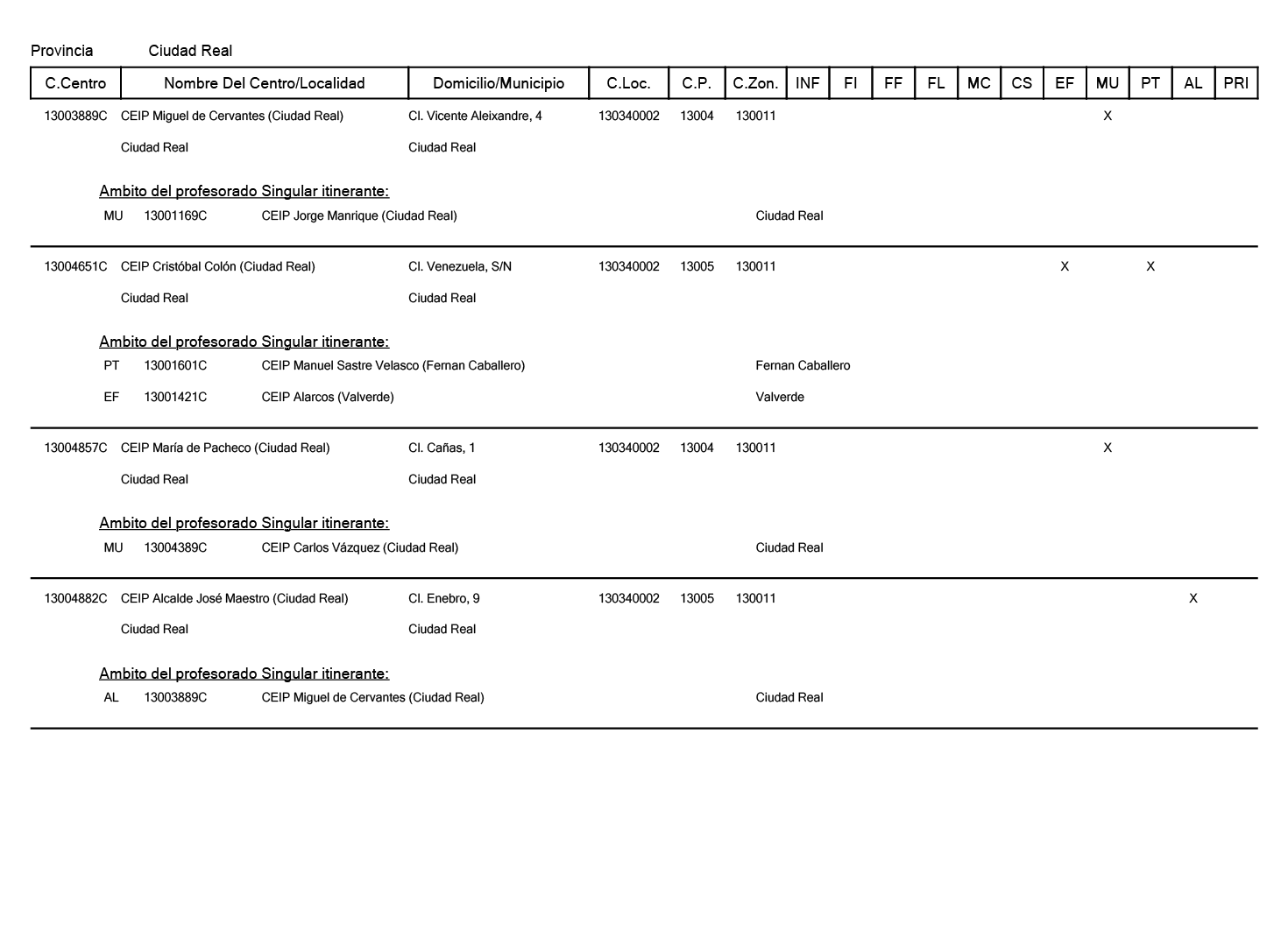 5.2.1. Las personas participantes incluirán en sus peticiones centros de una sola provincia, la misma para cada grupo de concurrencia.