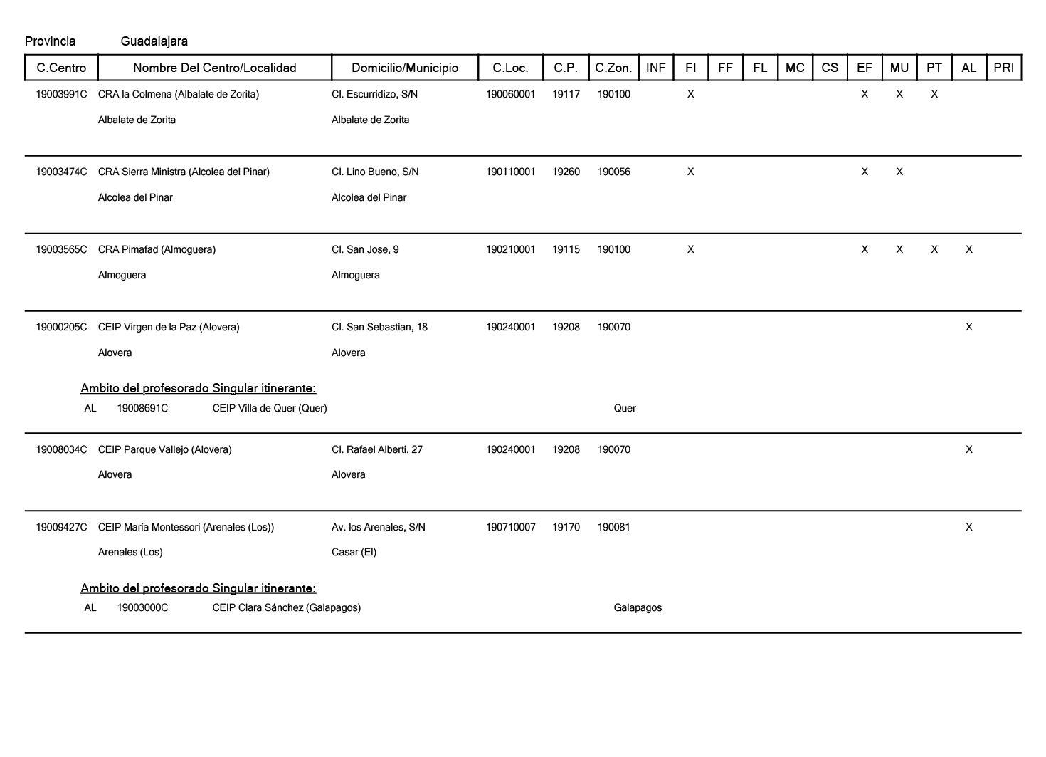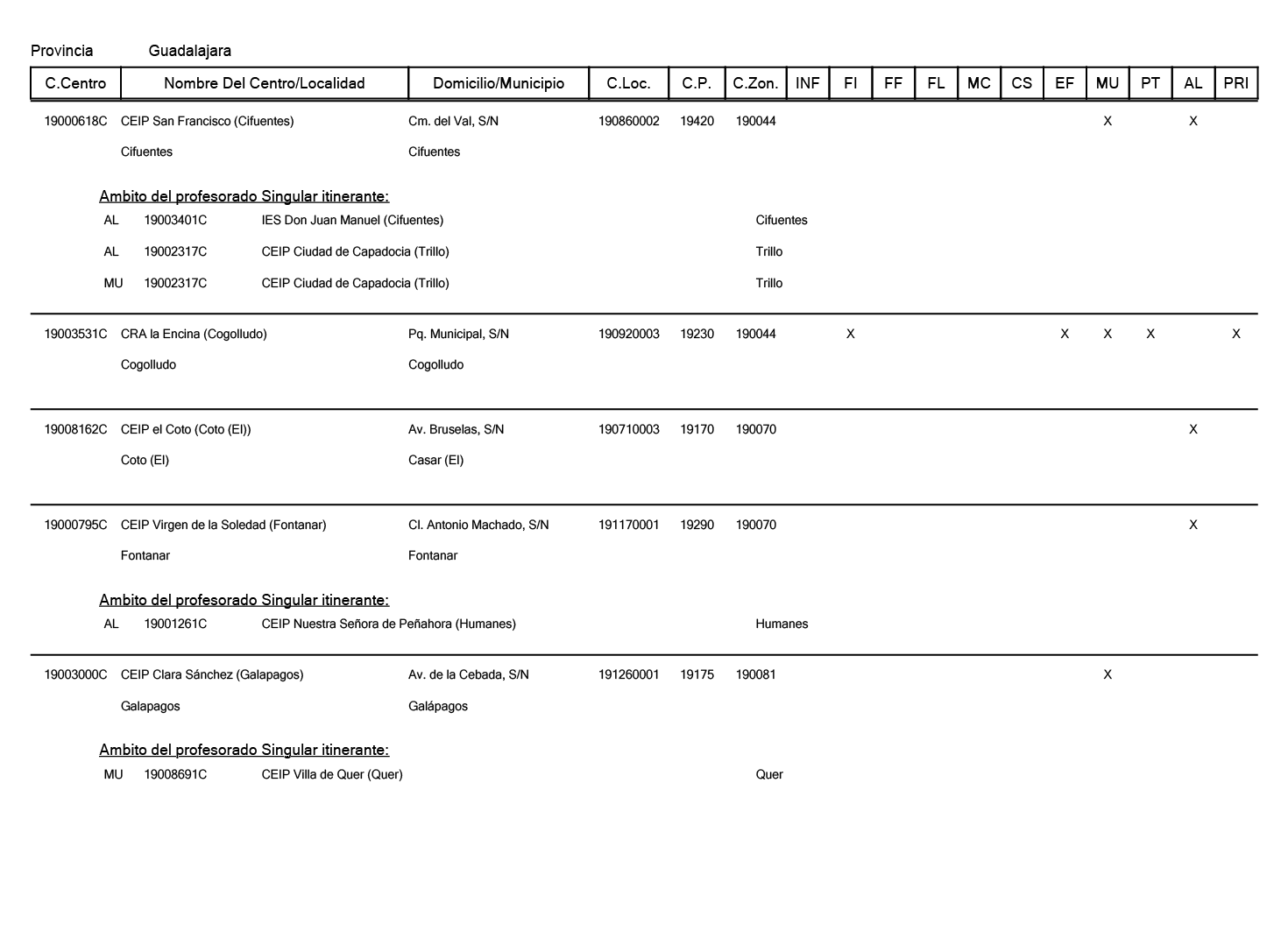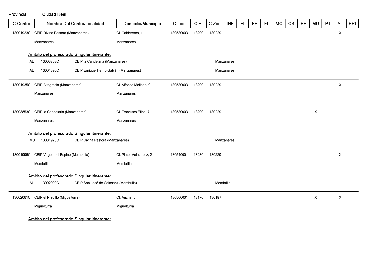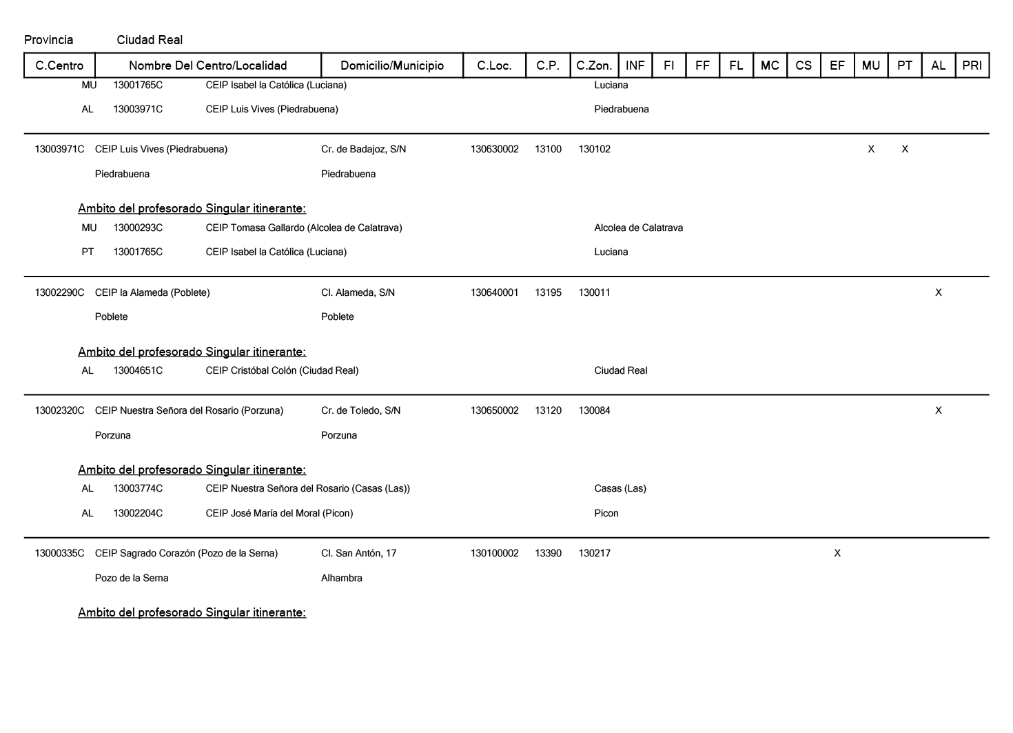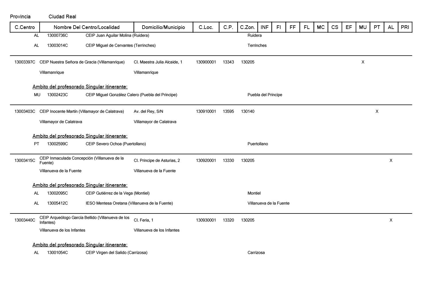 5.2.1. Las personas participantes incluirán en sus peticiones centros de una sola provincia, la misma para cada grupo de concurrencia.