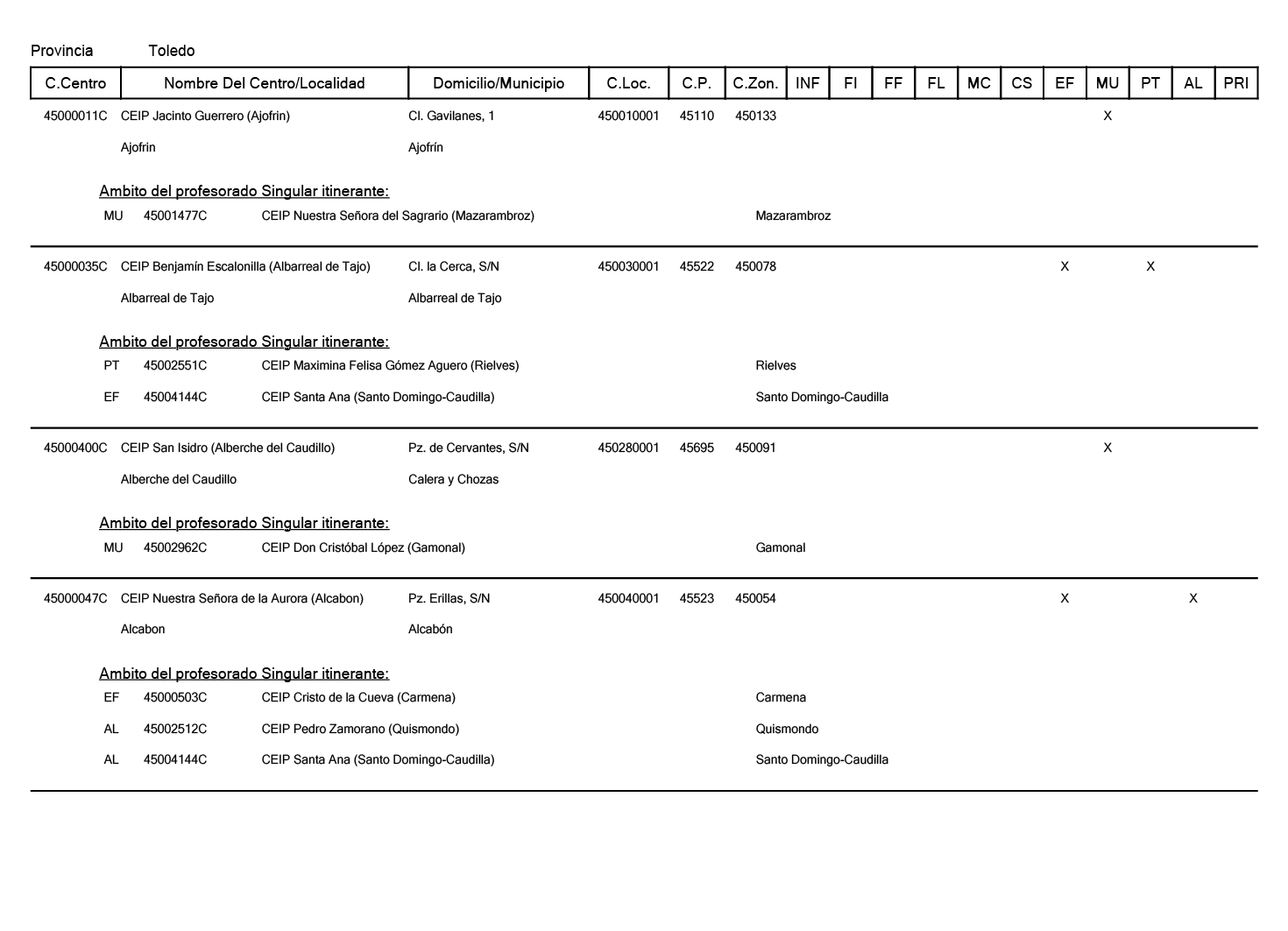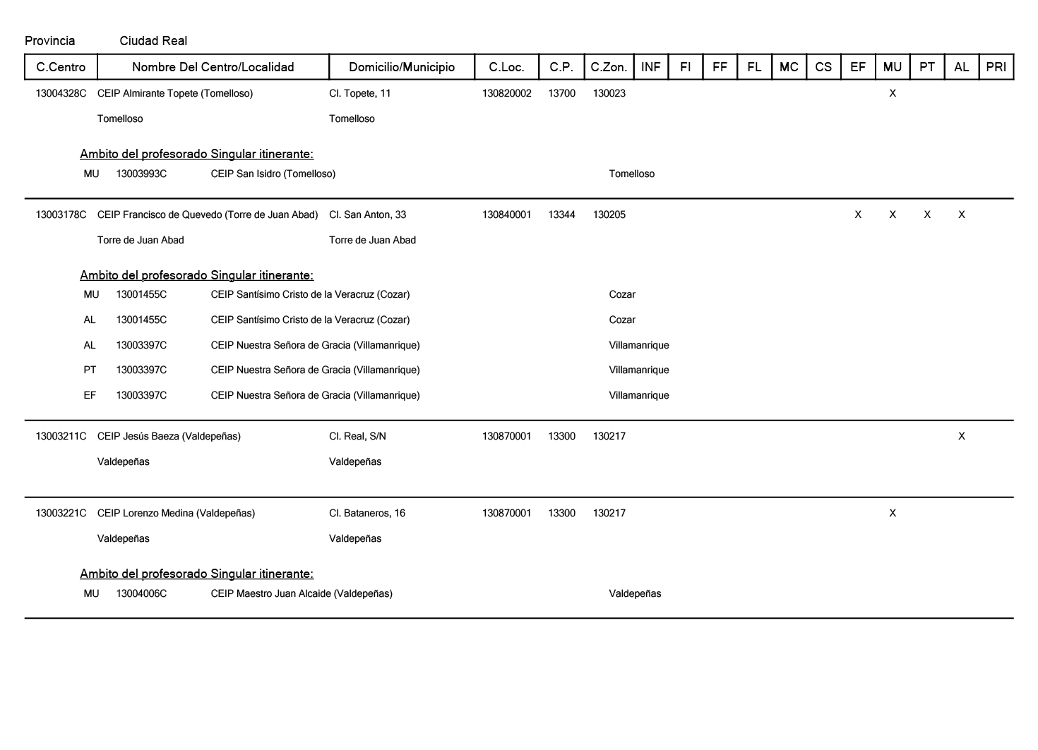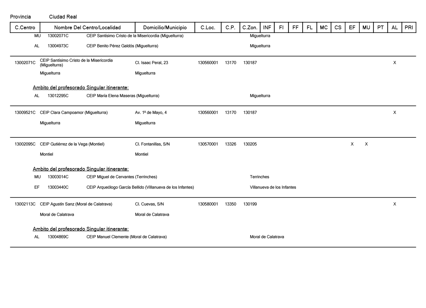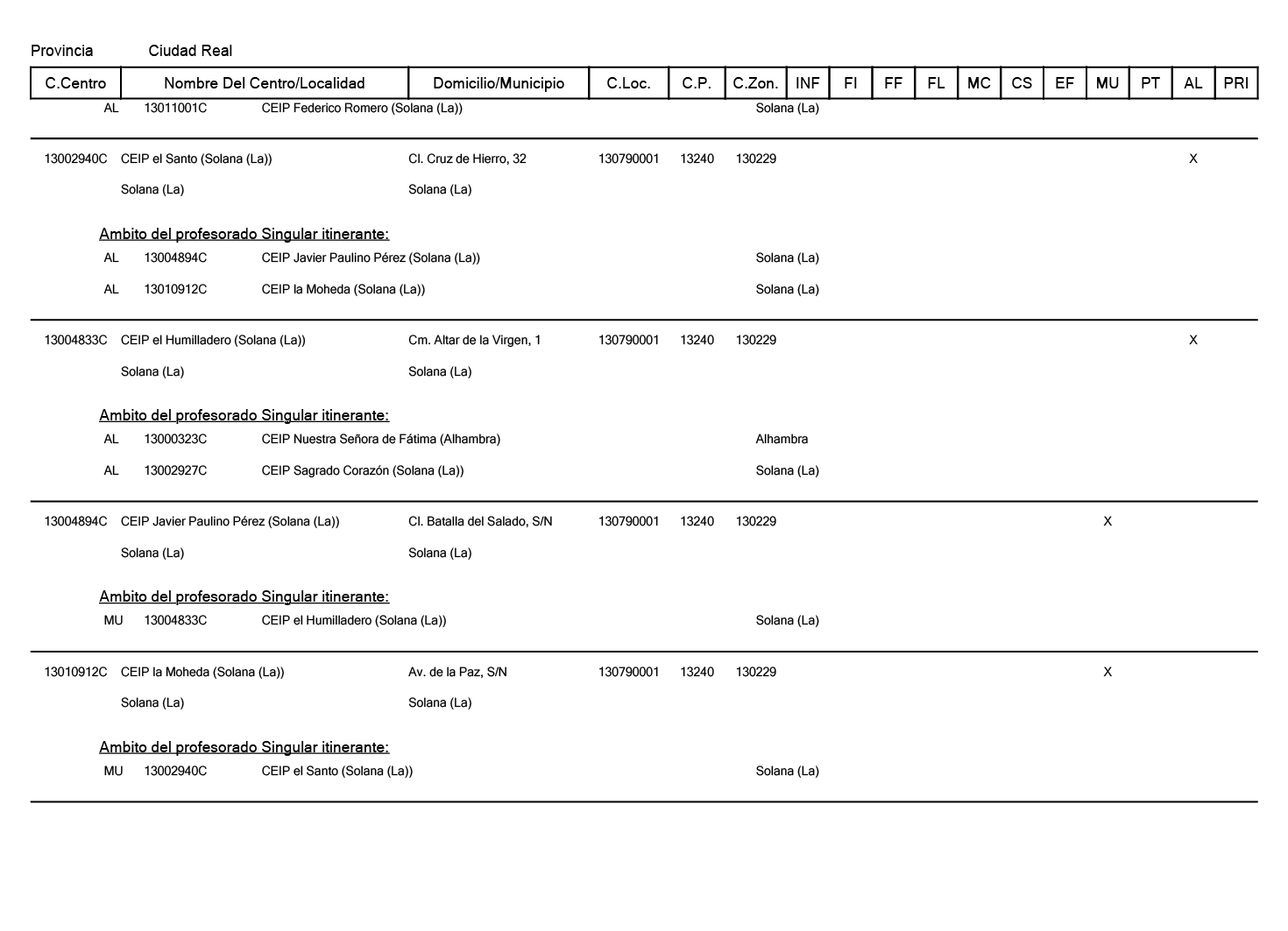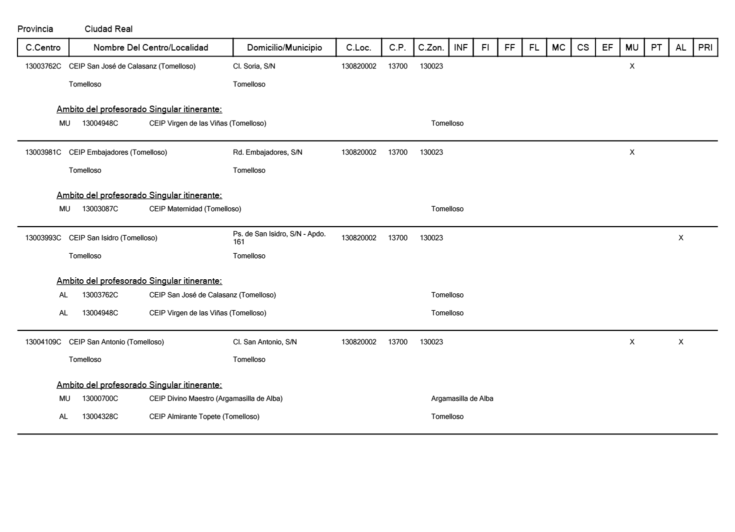5.2.1. Las personas participantes incluirán en sus peticiones centros de una sola provincia, la misma para cada grupo de concurrencia.