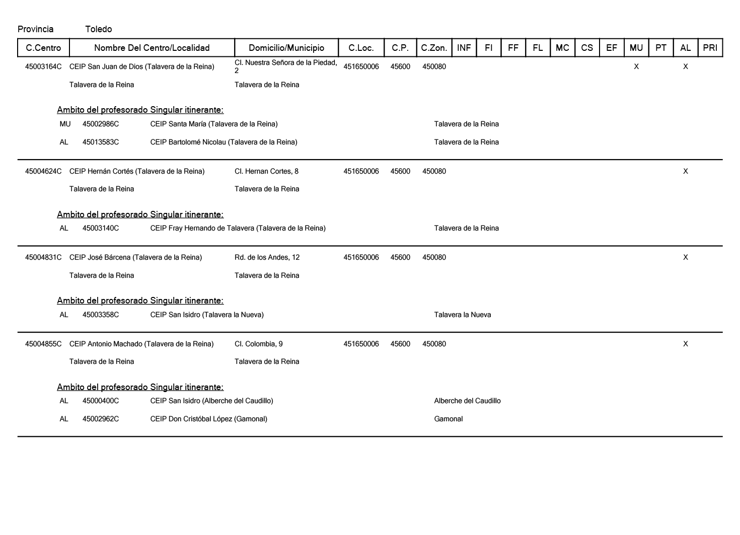 Para poder solicitar puestos correspondientes a las etapas de Educación Infantil y Educación Primaria, en las especialidades que a continuación se relacionan, se requiere poseer la habilitación correspondiente: