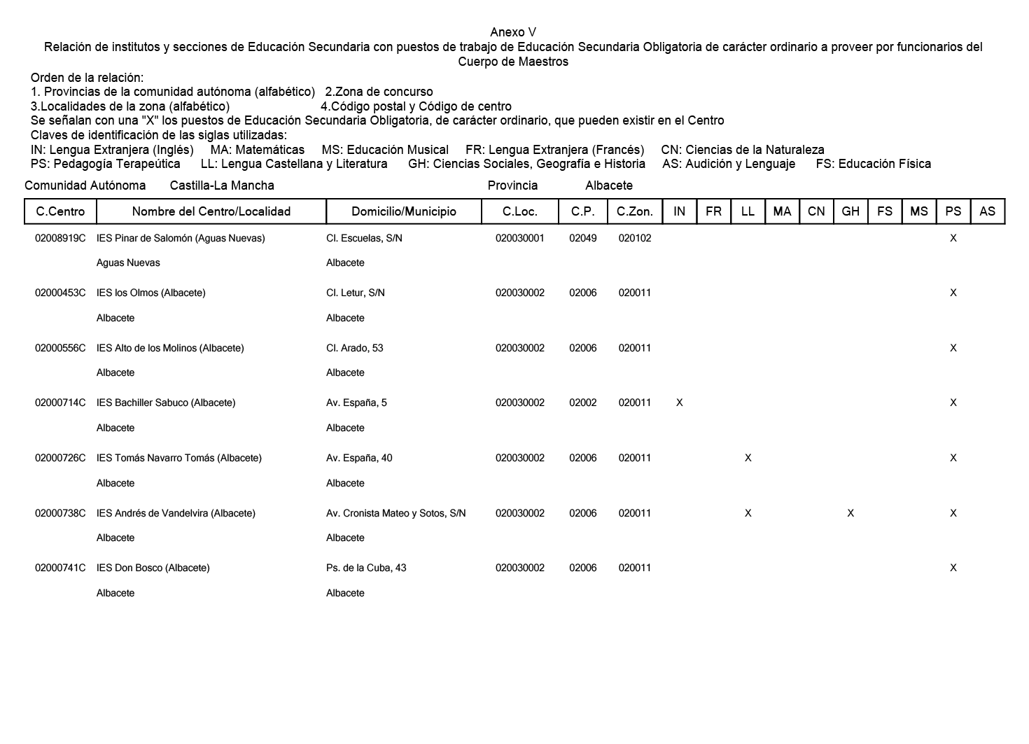 El mismo tratamiento se dará en el caso en que, y de acuerdo con las preferencias de los interesados, éstos hayan obtenido reserva de plaza en especialidad que lleva la condición de itinerancia, o especialidad tanto ordinaria como itinerante de puestos de la Educación Secundaria Obligatoria a proveer por funcionarios y funcionarias del Cuerpo de Maestros, o Educación de Adultos o plazas de inglés del The British Council o plazas bilingües, a cuyos efectos deberán cumplimentar, en su caso, todos los centros relacionados en los anexos IV, V, VI, VII y VIII pertenecientes a la localidad o localidades de que se trate.