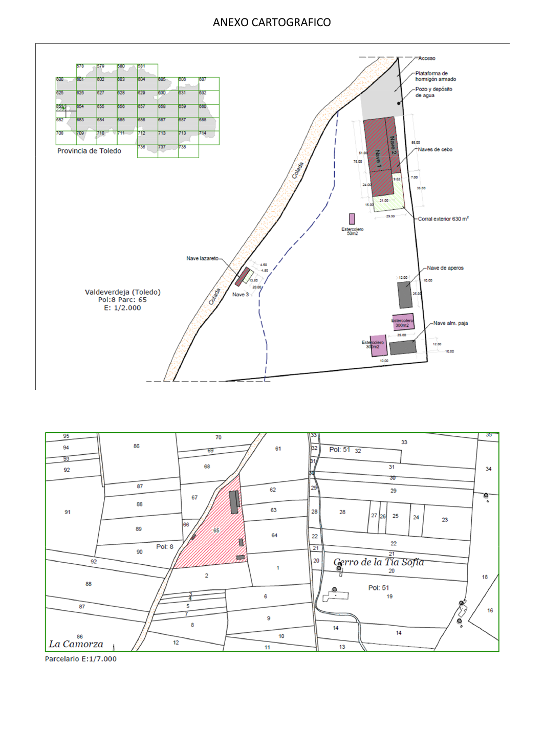 La explotación ganadera que nos ocupa está ubicada en la parcela 65 del polígono 8, en el paraje conocido como “Dehesa Particulares”, la finca tiene una superficie de 40.737m² dentro del término municipal de Valdeverdeja. (Toledo) y se encuentra a unos 2,15 km del casco urbano más cercano que es Valdeverdeja. A la finca se accede por un camino de Espajal que a su vez se comunica con el camino de La Casa de Camorza y con el municipio de Valdeverdeja y a su vez con los centros de abastecimiento y distribución.