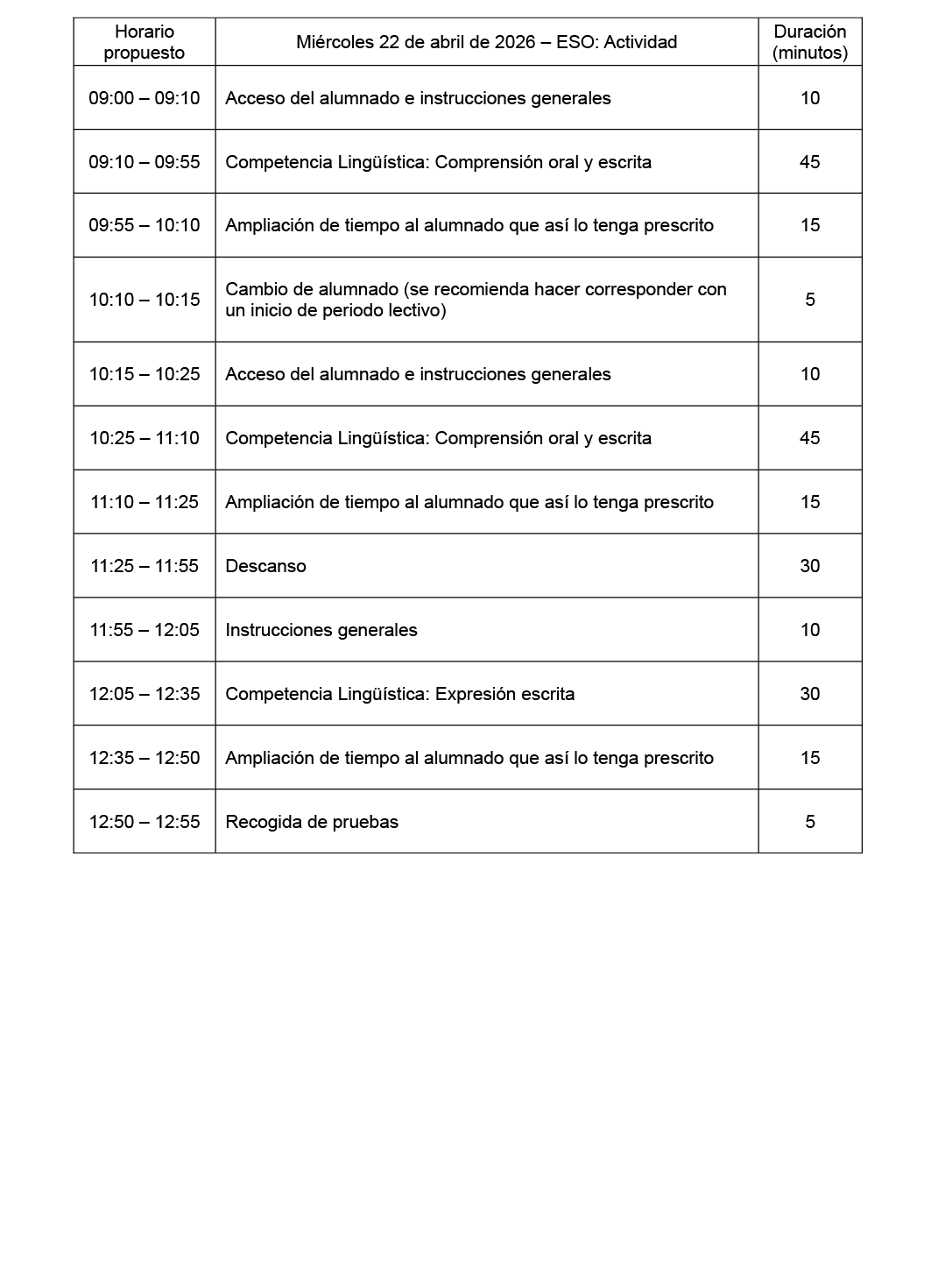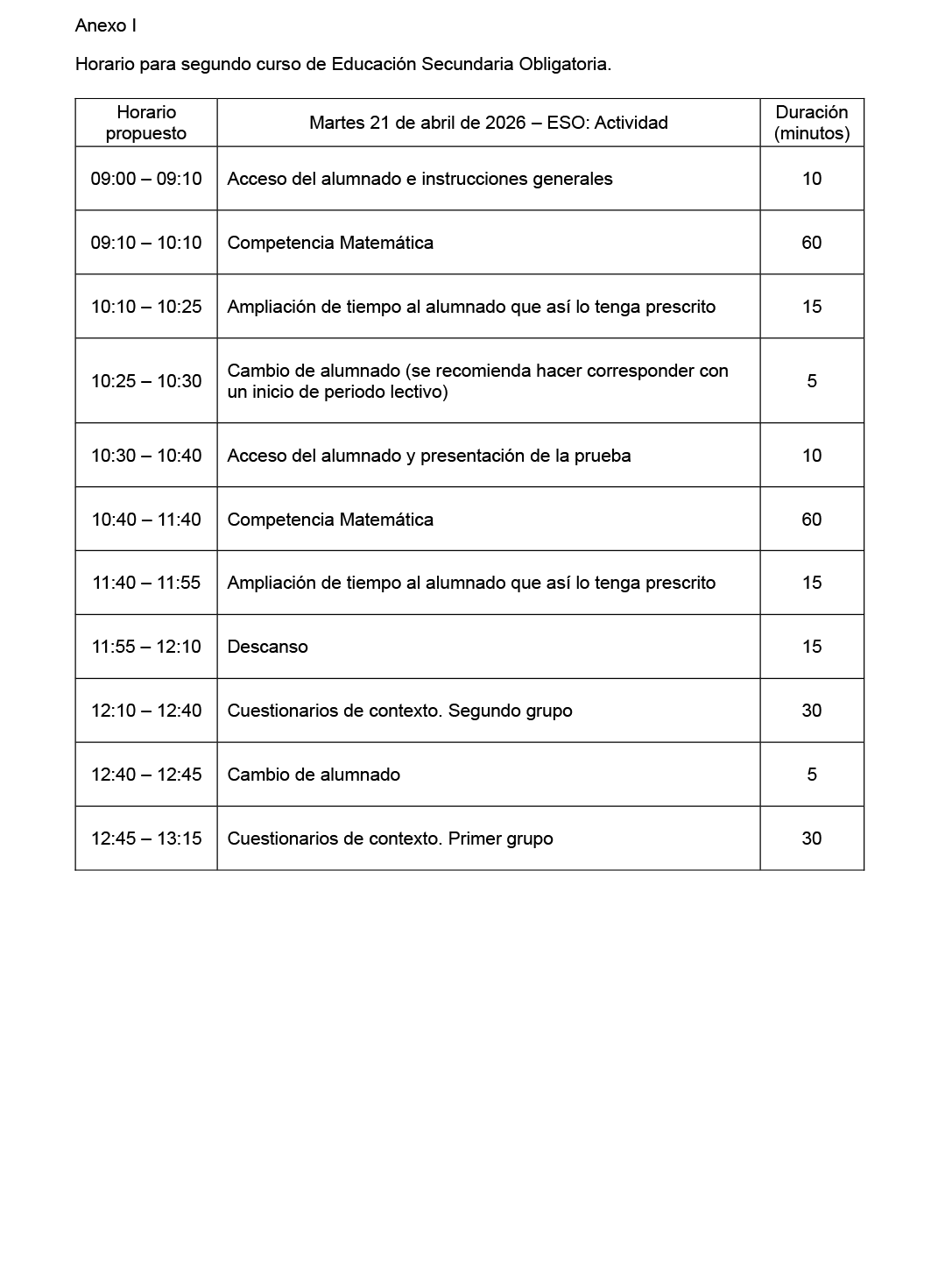 1. Segundo curso de Educación Secundaria Obligatoria: los días 21 y 22 de abril 2026.