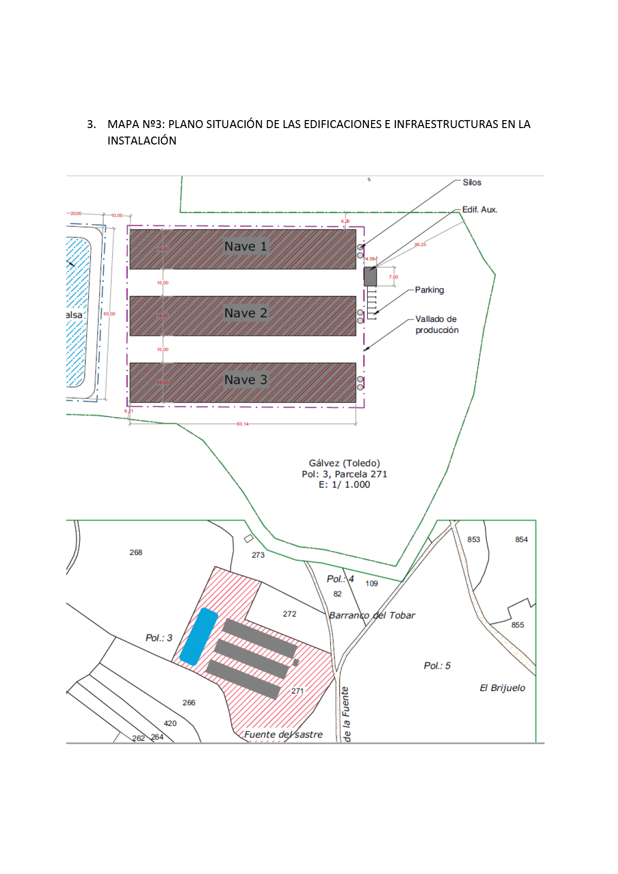 Alternativa 1: En este caso el promotor es propietario de una finca que reúne las condiciones para su instalación de la explotación ganadera. Se trata de una finca en el término municipal de Gálvez, en el paraje denominado “Fuente del Sastre”, la finca tiene una superficie de 18.604 m², ocupando la parcela 271 del polígono 03 de los Planos Generales del Catastro de Gálvez.