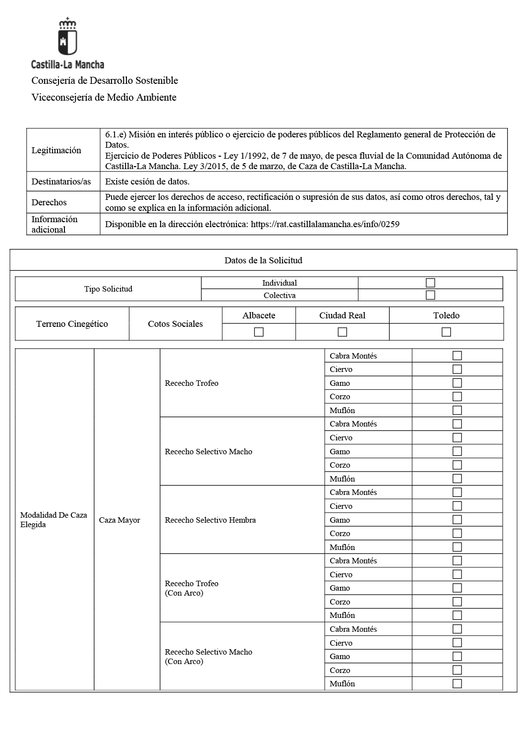 a) Solicitud individual: Se considera individual la solicitud presentada por una única persona para cualquiera de las modalidades de caza ofertadas.