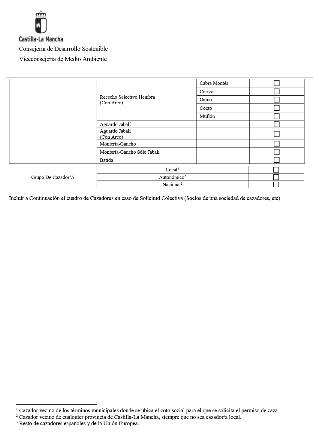 b) Autonómico: Cazador vecino de cualquier provincia de Castilla-La Mancha, siempre que no sea cazador/a local.