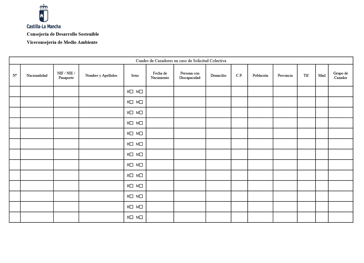 b) Solicitud colectiva: Se considera colectiva la solicitud presentada por varios cazadores para montería, gancho o batida, en una única solicitud.