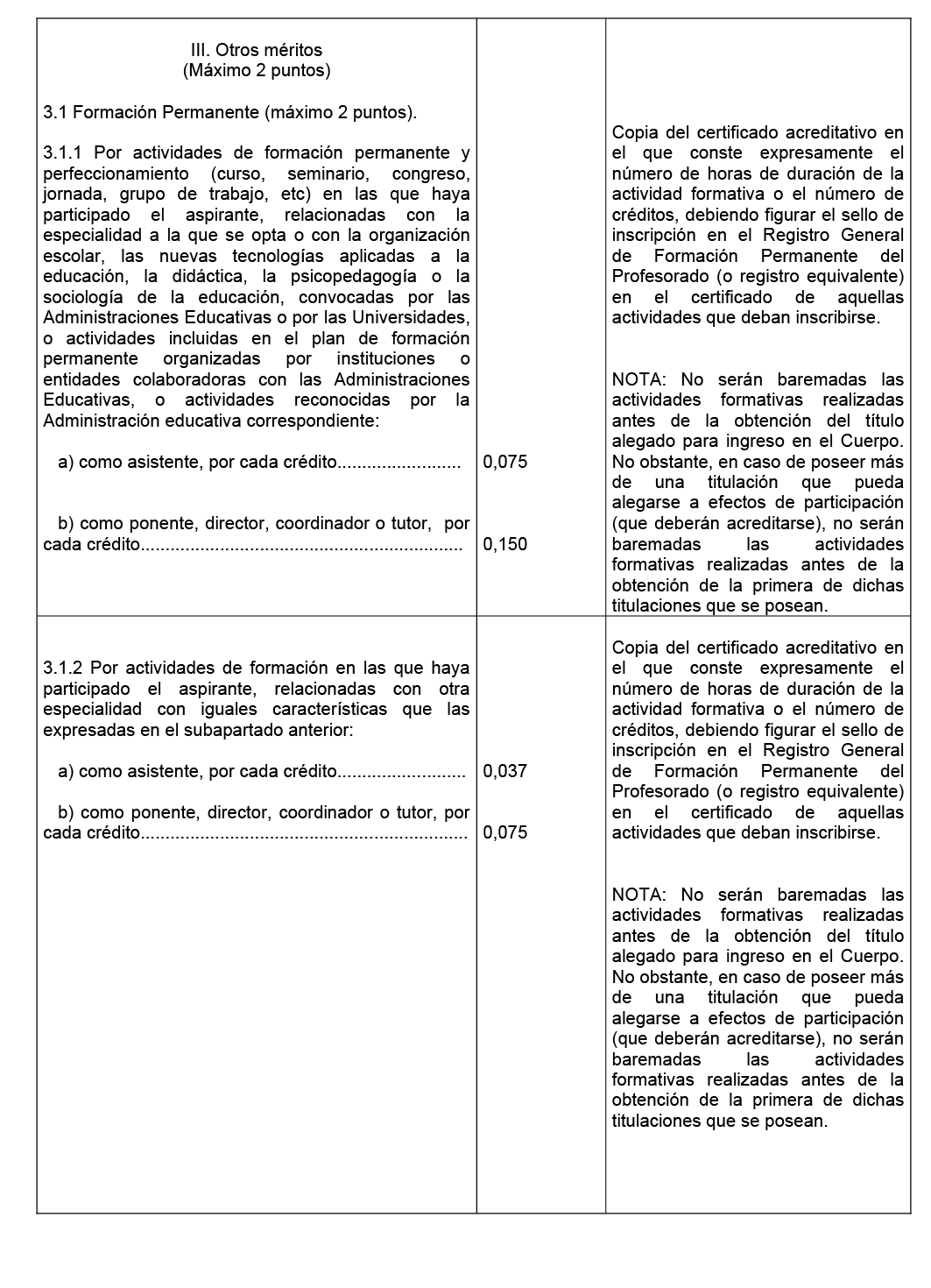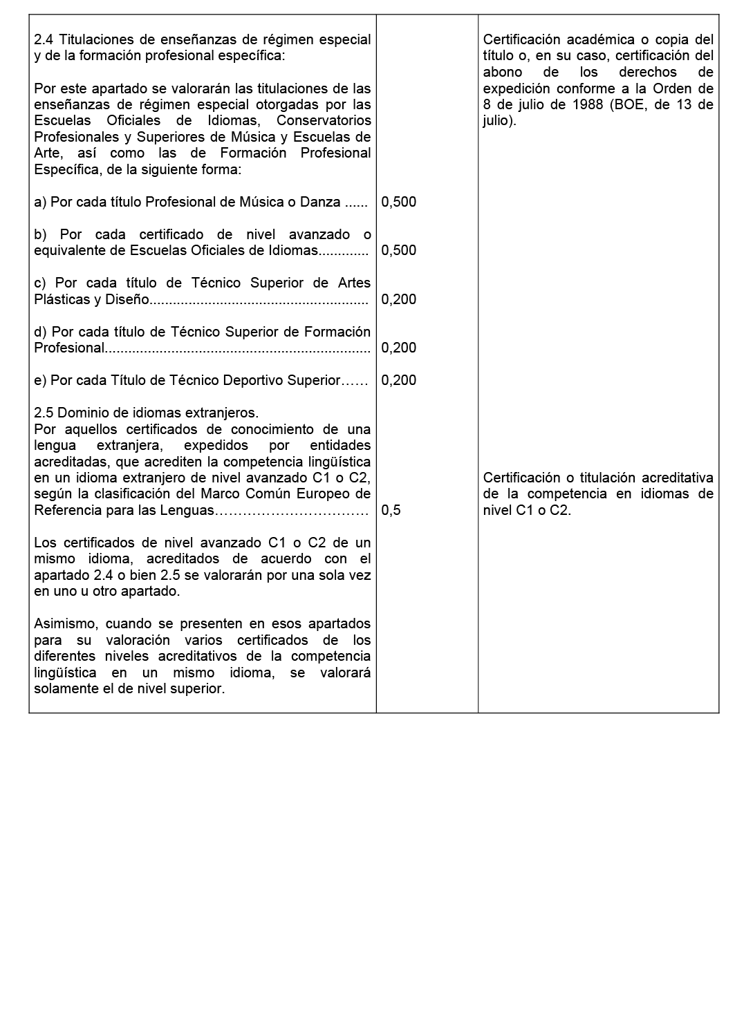 - Haber desempeñado puestos del cuerpo y la especialidad correspondiente en centros públicos docentes durante veinte meses.