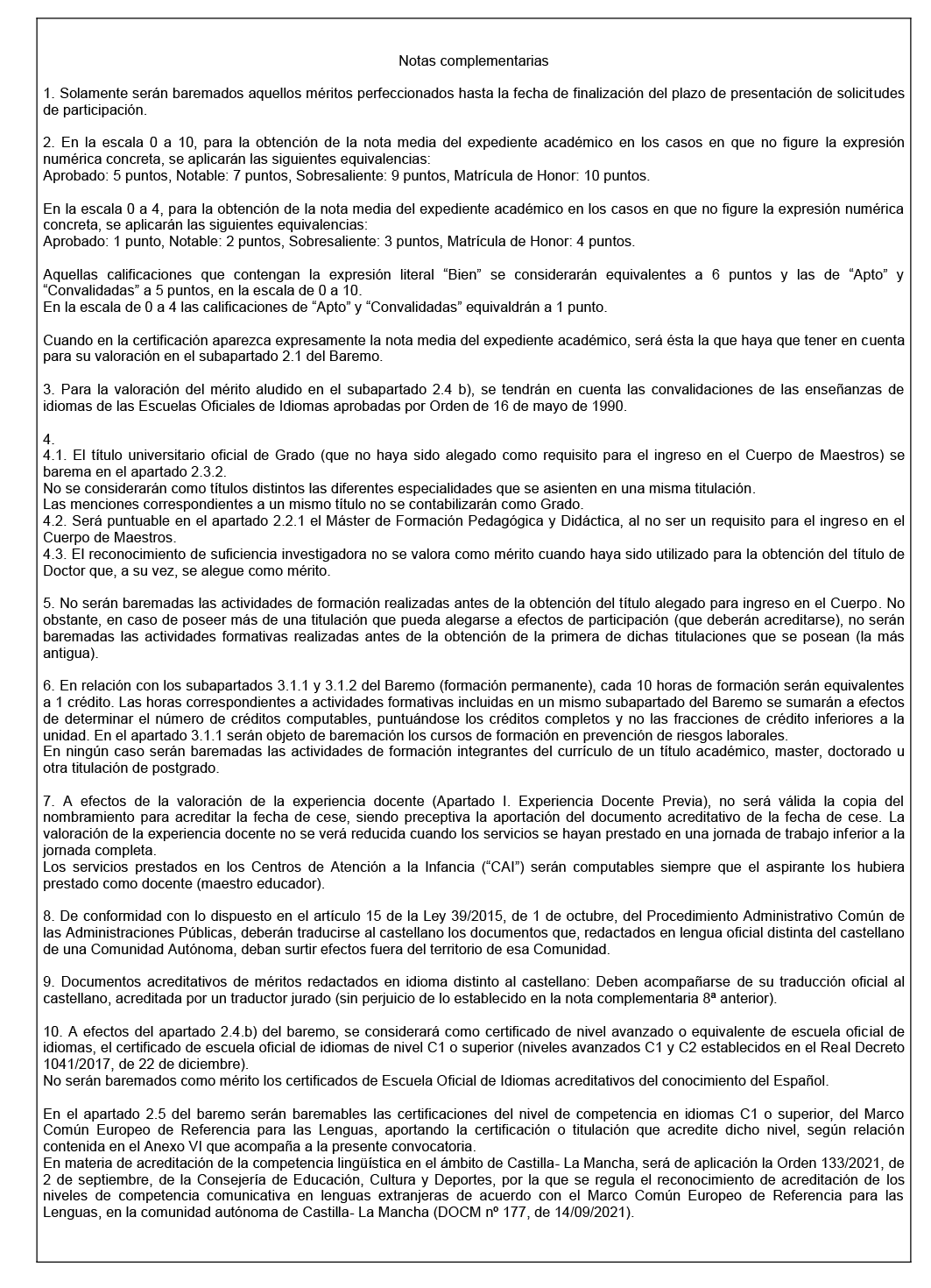 - Haber obtenido una calificación igual o superior a cinco puntos sobre diez en la primera prueba de la especialidad de la fase de oposición de cualquier proceso selectivo convocado en la comunidad autónoma de Castilla-La Mancha desde el 01/01/2013.