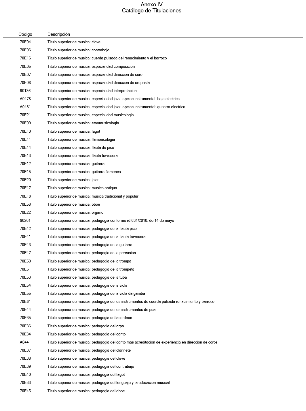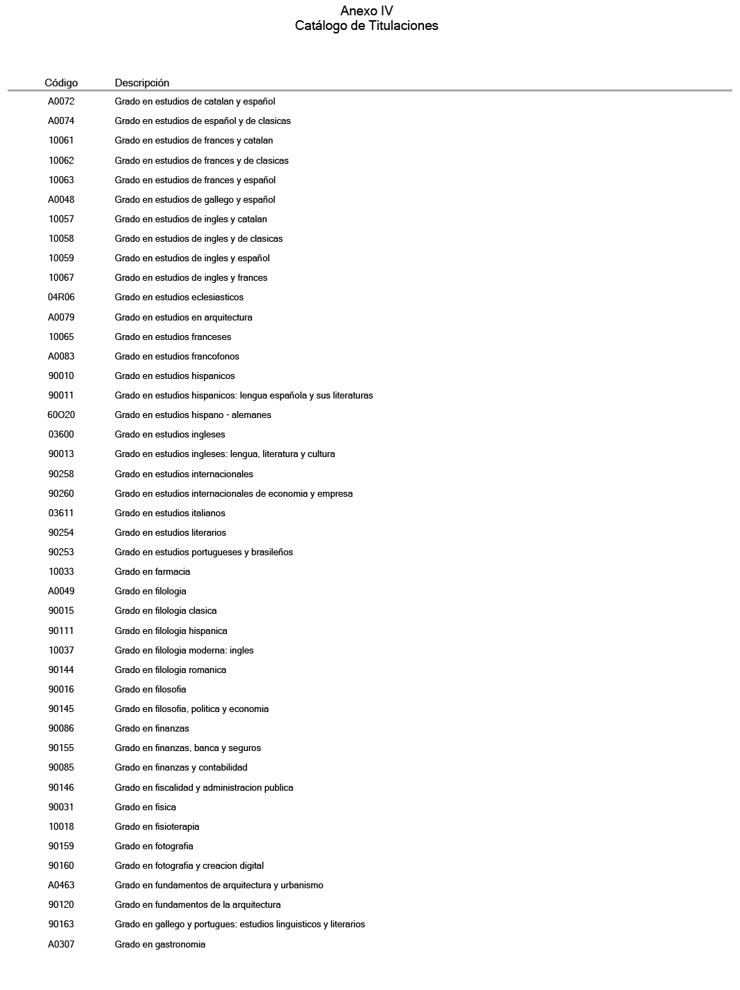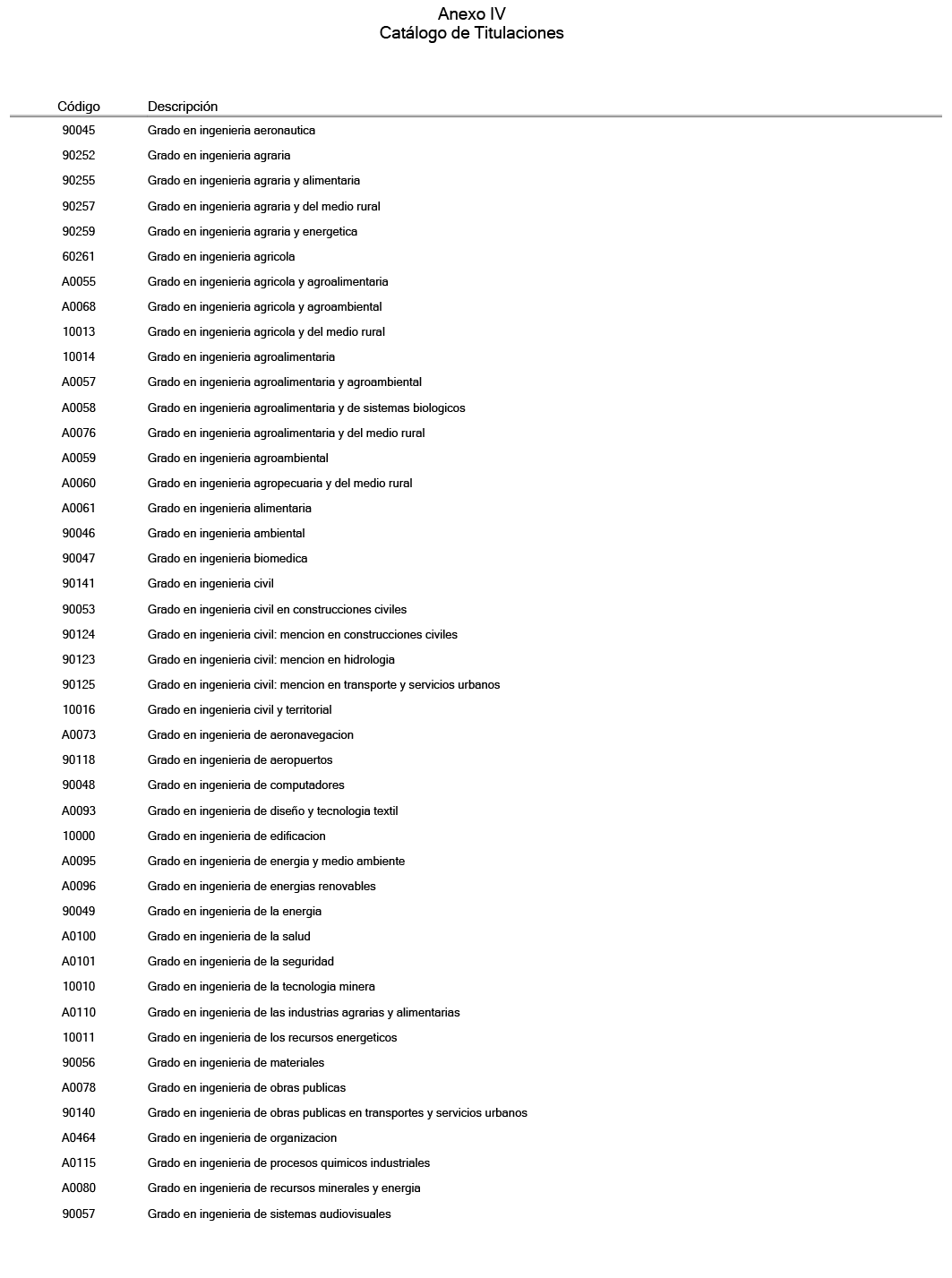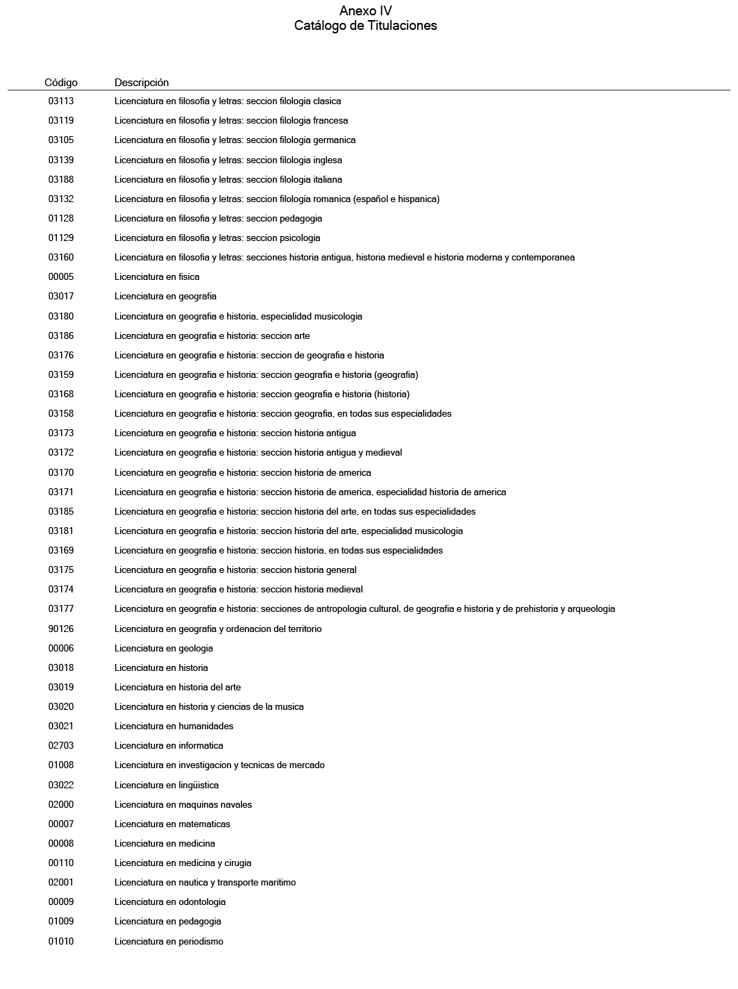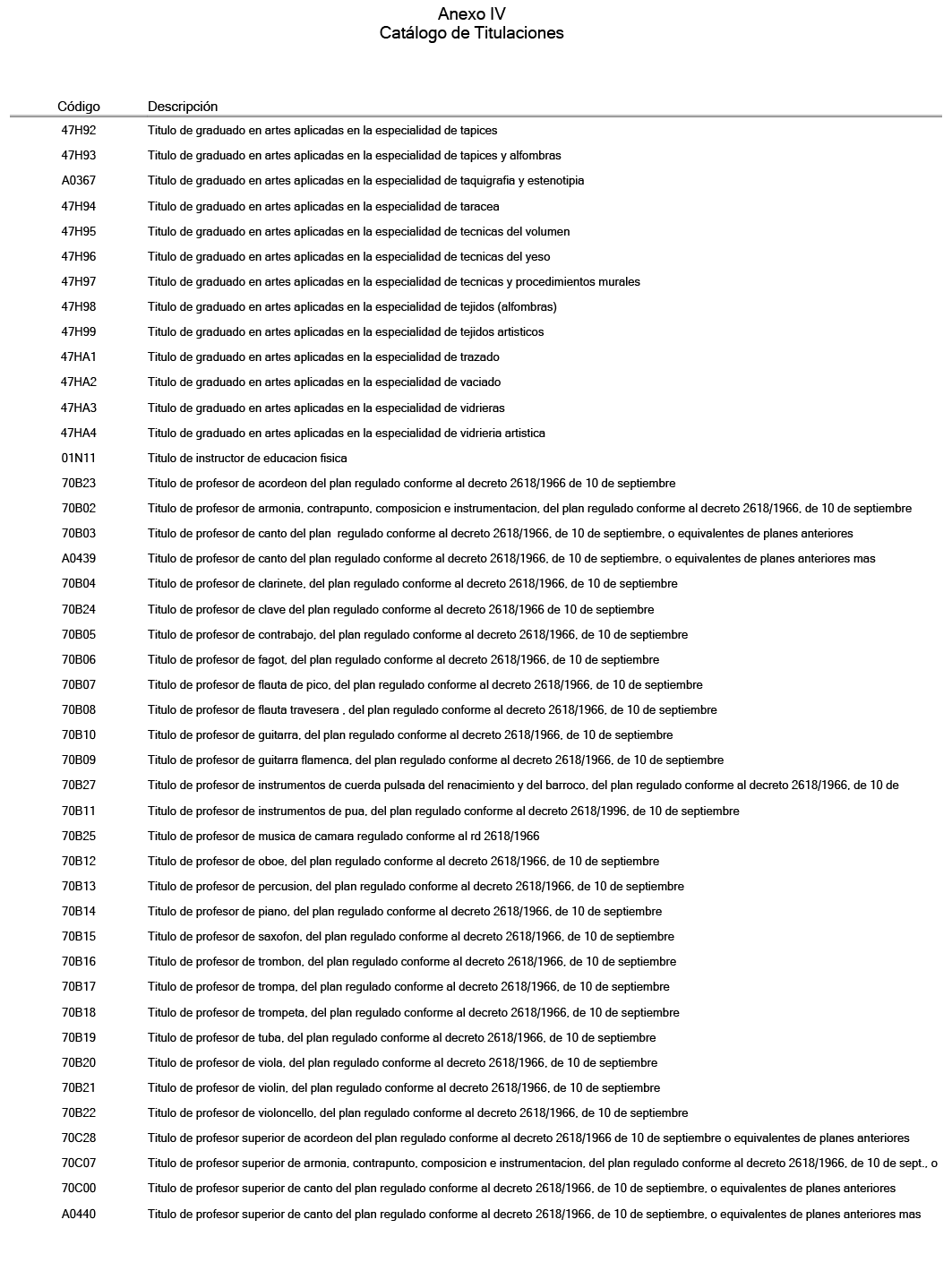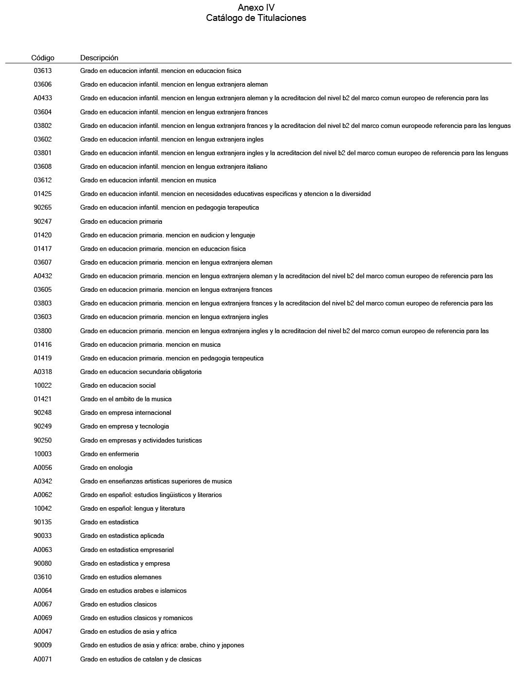 4.2. Los aspirantes consignarán en los apartados correspondientes el código y denominación del título alegado por el aspirante y exigido en la convocatoria para participar en el proceso selectivo. Los códigos y denominaciones de los títulos son los que se recogen en el anexo IV de la convocatoria.