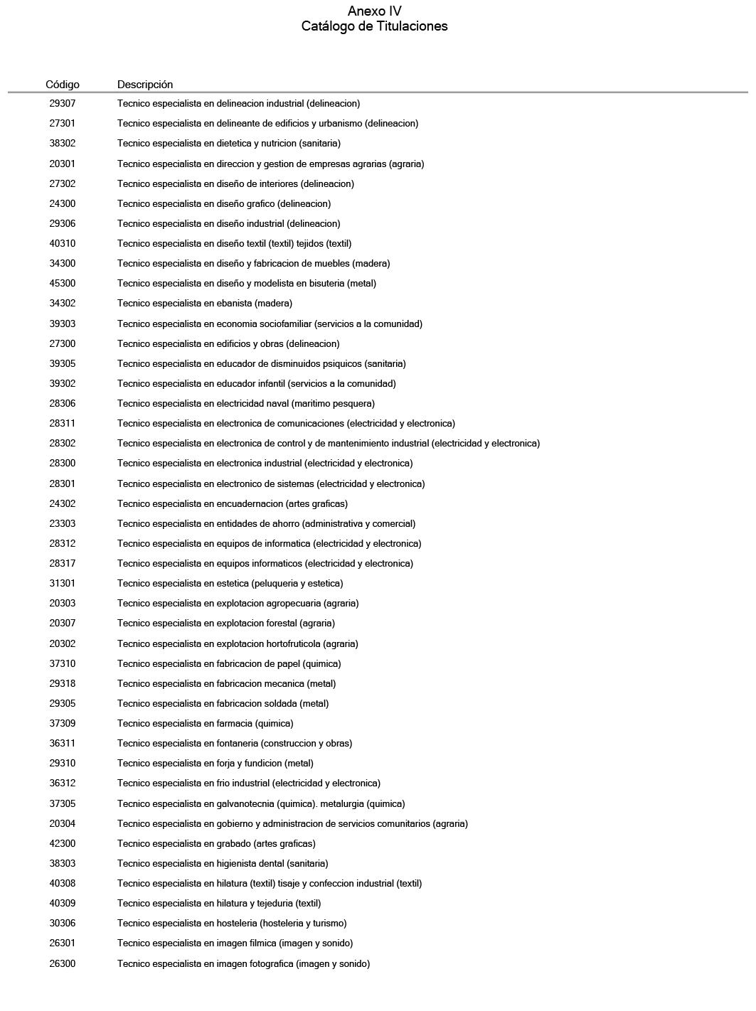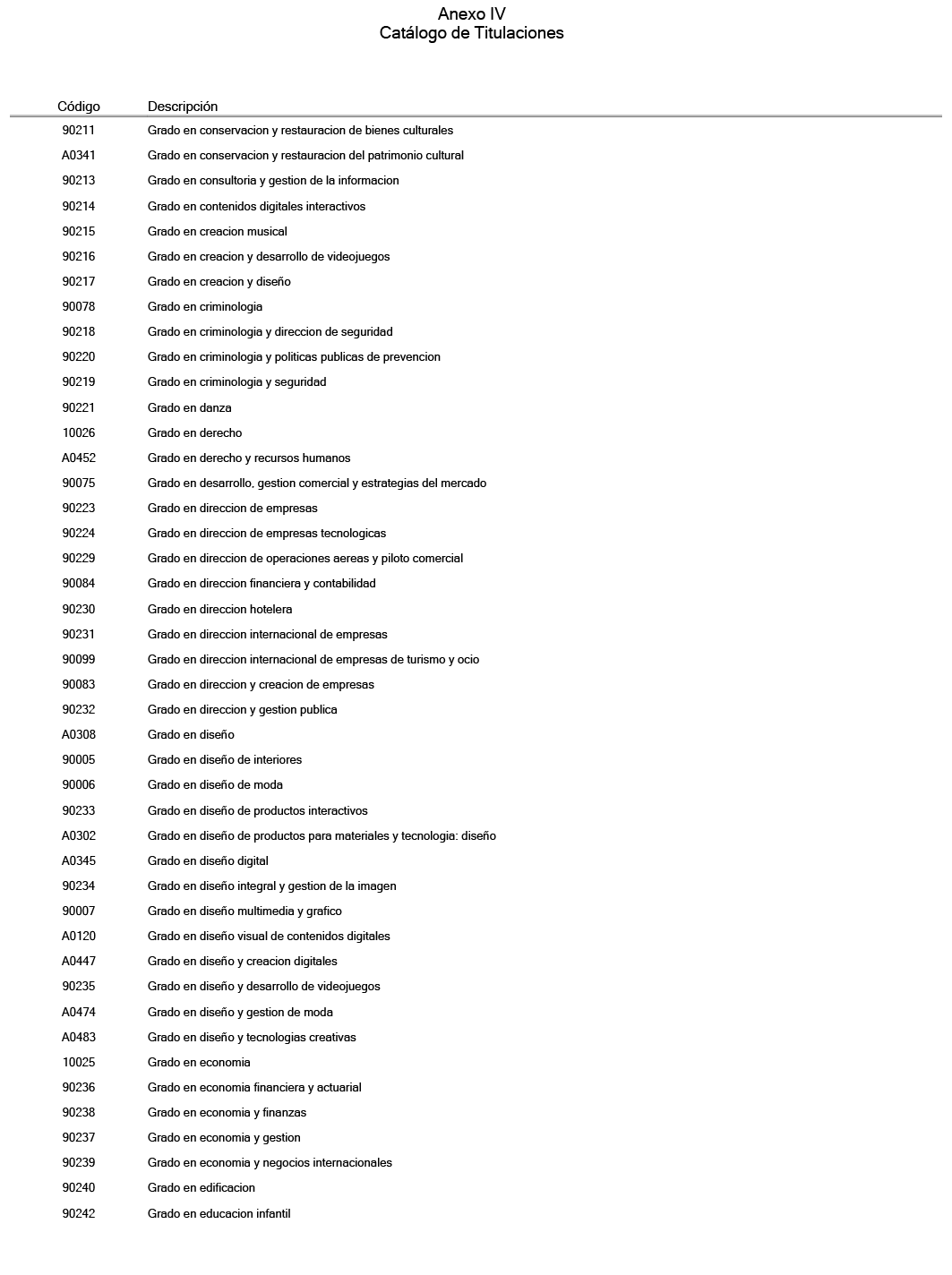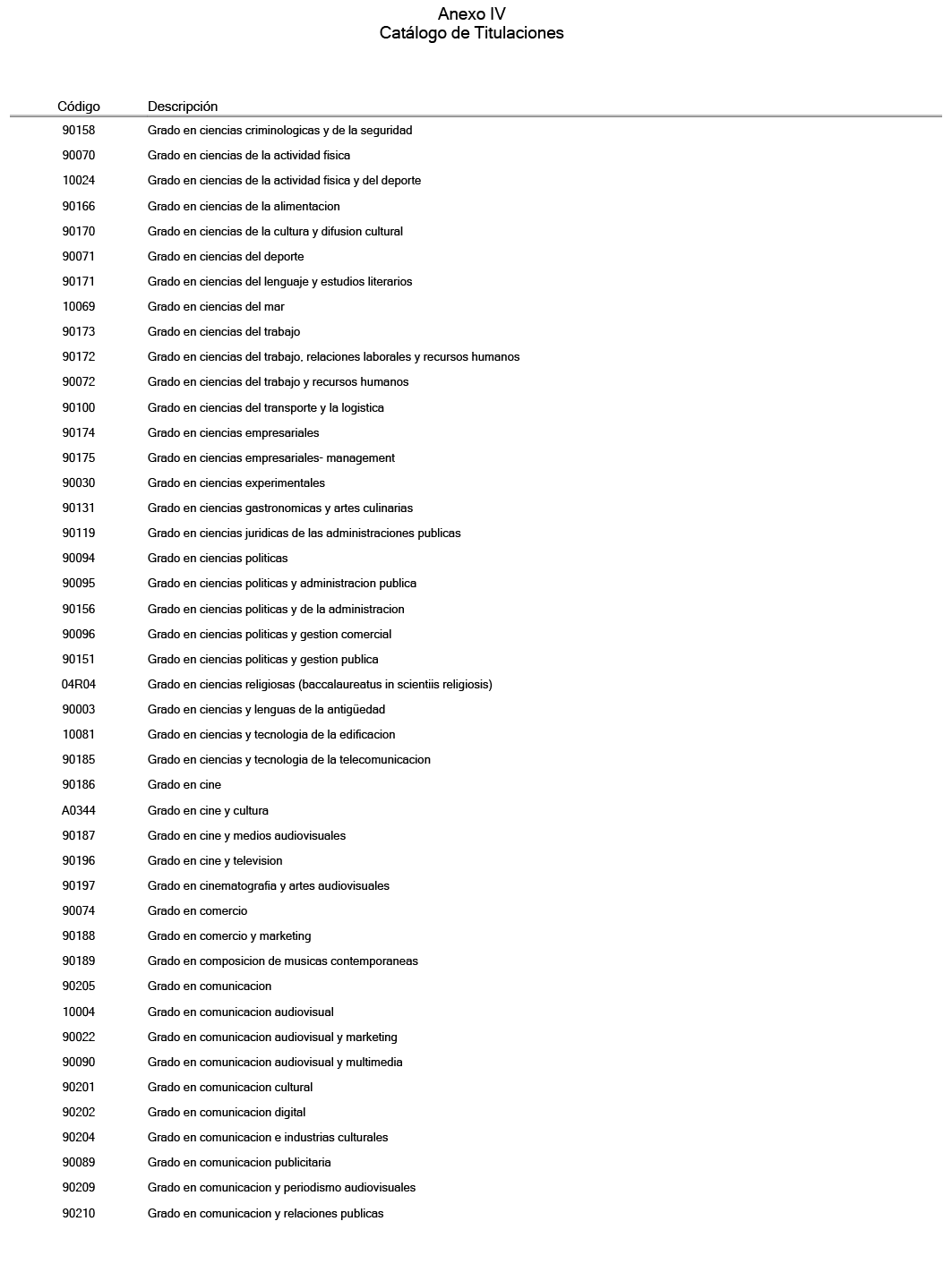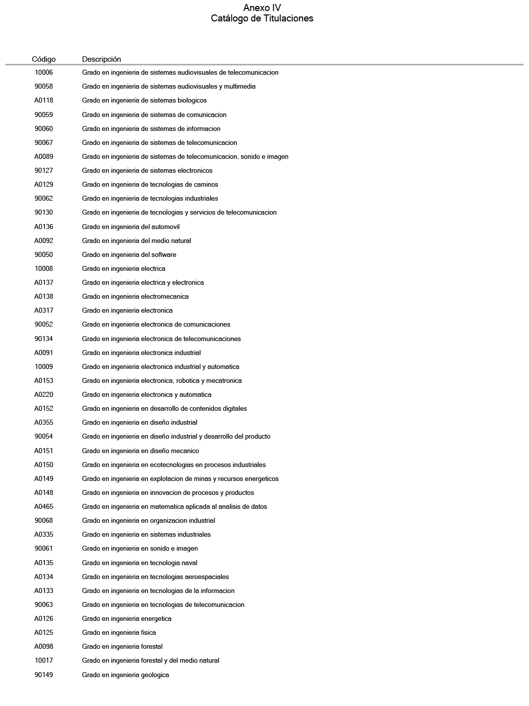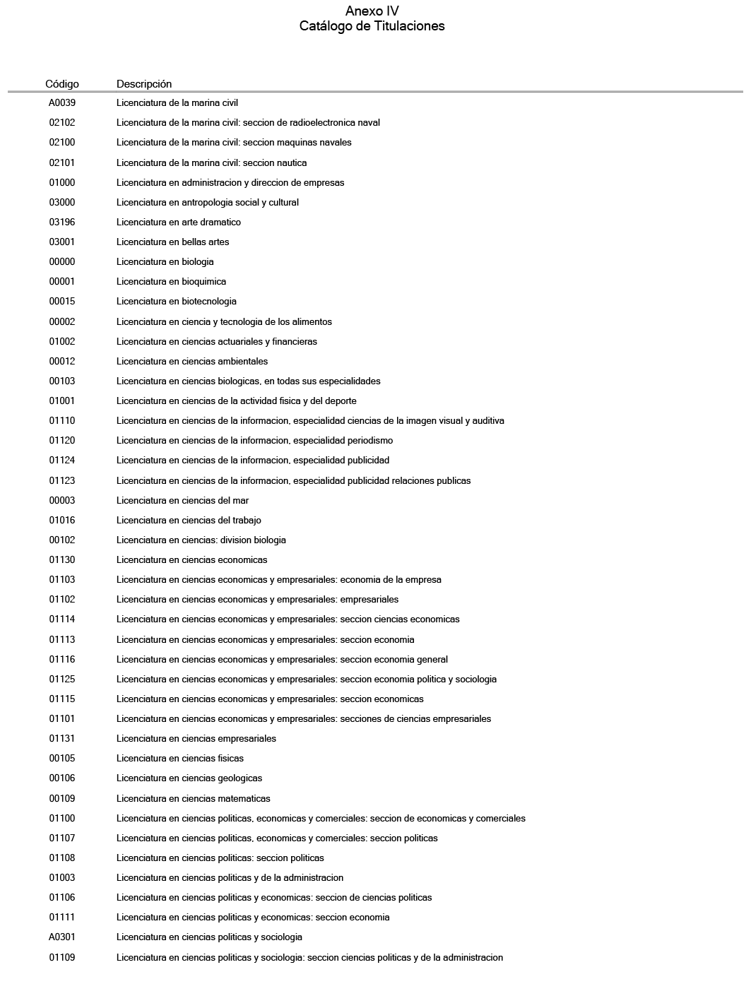 4.2. Los aspirantes consignarán en los apartados correspondientes el código y denominación del título alegado por el aspirante y exigido en la convocatoria para participar en el proceso selectivo. Los códigos y denominaciones de los títulos son los que se recogen en el anexo IV de la convocatoria.