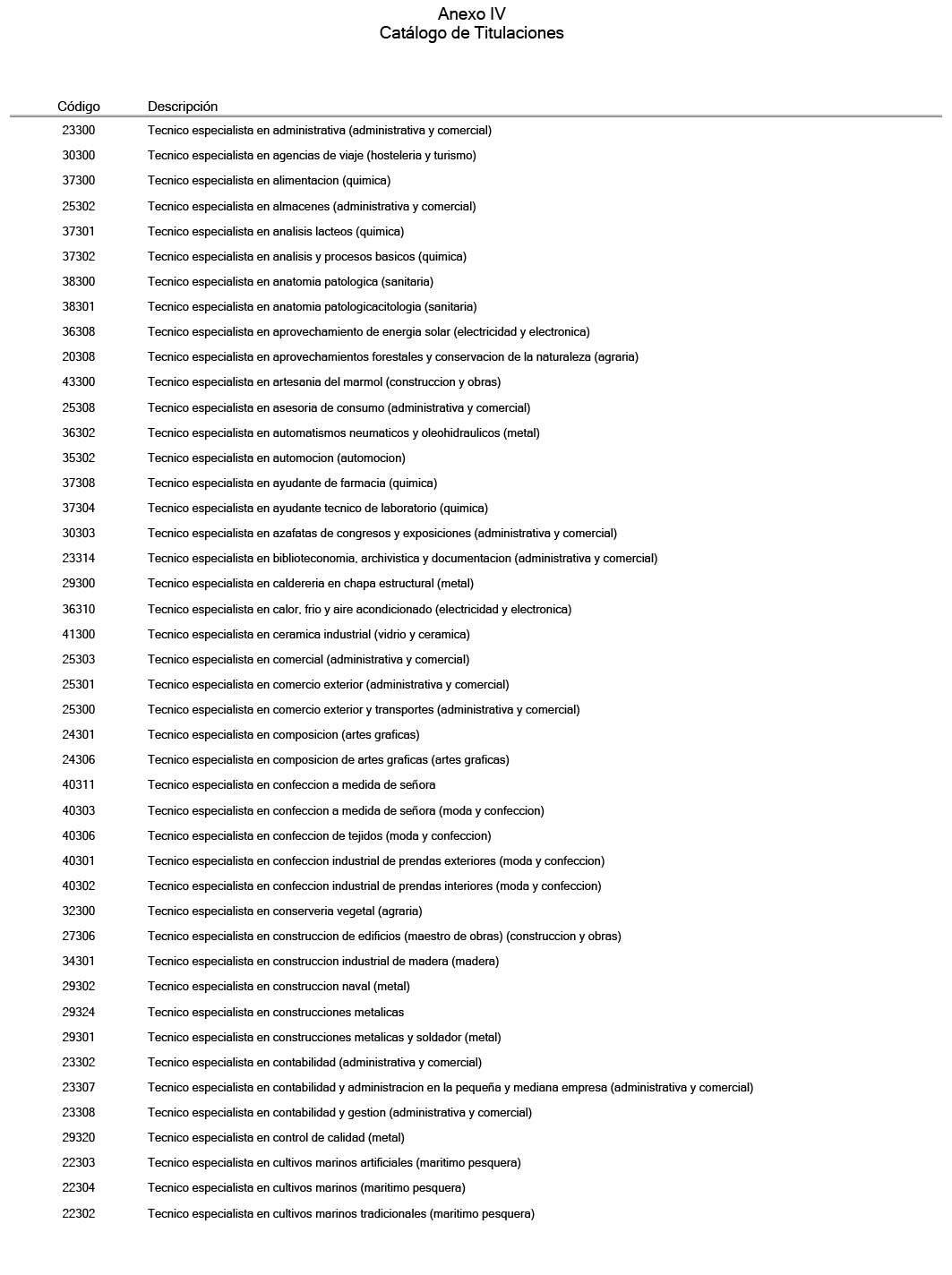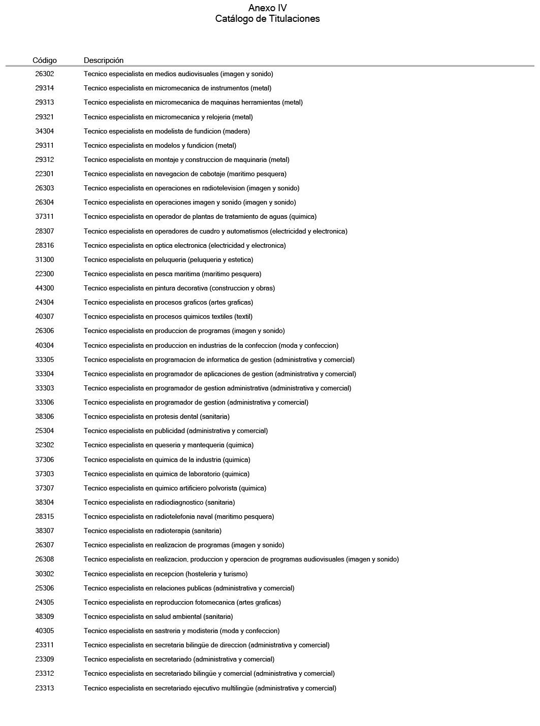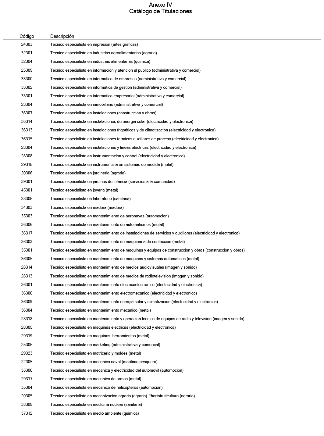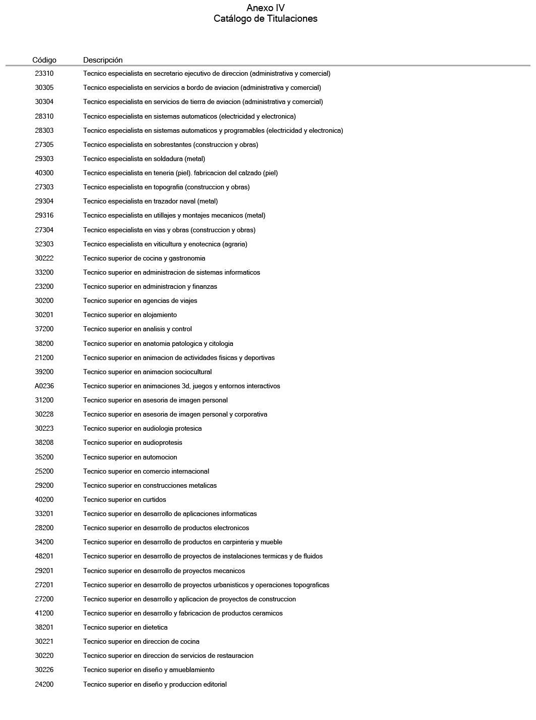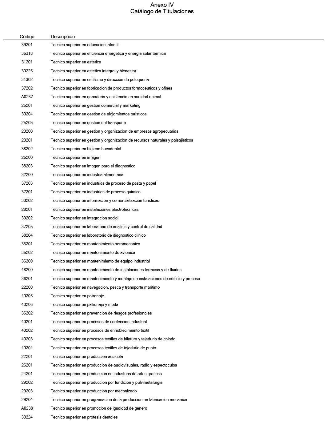 4.2. Los aspirantes consignarán en los apartados correspondientes el código y denominación del título alegado por el aspirante y exigido en la convocatoria para participar en el proceso selectivo. Los códigos y denominaciones de los títulos son los que se recogen en el anexo IV de la convocatoria.