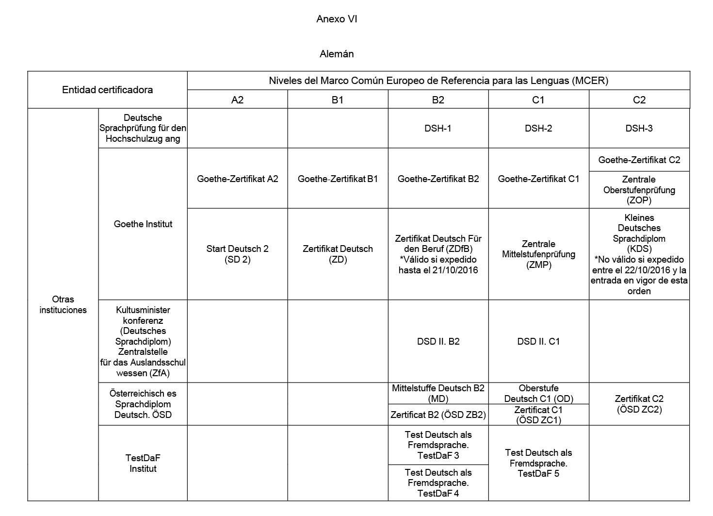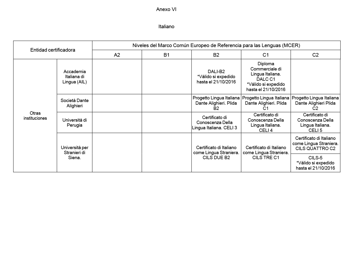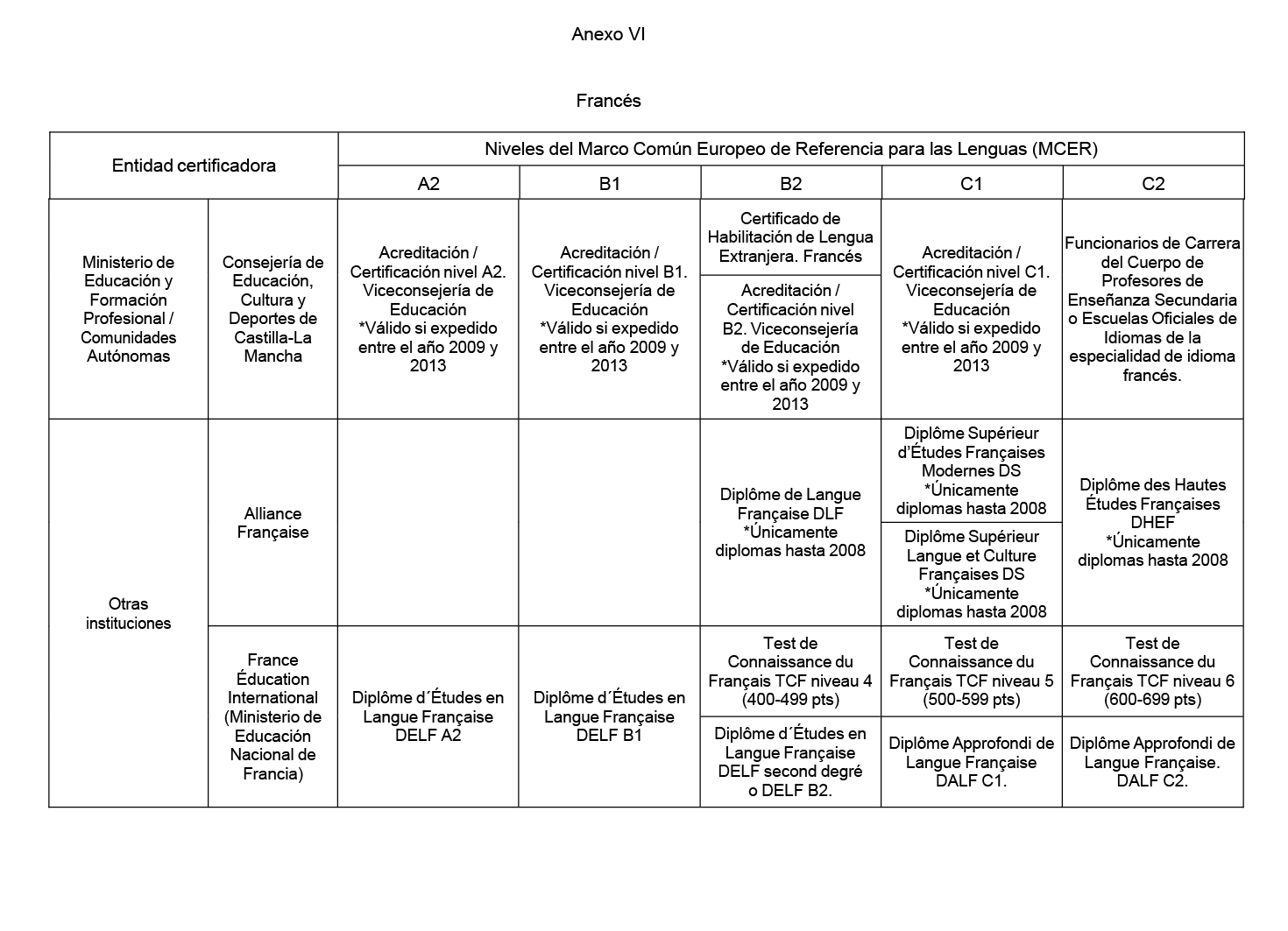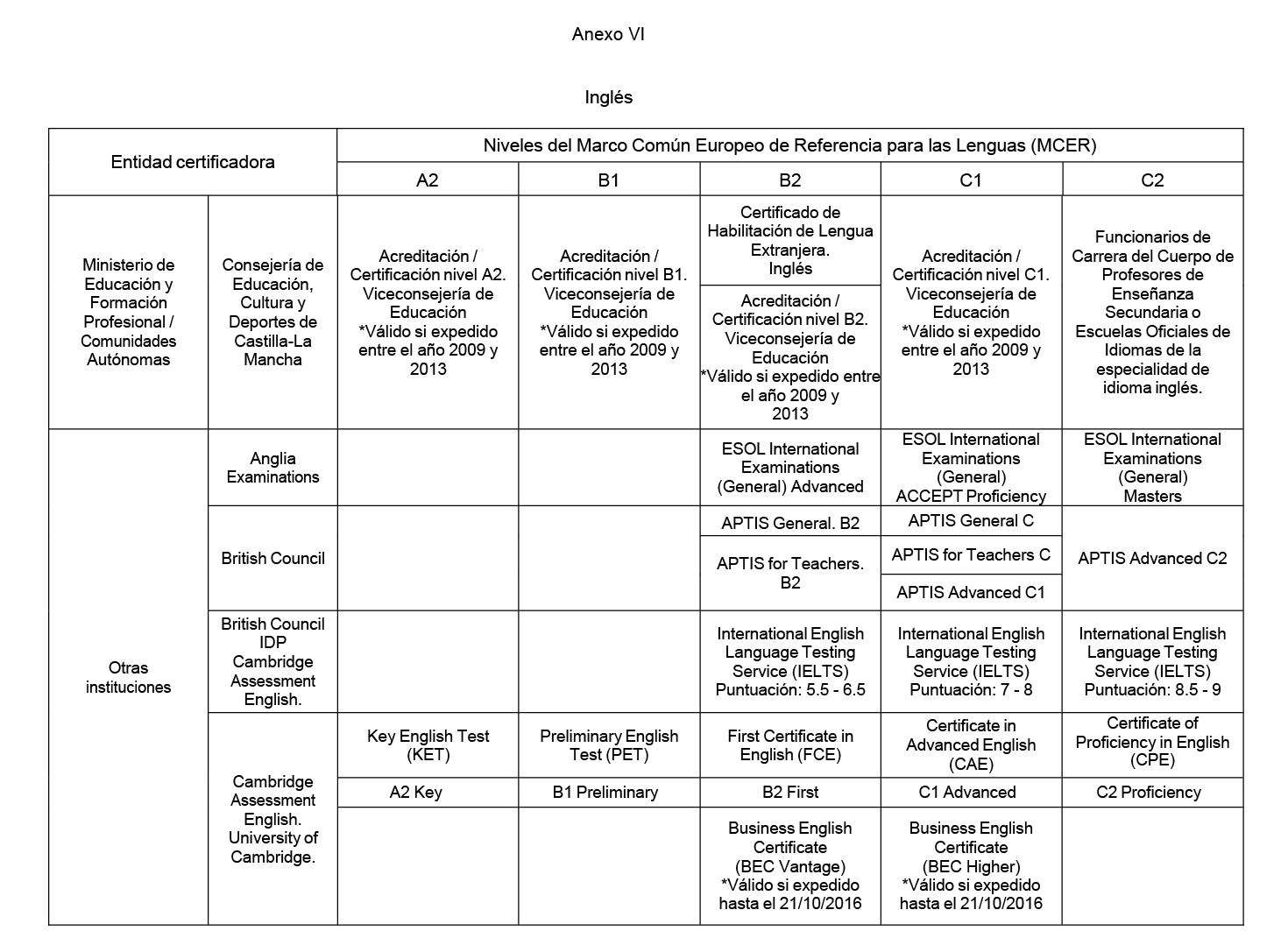 Anexo VI: Titulaciones para la acreditación de la competencia lingüística.