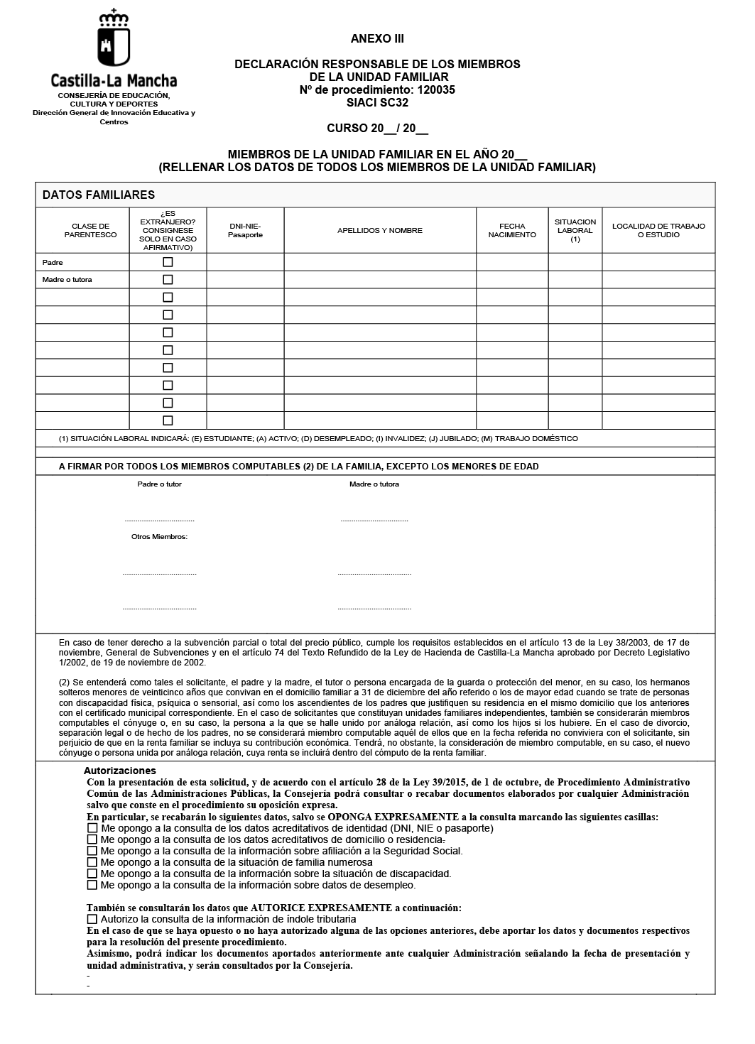 4. A efectos de valoración de los ingresos, los solicitantes aportarán los datos sobre otros miembros computables de la unidad familiar con arreglo al modelo que figura como anexo III de esta resolución. Los datos declarados podrán ser comprobados por la Consejería con competencias en materia de educación en las entidades previstas en el punto 1 de este apartado, debiendo aportar los justificantes en caso de oposición de los interesados a la comprobación.
