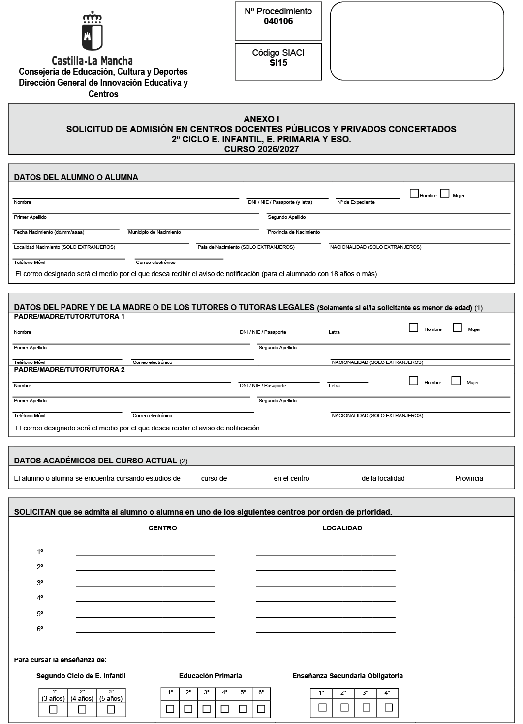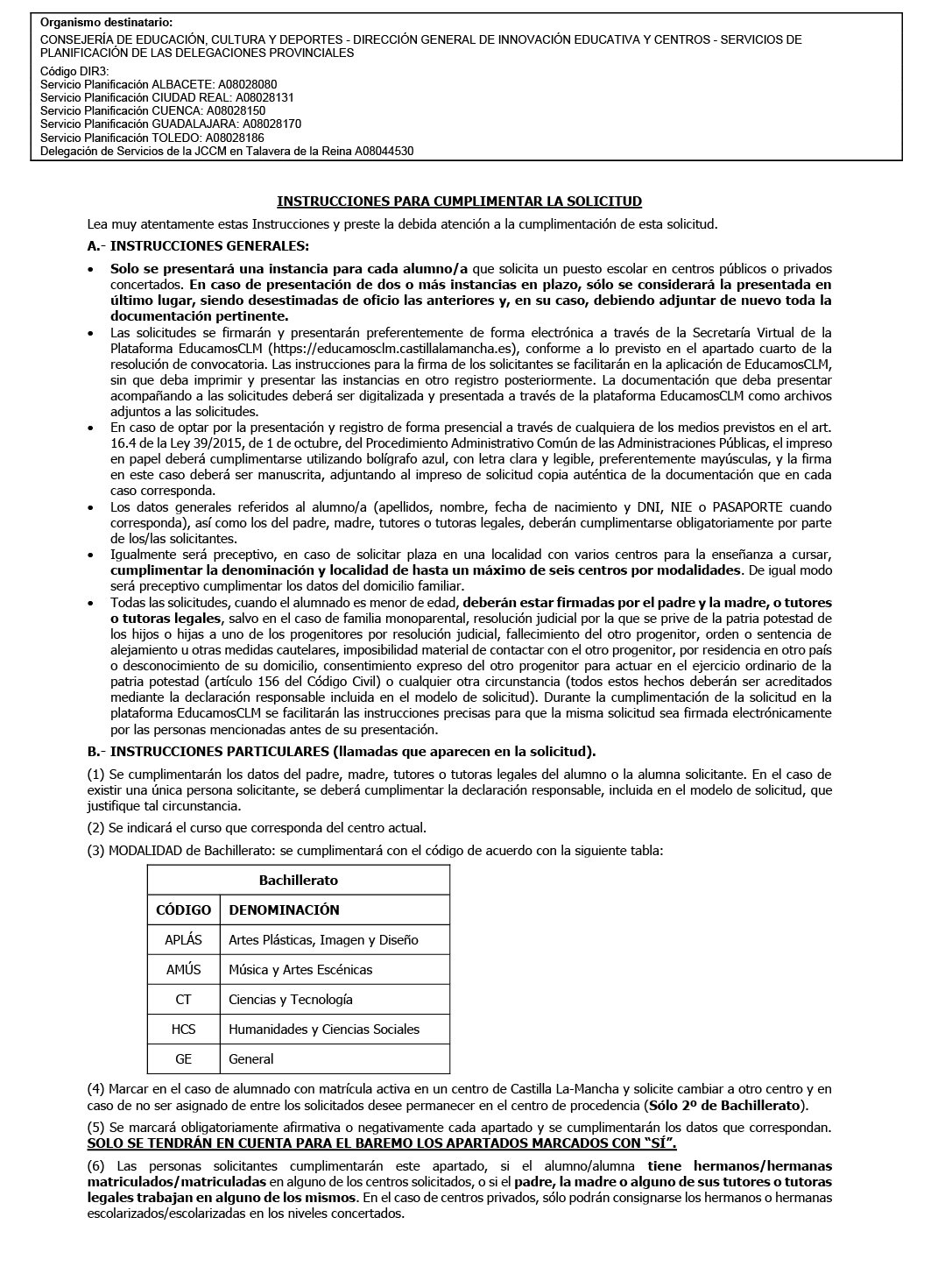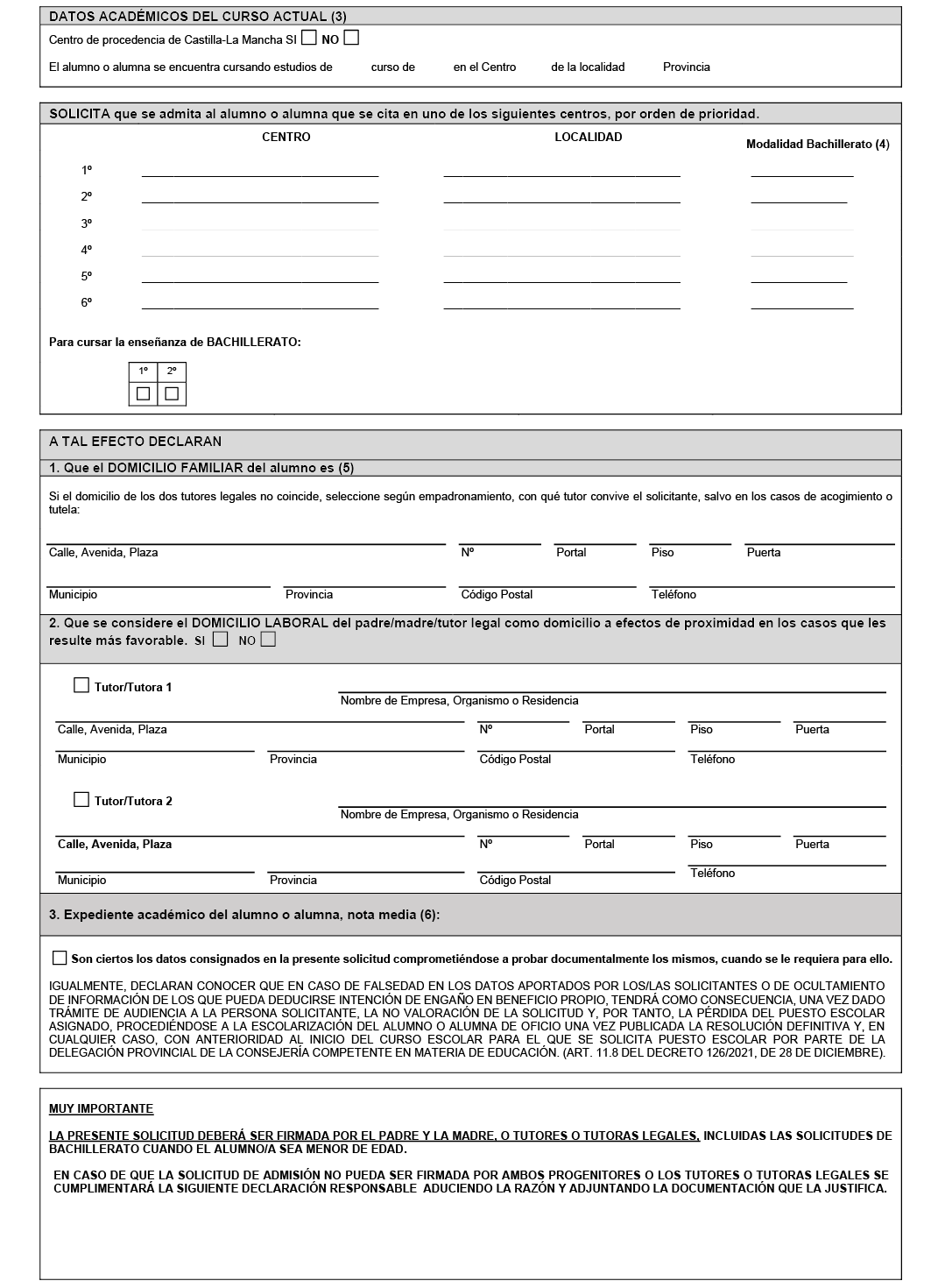 Los formularios de solicitud estarán disponibles igualmente en la Sede Electrónica de la Administración de la Junta de Comunidades de Castilla-La Mancha (https://www.jccm.es) y en el portal educativo Educación Castilla- la Mancha (https://educacion.castillalamancha.es/educamosclm).