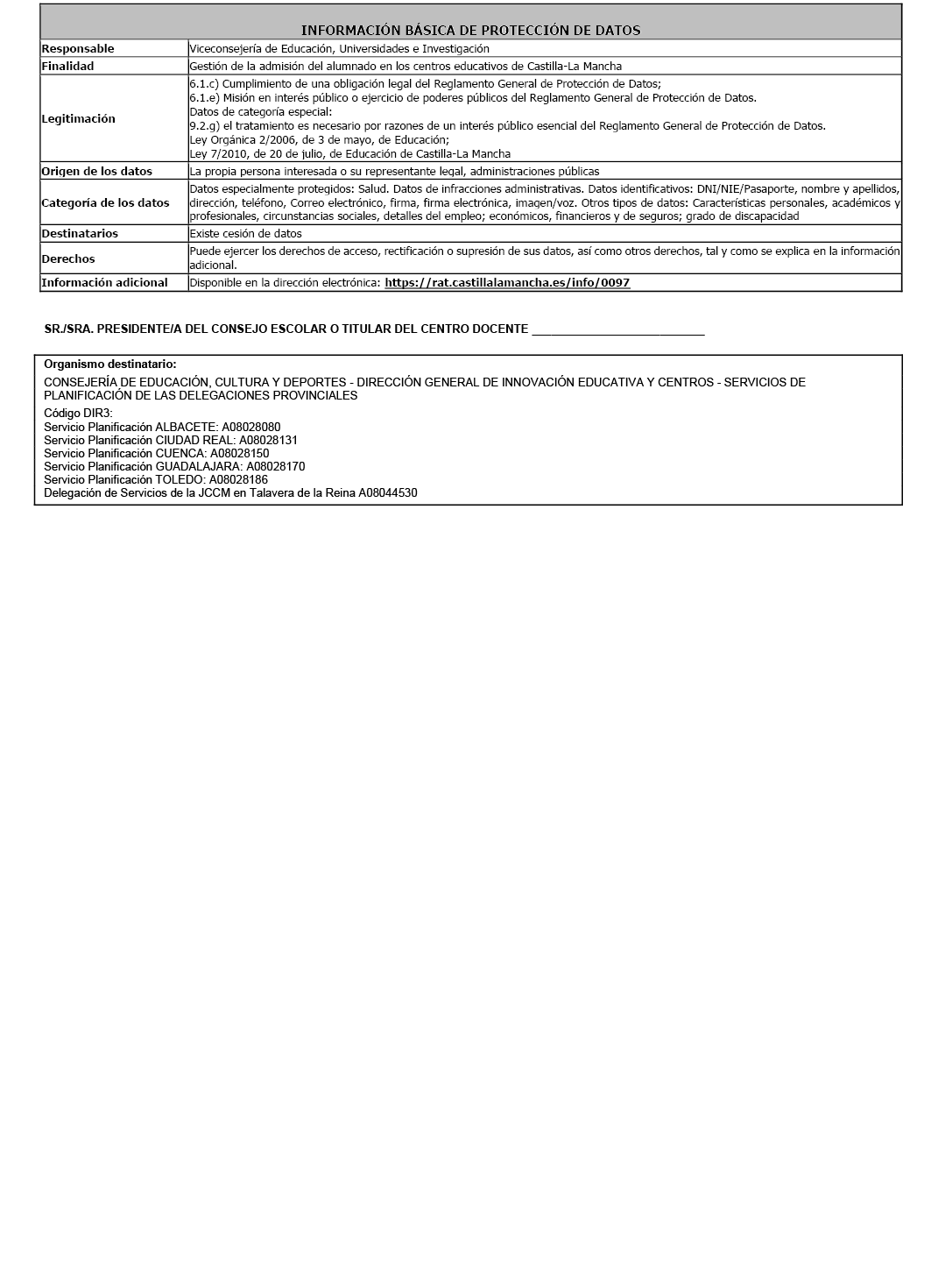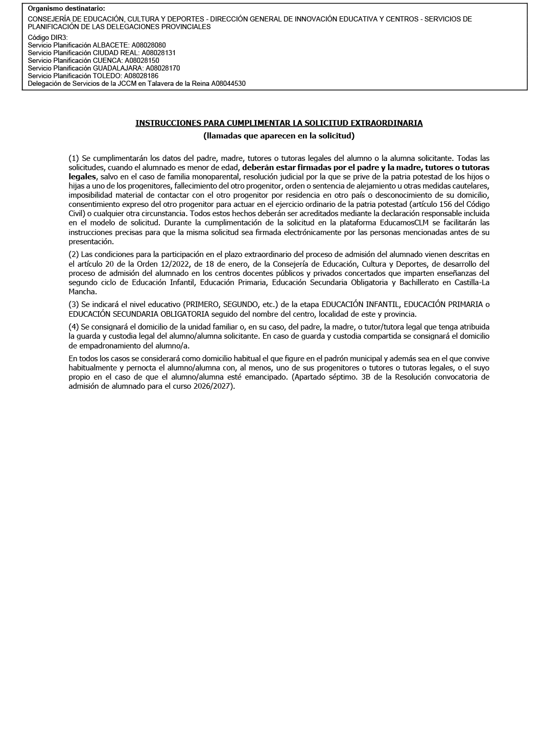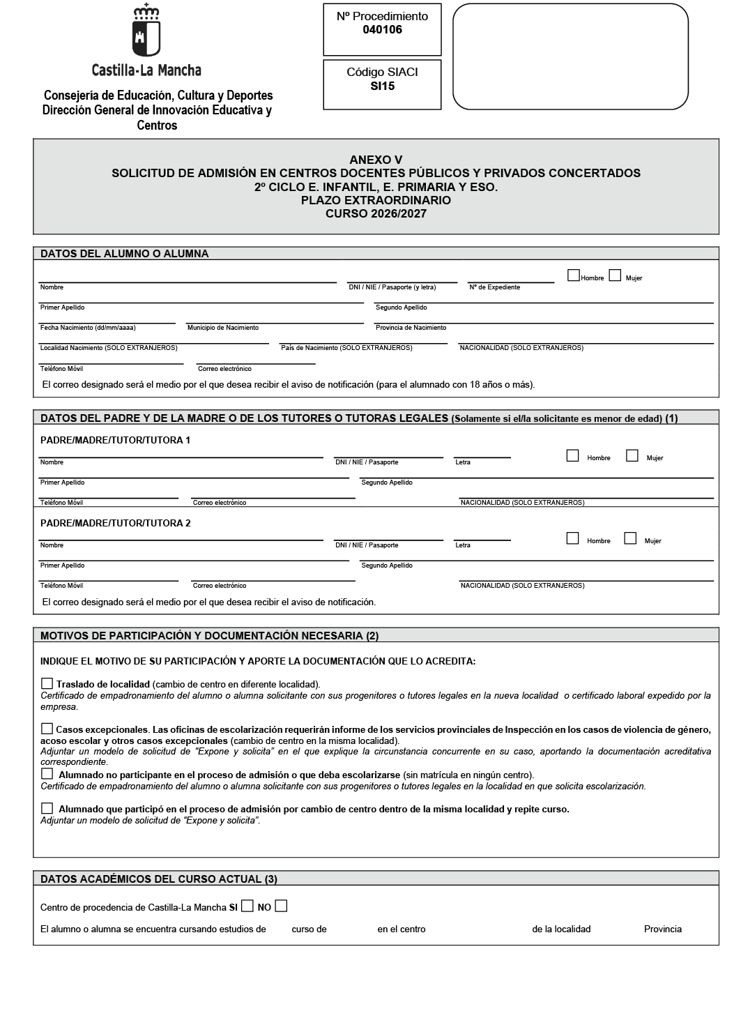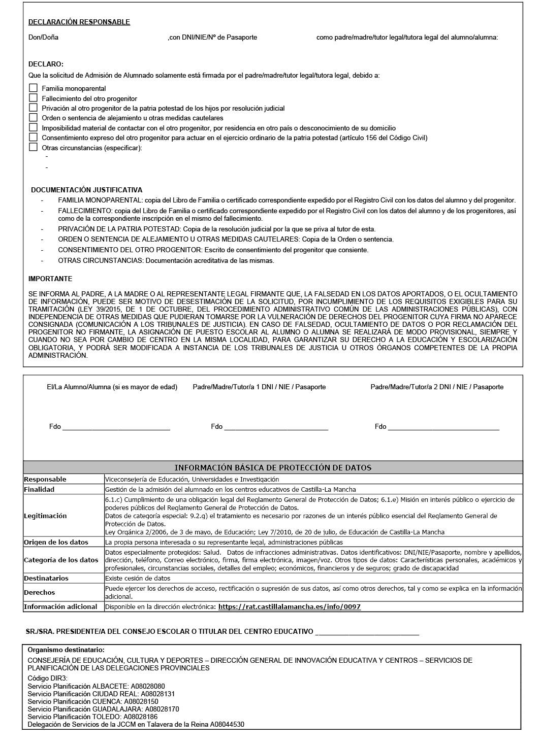 Los formularios de solicitud estarán disponibles igualmente en la Sede Electrónica de la Administración de la Junta de Comunidades de Castilla-La Mancha (https://www.jccm.es) y en el portal educativo Educación Castilla- la Mancha (https://educacion.castillalamancha.es/educamosclm).