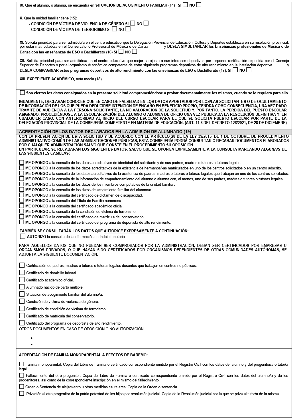 1. De acuerdo con el artículo 28 de la Ley 39/2015, de 1 de octubre, del Procedimiento Administrativo Común de las Administraciones Públicas, la consejería con competencias en materia de educación podrá realizar las comprobaciones pertinentes de los datos que se declaran en la solicitud a través de las plataformas de intermediación de datos, redes corporativas y otros sistemas electrónicos habilitados al efecto, salvo que las personas interesadas se opongan expresamente a dicha comprobación de oficio o no la autoricen en los casos en los que sea necesario, conforme a lo previsto en la correspondiente ley especial, en cuyo caso deberán presentar, junto a dicha solicitud, la documentación acreditativa de los criterios según lo especificado en esta resolución para cada criterio alegado. De la misma manera, cualquier otra documentación acreditativa de los criterios relacionados en ese artículo, que sea necesaria para la baremación y no sea emitida por una Administración Pública, deberá ser aportada por el solicitante.