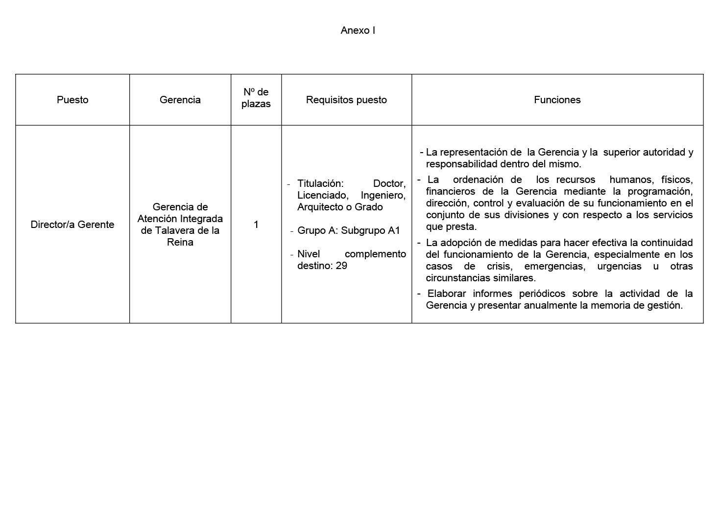 1.1. Se convoca para su provisión los puestos directivos que se relacionan en el Anexo I.
