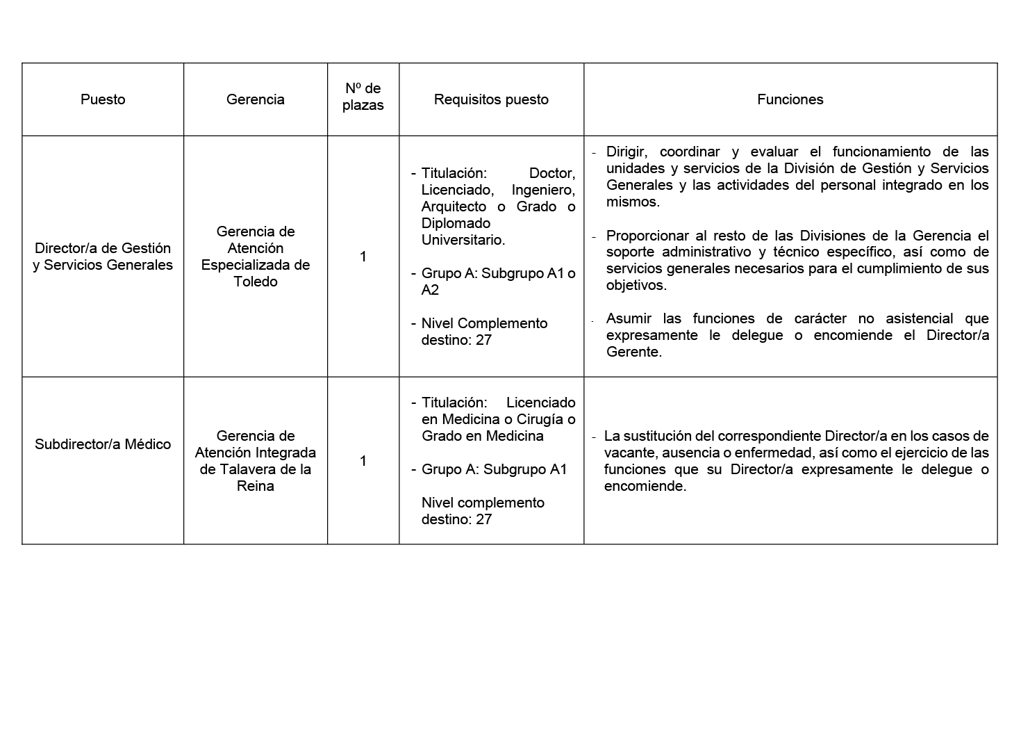 Al ser necesario cubrir puestos de trabajo correspondientes a personal directivo de las Instituciones Sanitarias del Servicio de Salud de Castilla-La Mancha, dotados presupuestariamente y clasificados en la respectiva plantilla orgánica para su provisión por el procedimiento de libre designación, se procede a su convocatoria.