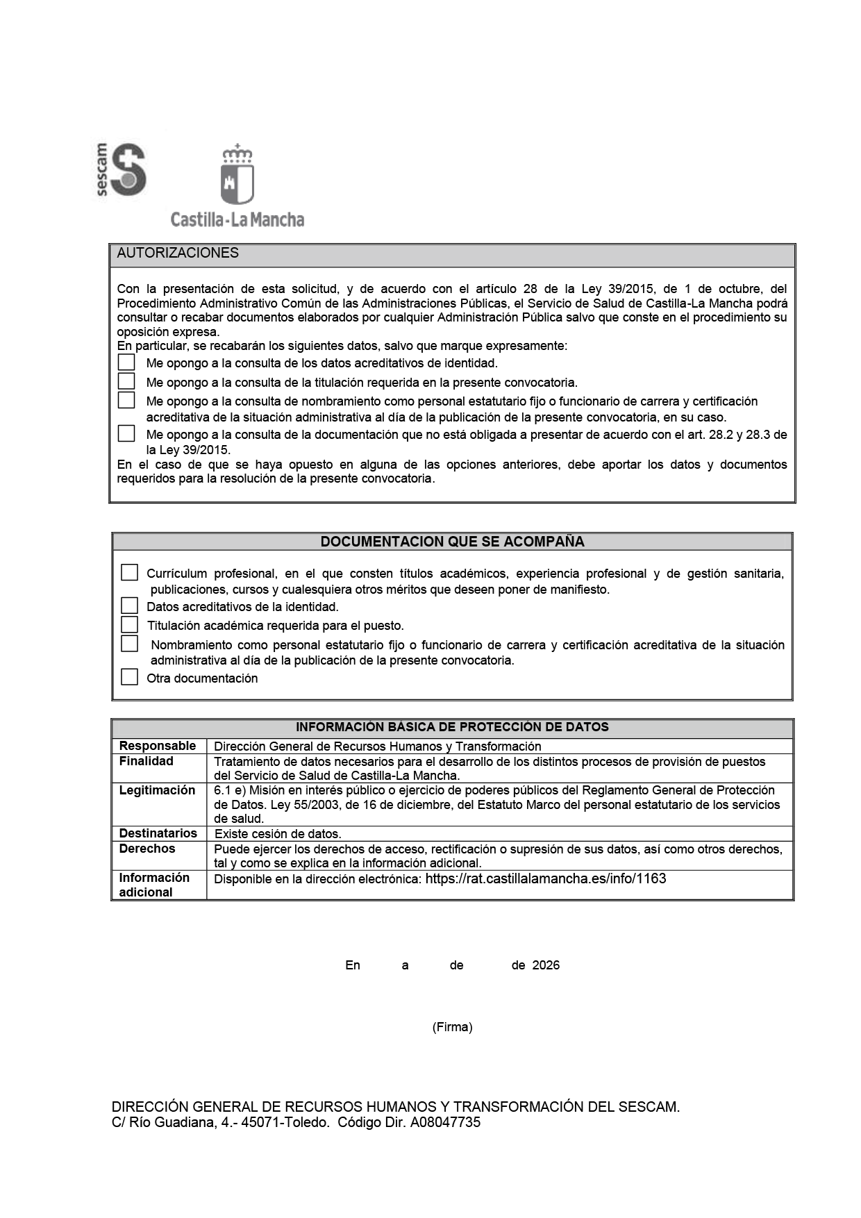 Resolución de 26/03/2026, de la Dirección-Gerencia, por la que se convoca el procedimiento para la provisión de puestos de personal directivo de las instituciones sanitarias del Servicio de Salud de Castilla-La Mancha 1/2026. [2026/2477]