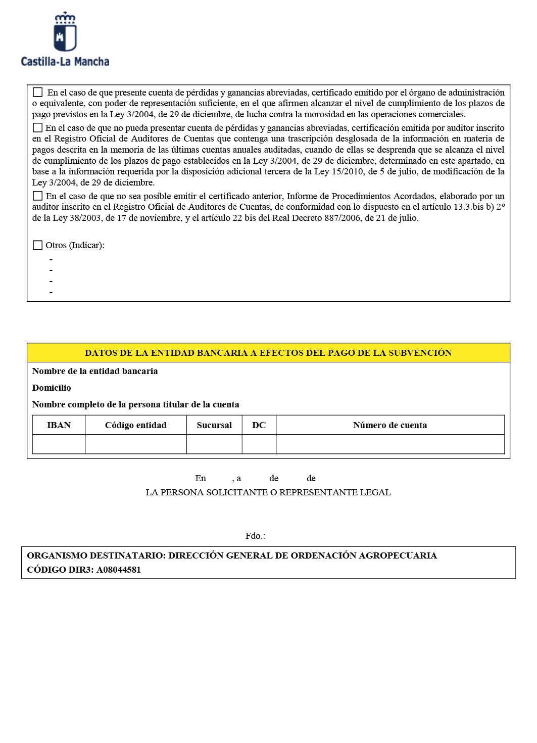1º. Las personas físicas y jurídicas que, de acuerdo con la normativa contable pueden presentar cuenta de pérdidas y ganancias abreviada, mediante certificación suscrita por la persona física o, en el caso de personas jurídicas, por el órgano de administración o equivalente, con poder de representación suficiente, en la que afirmen alcanzar el nivel de cumplimiento de los plazos de pago previstos en la citada Ley 3/2004, de 29 de diciembre. A tal efecto se podrá incluir una declaración responsable en tal sentido en el modelo de solicitud de ayuda que se publique junto con la convocatoria. Podrán también acreditar dicha circunstancia por alguno de los medios de prueba previstos en el apartado siguiente y con sujeción a su regulación.